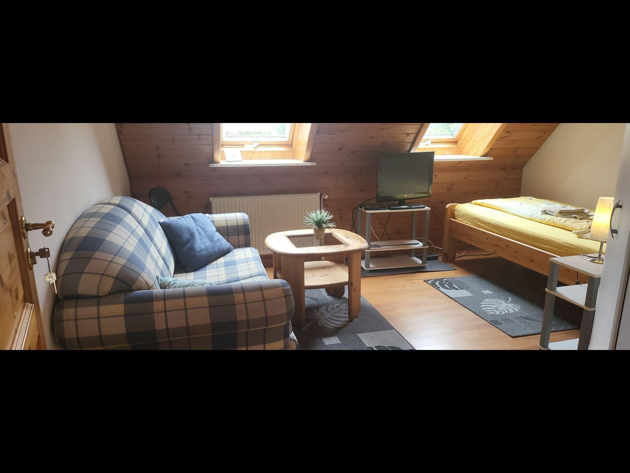 • Wohnzimmer mit Eckcouch mit Schlaffunktion für 2 Personen, SAT-TV, Radioanlage