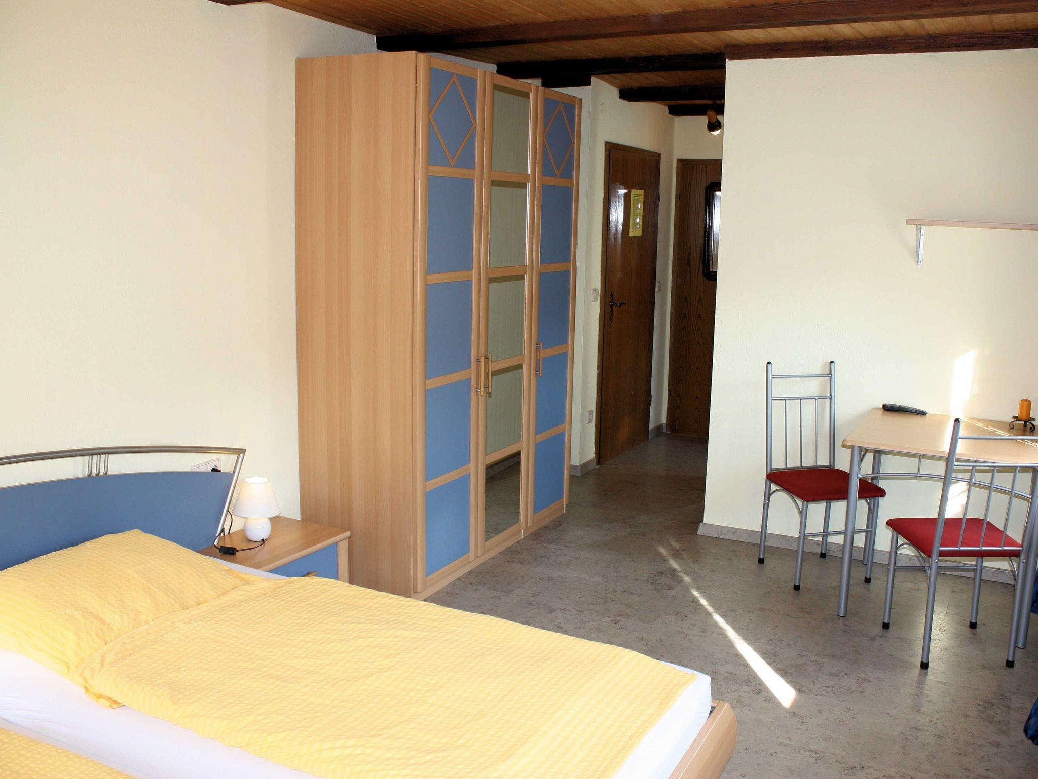 Unsere Doppelzimmer sind eingerichtet mit Doppelbett, Schrank, Tisch mit 2 Stühlen, Du/WC und 22 Zoll Flat-TV mit Kabelanschluss. Die Betten sind bezogen, Handtücher sind kostenlos. Kinderbett und Hochstuhl kann unter Zusatzleistungen kostenlos dazugebucht werden.
