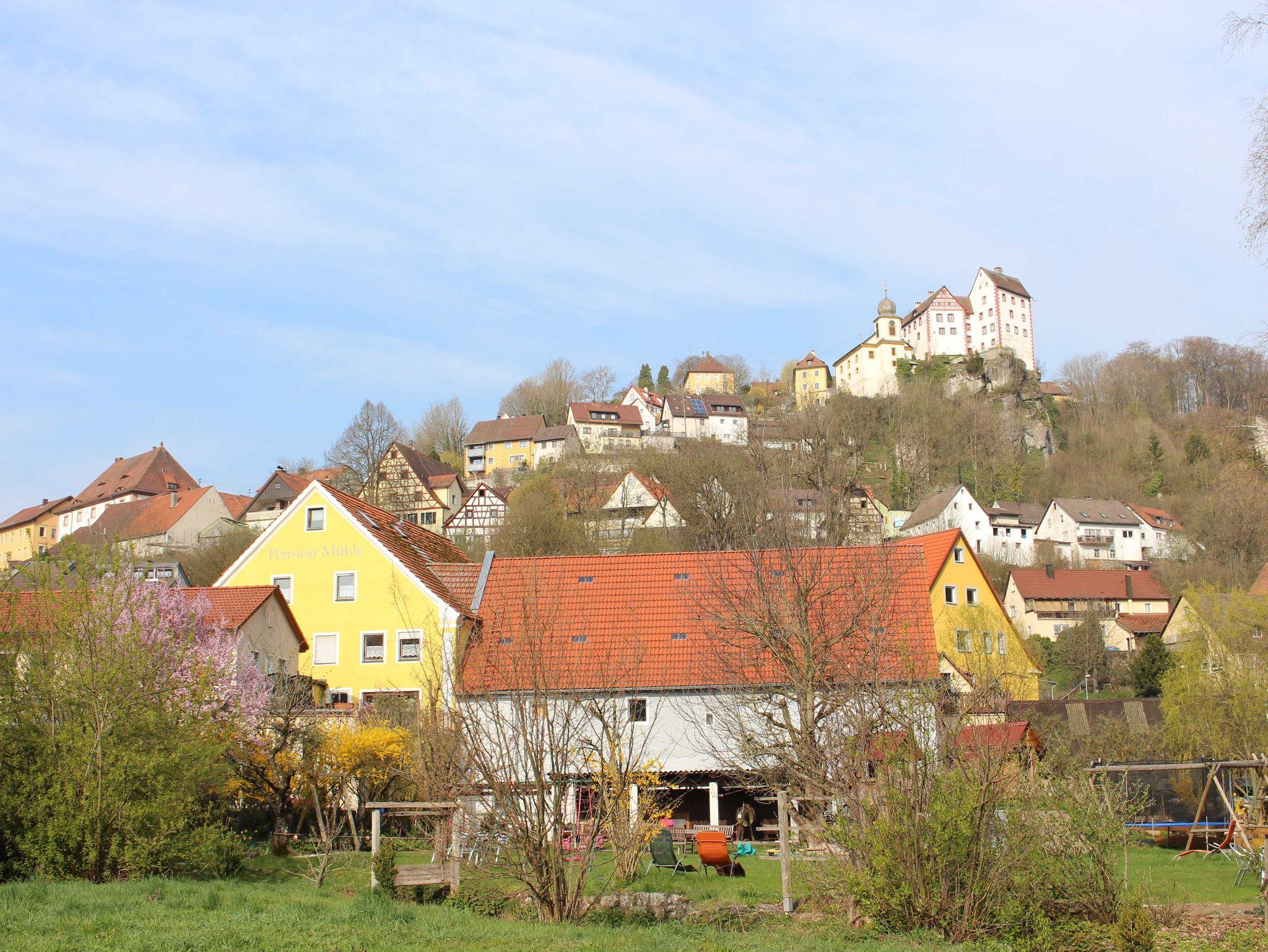 Ferien in der Fränkischen Schweiz im Land der Burgen, Höhlen und Mühlen! Unser Haus war eine dieser ehemalige Mühle im romantischen Tal der forellenreichen Trubach. Wo sich früher das rege Leben der Müller abspielte, finden Sie heute behaglich eingerichtete Gästezimmer mit Du/WC und Kabel-TV, sowie 10 gemütliche Ferienwohnungen in der Pension Mühle und in unserem 50 m entfernten Neumeyerhaus.