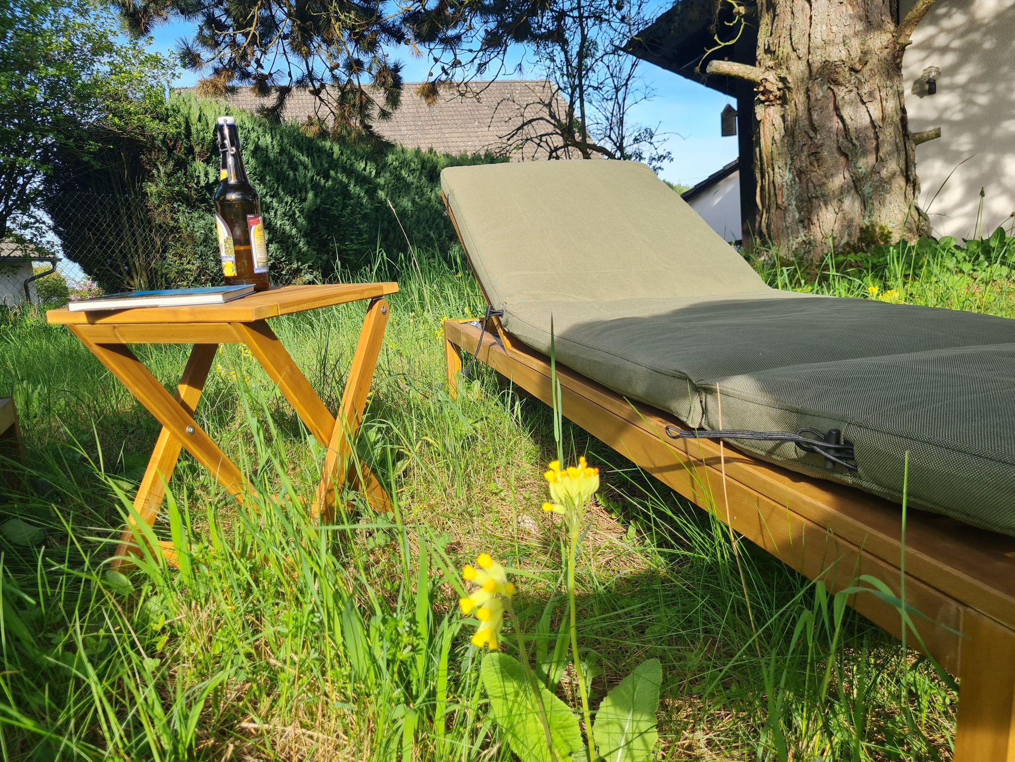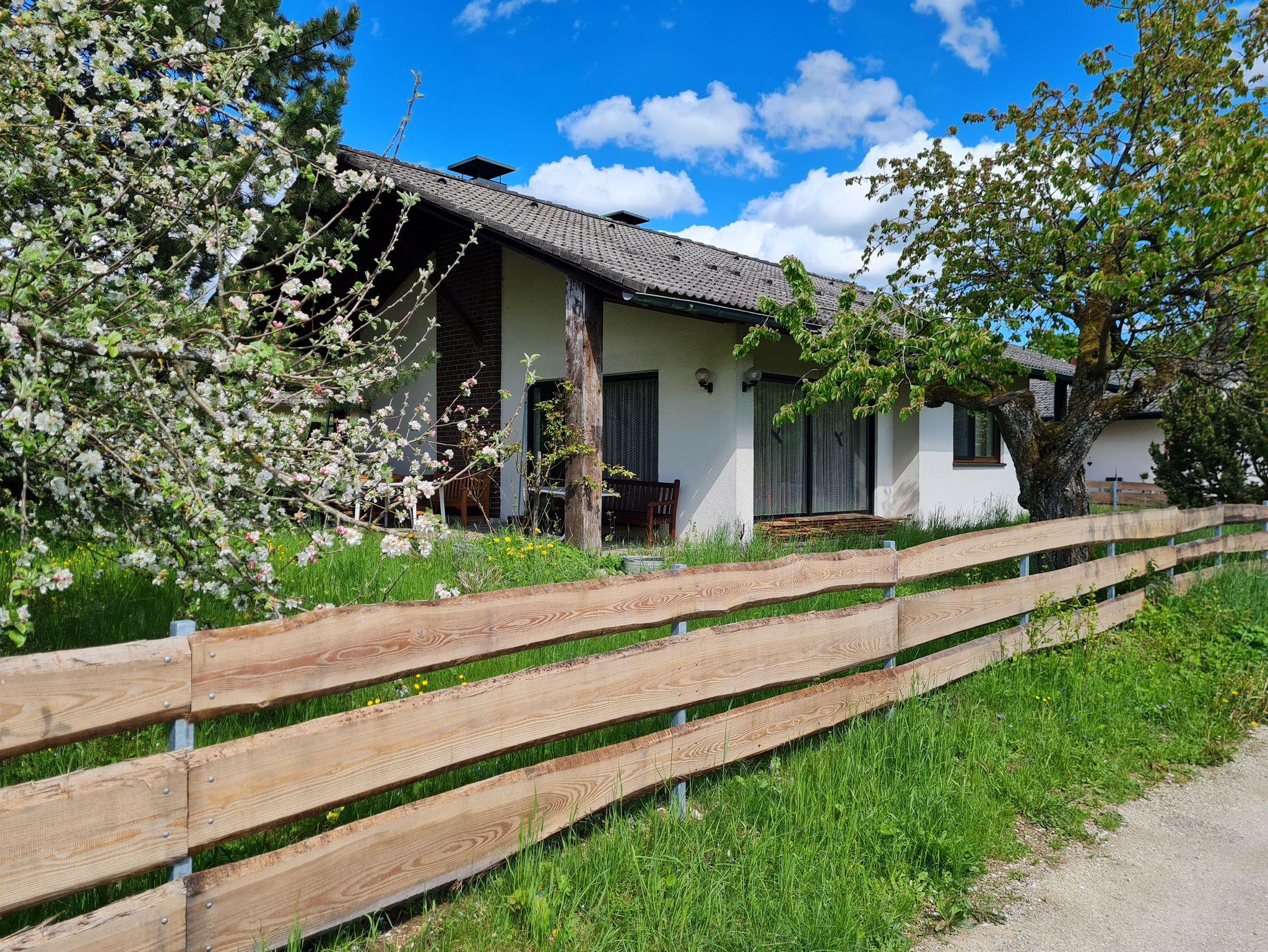 Vom großzügigen Wohnzimmer geht der Blick auf die Streuobstwiesen und Wälder der Fränkischen Schweiz. Auf der großen überdachten West-Terrasse können Sie grillen, gemütlich entspannen und die Natur bei einem fränkischen Seidla Bier genießen. Parkplätze im Einfahrtbereich stehen ausreichend und selbstverständlich kostenlos zur Verfügung, das Grundstück ist komplett umzäunt. Ihre Wanderung kann direkt vor der Haustür beginnen.