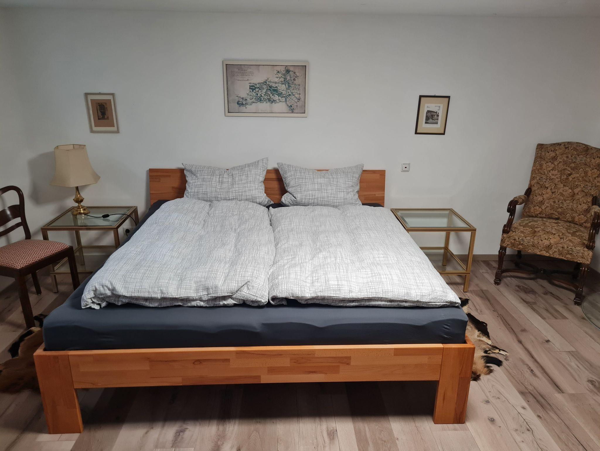 1 Schlafzimmer im Untergeschoss mit Doppelbett (2m x 2m);