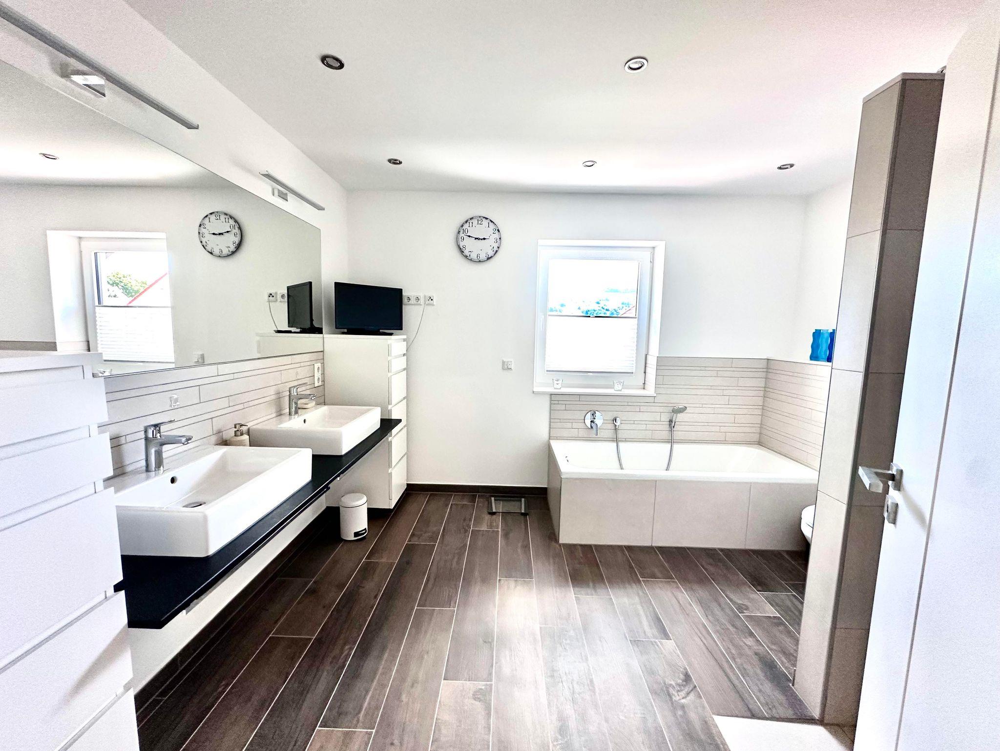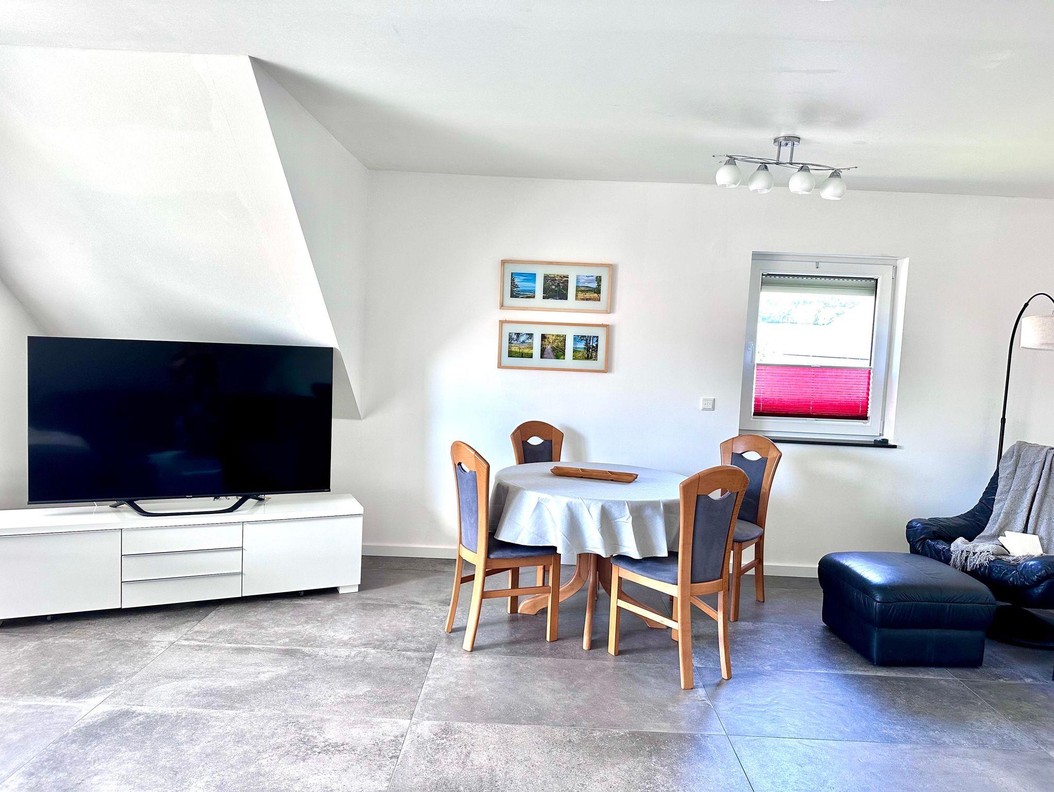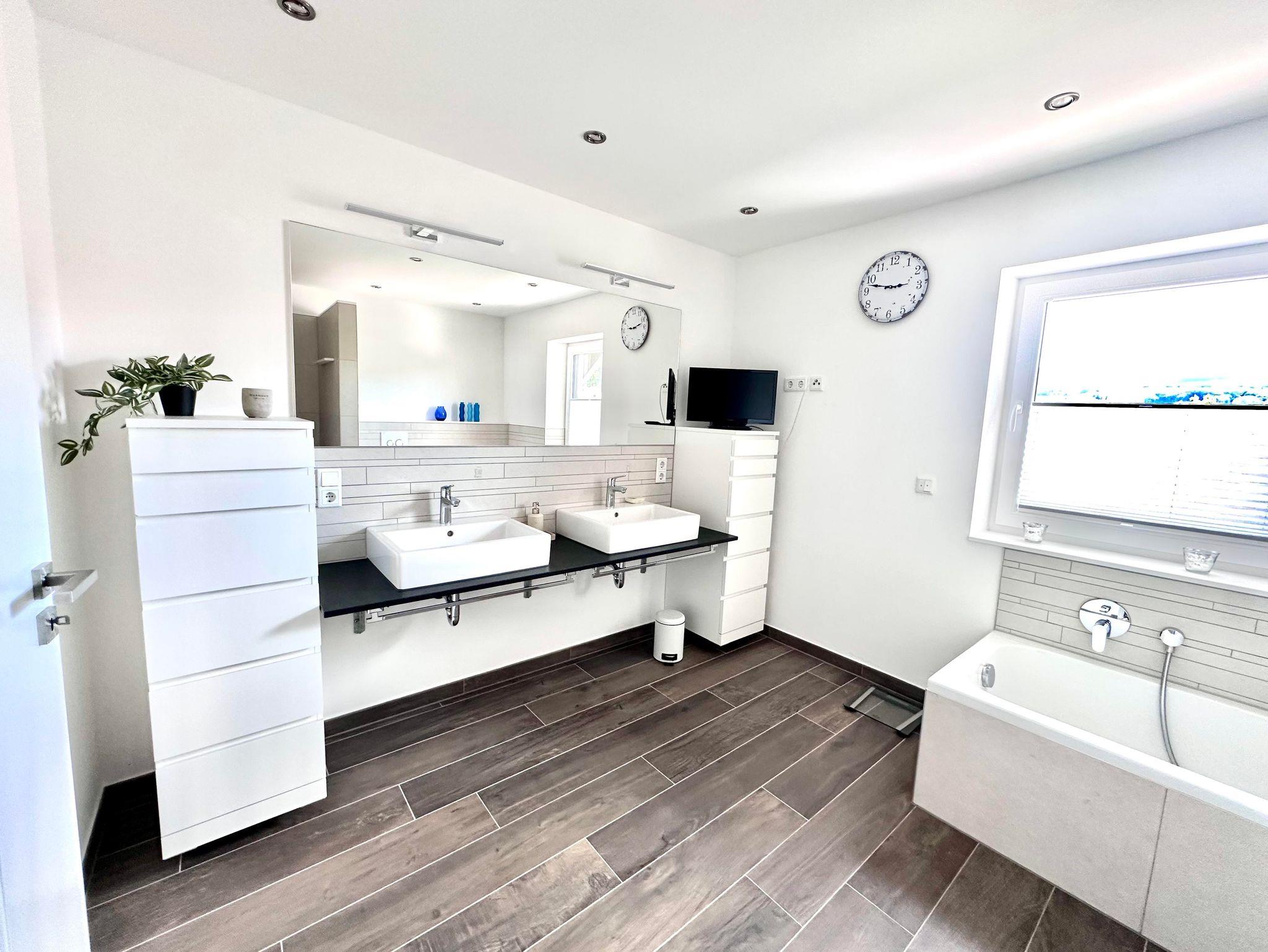 Die voll ausgestattete Küche verfügt über einen separaten Essbereich, Backofen, Spülmaschine, Mikrowelle, Kaffeemaschine, Kaffeevollautomat und Wasserkocher. Im modernen Badezimmer erwartet Sie eine große, barrierefreie Dusche sowie eine Badewanne, von der aus Sie gemütlich Ihren Lieblingsfilm im installierten Smart-TV schauen können.