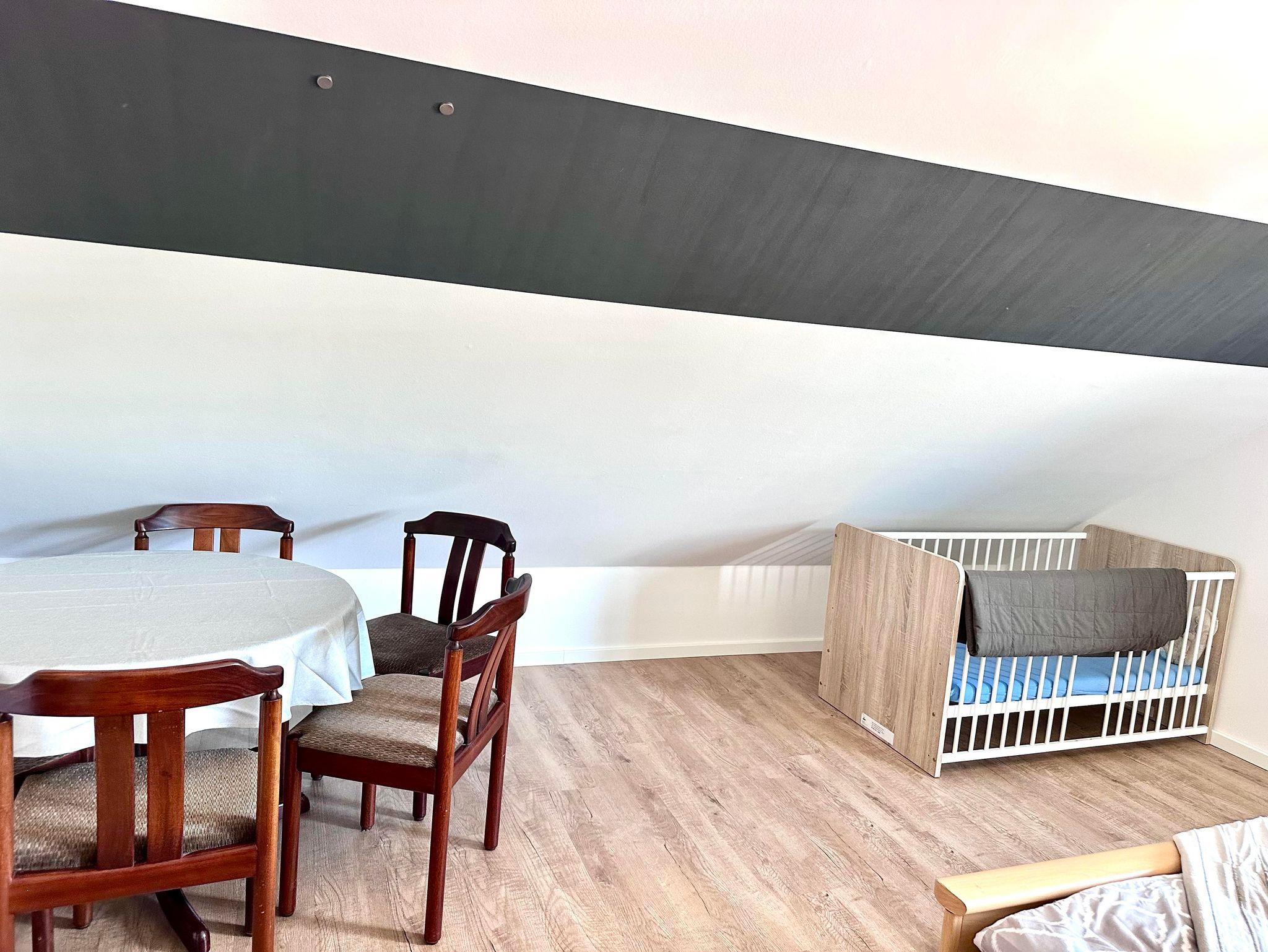 Die helle Wohnung bietet zwei Schlafzimmer mit komfortablen Doppelbetten, ein Babybett und ein Babyreisebett. Das geräumige Wohnzimmer ist mit Esstisch, gemütlicher Sitzecke, großem Fenster und Zugang zum Balkon ausgestattet – perfekt, um den herrlichen Ausblick zu jeder Tageszeit zu genießen.