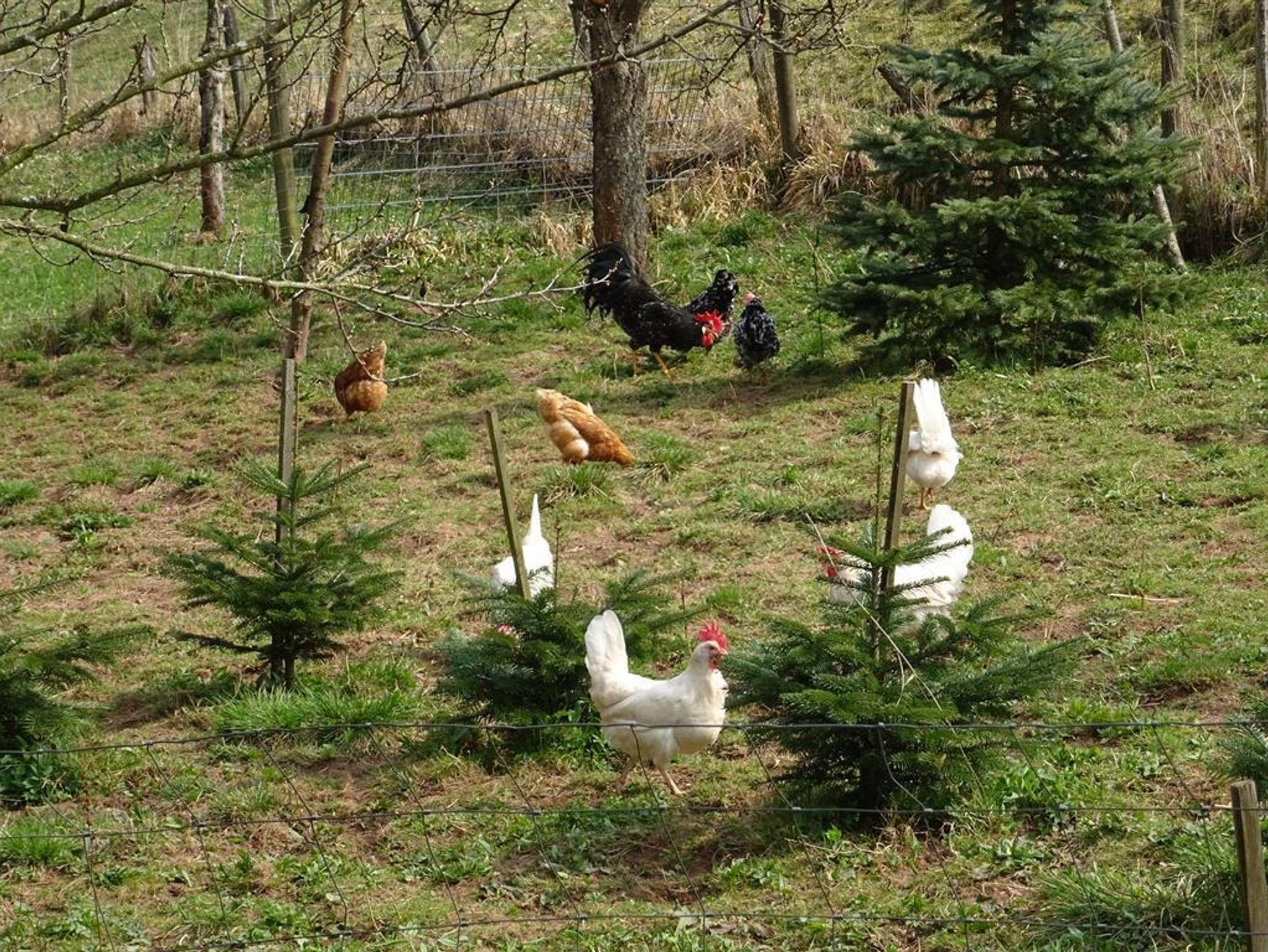 Die 60qm große Nichtraucher-Ferienwohnung verfügt über eine seperate voll ausgestattete Küche mit E-Herd, Toaster, Kaffemaschine, Wasserkocher, Kühlschrank mit Gefrierfach sowie ein Eßbereich. Das Wohnzimmer ist mit einer Sofaecke ausgestattet, von der aus Sie gemütlich Sat -TV, Radio oder ein schönes Buch aus unserer keinen Bibiothek lesen können. Ein großes Schlafzimmer mit Doppelbett und Schlafsofa, sowie ein geräumiges Bad mit Dusche/WC komplettieren die Wohnung. Die Fenster im Schlafzimmer sind mit Fliegengittern ausgestattet, sodass Sie auch nachts ungestört mit offenem Fenster schlafen können. Bettwäsche und Handtücher sind im Preis enthalten. Im Außenbereich steht Ihnen zur Entspannung eine gemütliche Terrasse mit Sitzmöbeln, und ein Grill zur Verfügung. Diese ist über das Wohnzimmer zu erreichen. Sie werden sich bei uns wohlfühlen und wenn es unsere Hühner gut mit Ihnen meinen, können Sie Ihr Frühstück mit einem Bio Hühnerei beginnen.