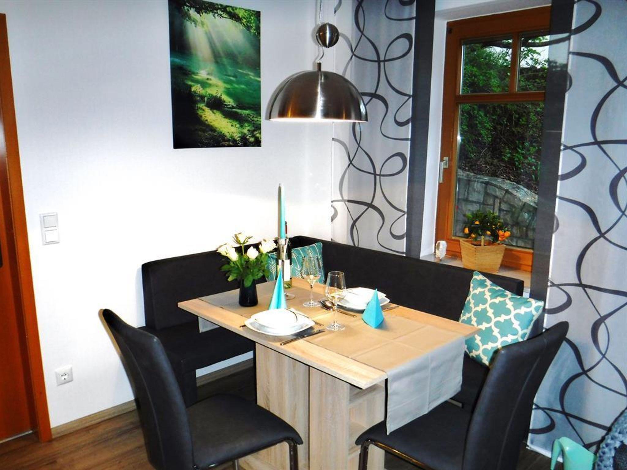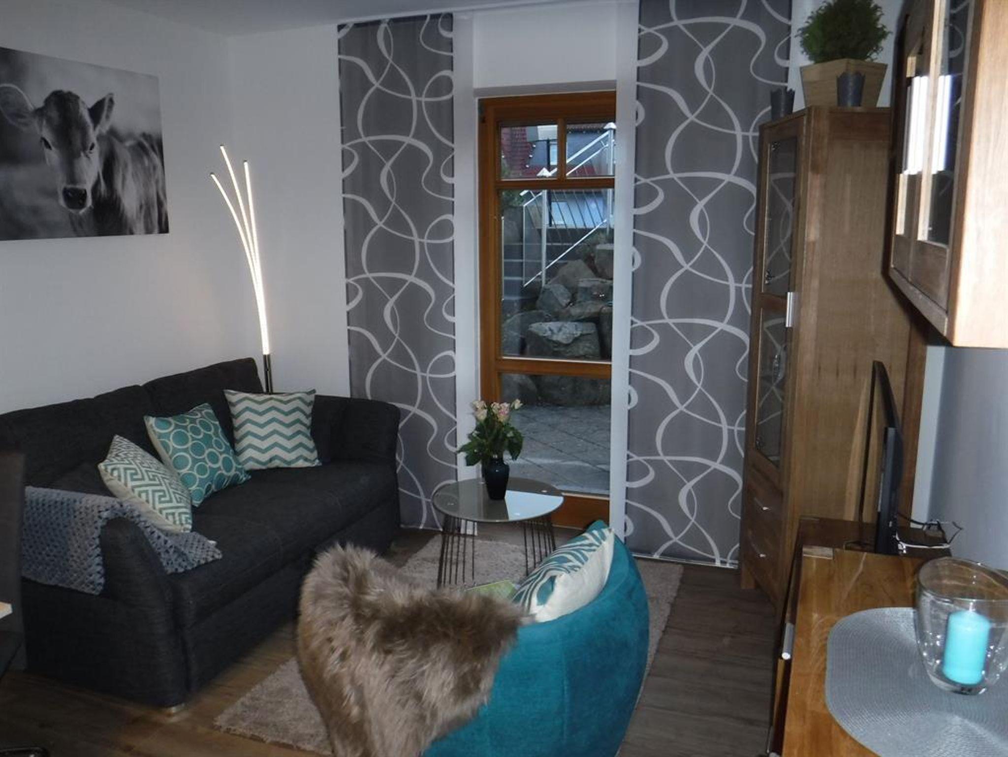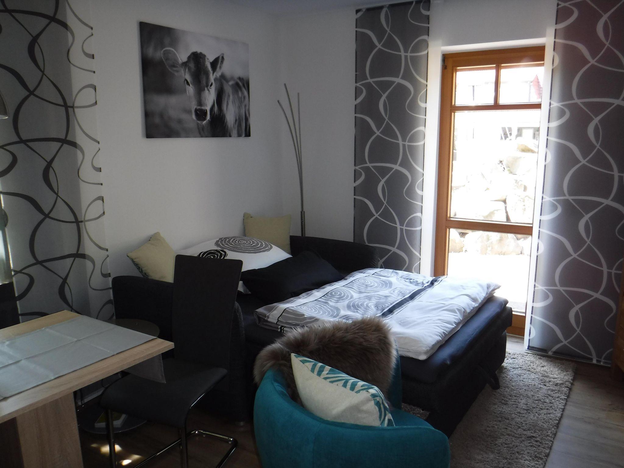 Unsere charmant eingerichtete 50 qm Wohnung mit großer Sonnenterrasse liegt im Herzen der Rhön.