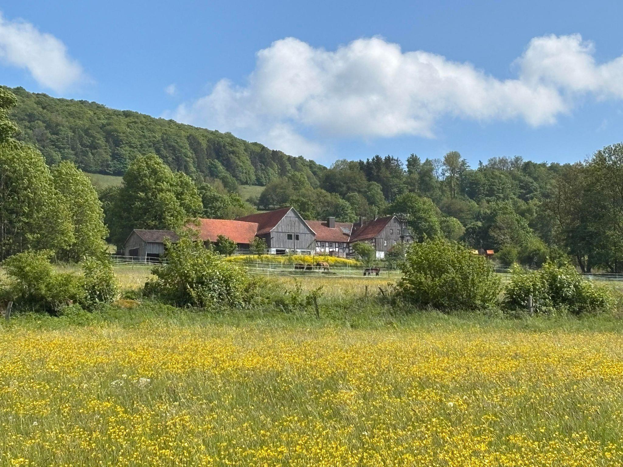 Unser Hof bietet Ihnen Ferienwohnungen im Landhausstil, die perfekt für einen erholsamen Aufenthalt in der unberührten Natur geeignet sind. Genießen Sie atemberaubende Ausblicke auf die sanften Hügel und grünen Wiesen, die unseren Hof umgeben. Auf dem Hof bieten wir eine große gemeinschaftliche Terrasse, von der aus man den Sternenpark Rhön bewundern kann. Parkplätze stehen direkt vor dem Haus zu Verfügung und eine der Wohnungen ist ebenerdig begehbar. Es steht ein Offenstall zur Verfügung, sodass auch einem Urlaub mit Ihrem Pferd nichts im Wege steht.