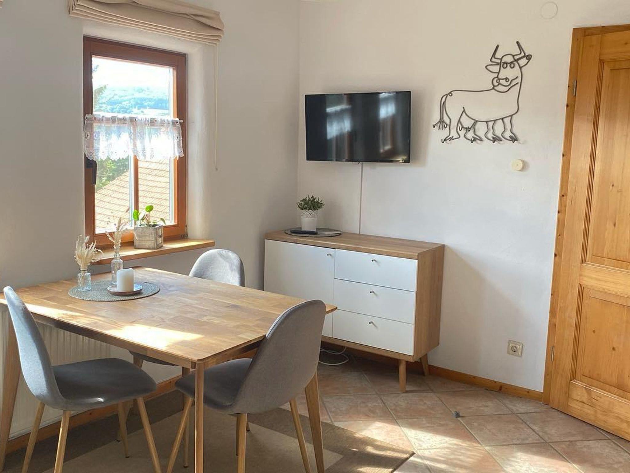 Die gemütliche Ferienwohnung im zweiten Stock bietet dir eine atemberaubende Aussicht auf die wunderschöne Landschaft der Rhön, die du schon beim Frühstücken genießen kannst. In der einladenden Wohnküche findest du ein bequemes Sofa, das auch als Schlafsofa genutzt werden kann, sowie eine Sitzgruppe. Die Küche ist vollständig ausgestattet mit Backofen, Wasserkocher, Kaffeemaschine, Toaster, Eisfach und vielem mehr. Das Schlafzimmer verfügt über ein komfortables Doppelbett. Für den kleinen Nachwuchs stellen wir Dir gerne ein Reisebettchen kostenfrei zur Verfügung.