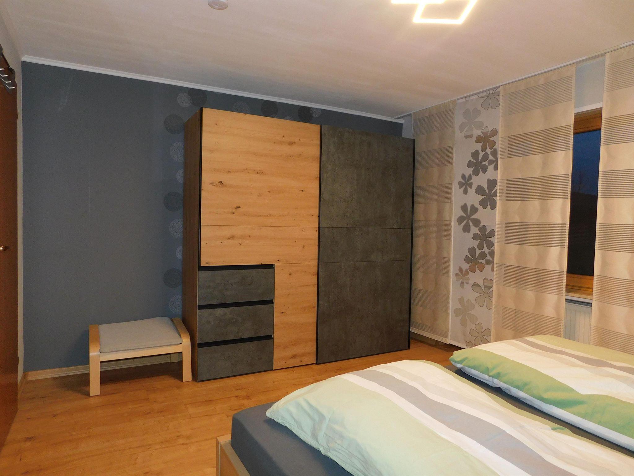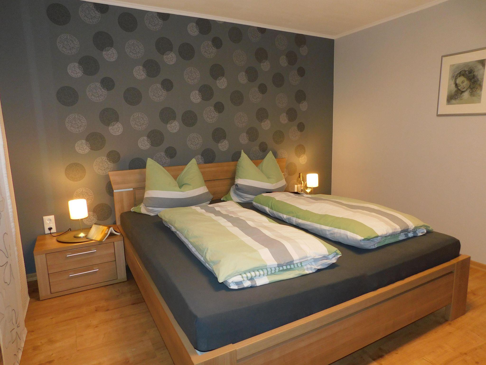 Im großen Schlafzimmer (Bett 200x200cm) mit geräumigen Spiegelschrank wir das Schlafen zum Vergnügen.