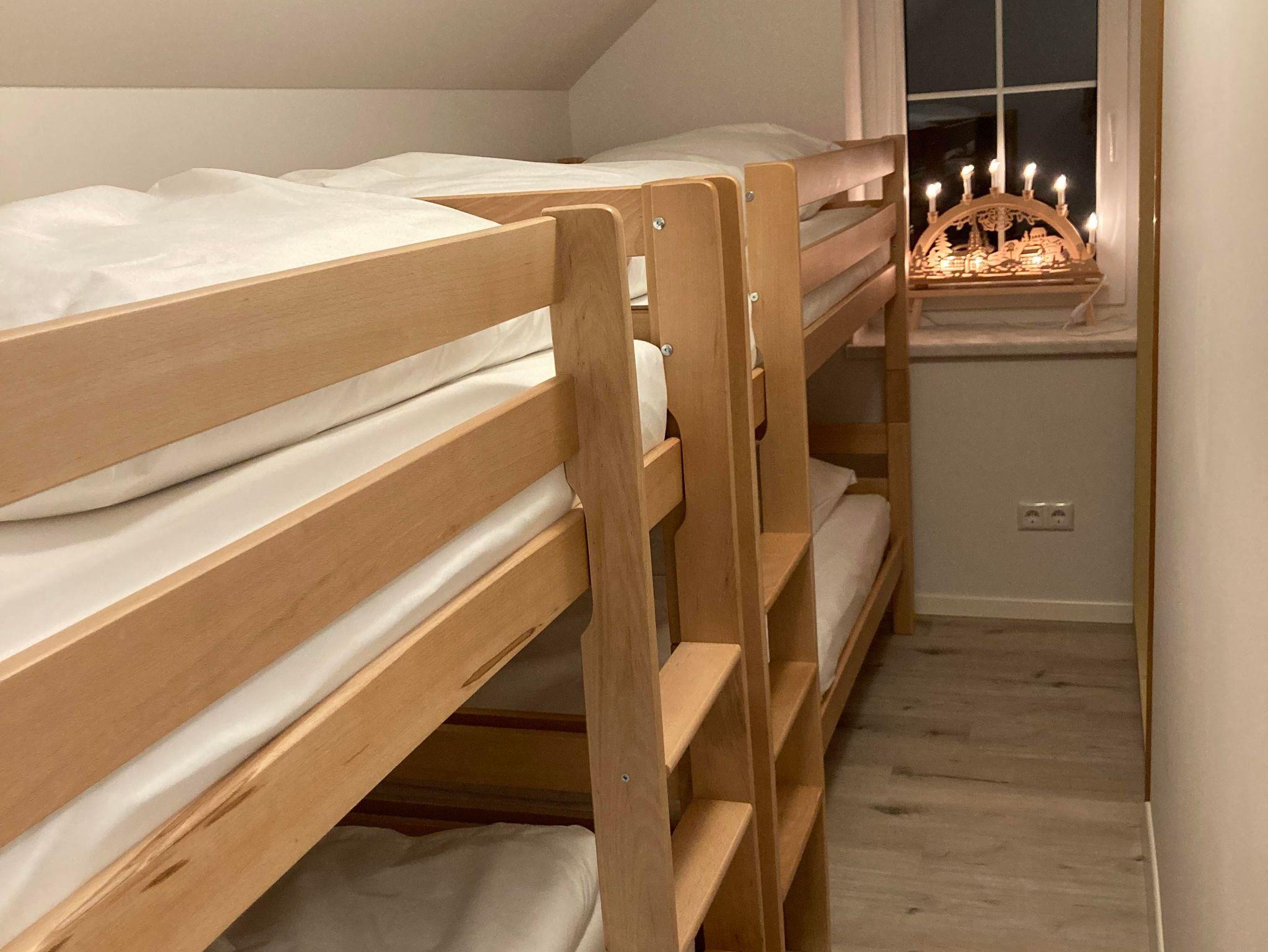 Die Ferienwohnung Fuchs bietet auf 51 Quadratmetern Platz für bis zu 7 Personen. Sie verfügt über ein Schlafzimmer mit einem Doppelbett sowie ein zweites Schlafzimmer mit zwei Etagenbetten. Im Wohnbereich befindet sich ein Schlafsofa, welches als Schlafmöglichkeit für die 7. Person dient. Der offene Wohnbereich verfügt zudem über TV, DAB-Radio mit Bluetooth und einen Kamin. Die Einbauküche ist mit Kühlschrank, Tiefkühlfach, Geschirrspülmaschine, Dunstabzugshaube, 2- Felder-Ceranfeld, Mikrowellenbackofenkombination, Dunstabzugshaube, Kaffeemaschine, Toaster, Wasserkocher, Eierkocher, Brotschneidemaschine voll ausgestattet. Das Tageslichtbad verfügt über Dusche, WC, Waschbecken und einen Handtuchheizkörper. Die gesamte Wohnung wird zentral über eine Fußbodenheizung beheizt. Die Bettwäsche und Handtücher sind inklusive. WLAN und Parkplatz sind kostenfrei vorhanden. Es gibt auch eine kostenfreie Abstellmöglichkeit für Ski, Fahrräder & Co. Es handelt sich um eine Nichtraucherwohnung.