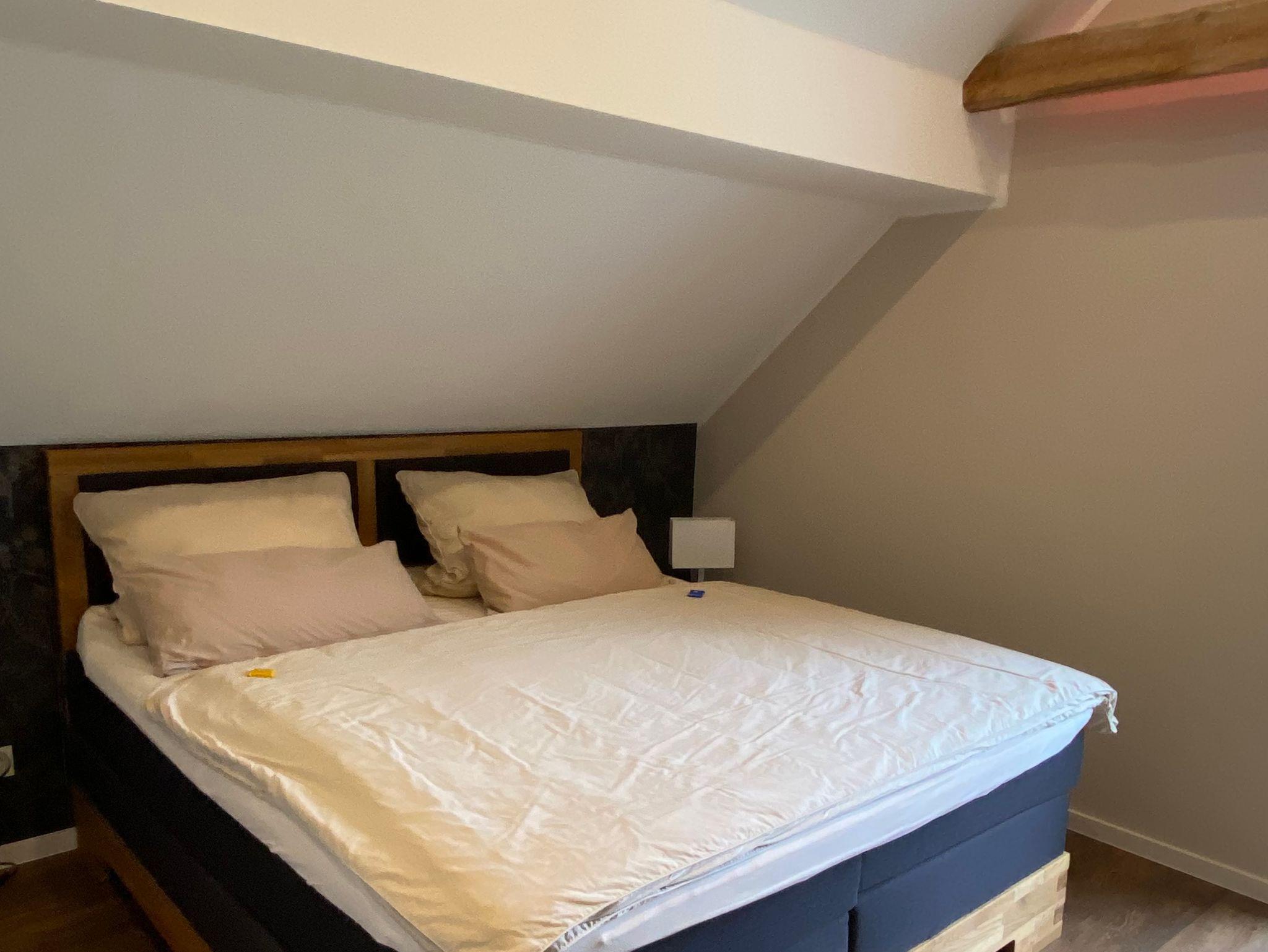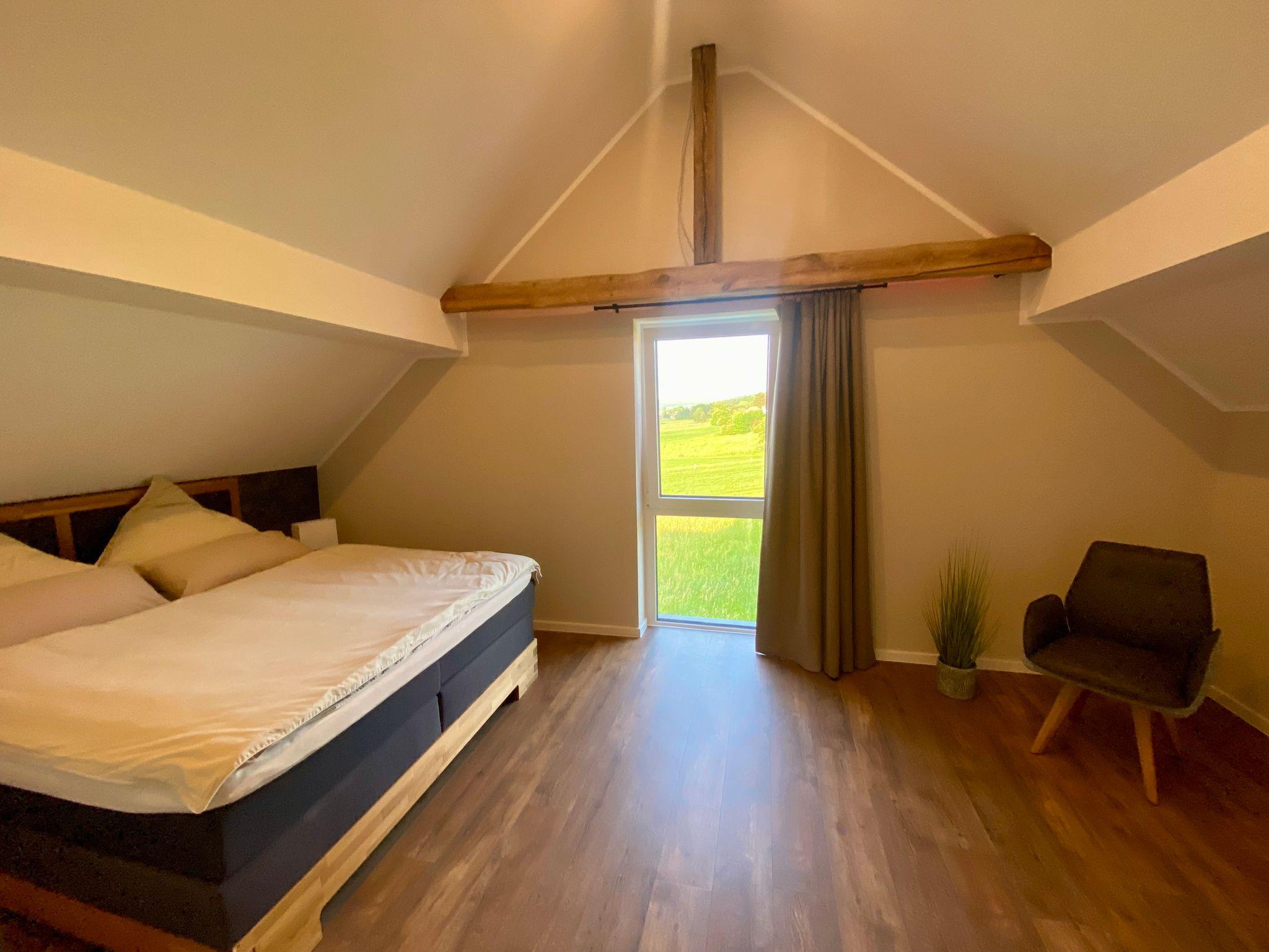 Im Schlafzimmer befindet sich ein gemütliches Boxspringbett (1,80×2,00m) und ein Schlafsessel, der zu einem weiteren Bett umfunktioniert werden kann. Auf Wunsch kann das Schlafzimmer bei Bedarf mit einem Kleinkindbett ausgestattet werden.