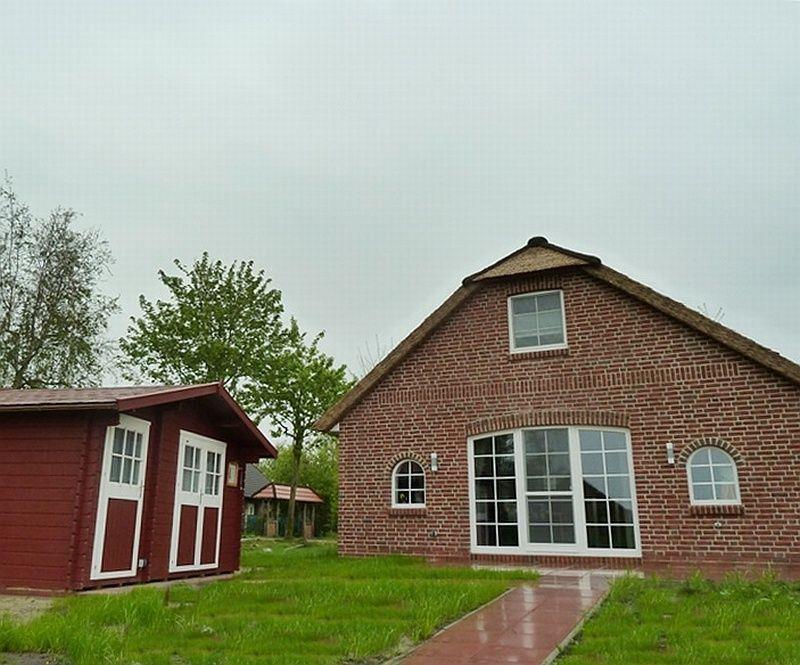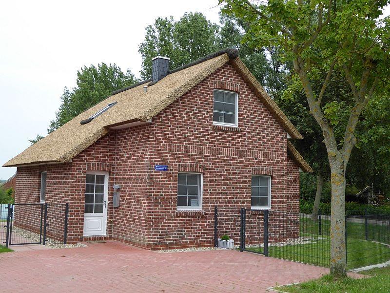 Von Außen besticht das Haus durch sein Ried-Dach (Kunst-Reet) und durch die direkte Wasserlage. Seit 2022 hat das Haus nun auch eine Terrassenüberdachung!