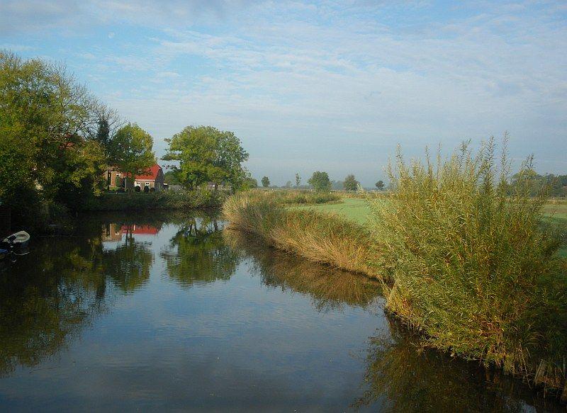 Das hochwertige Ried-Dach-Ferienhaus mit eigenem Steg, Infrarotwärmekabine, Kamin und Ruderboot liegt in traumhafter Lage mit unverbautem Blick in die Krummhörner Meeden.