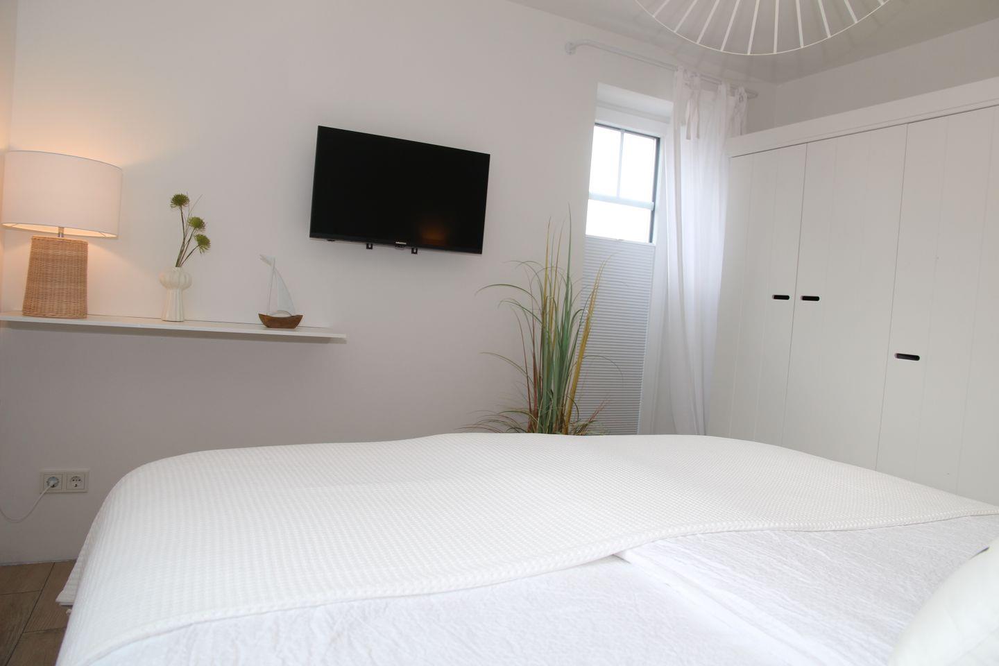 Genießen Sie Ihre Mahlzeiten im direkt angrenzenden Essbereich an dem großen Esstisch aus Teakholz und den Stühlen im nordischen Design. Für Gemütlichkeit zu jeder Jahreszeit sorgen das große komfortable Hussensofa und der bequeme Leder-Relaxsessel mit Ottomane mit direktem Blick auf das Siel. Der große schwenkbare 55-Zoll Smart-TV, eine Soundbar sowie einige Gesellschaftsspiele und Bücher sorgen für ausreichend Unterhaltung. Zeitgemäß erfolgt der Internetempfang über Glasfaser-WLAN (Für uneingeschränkte Verfügbarkeit und ausreichende Geschwindigkeit übernehmen wir keine Gewähr.).