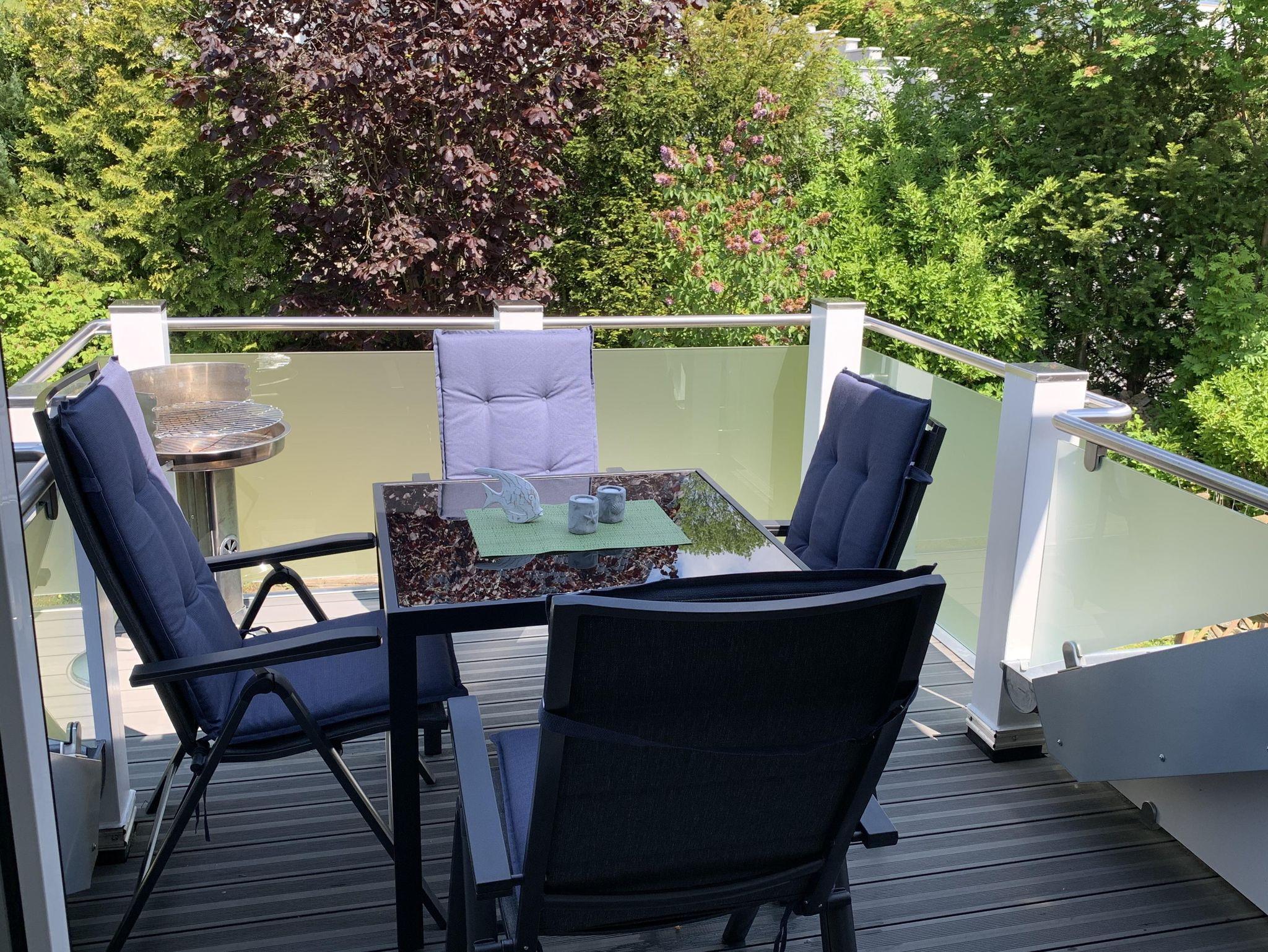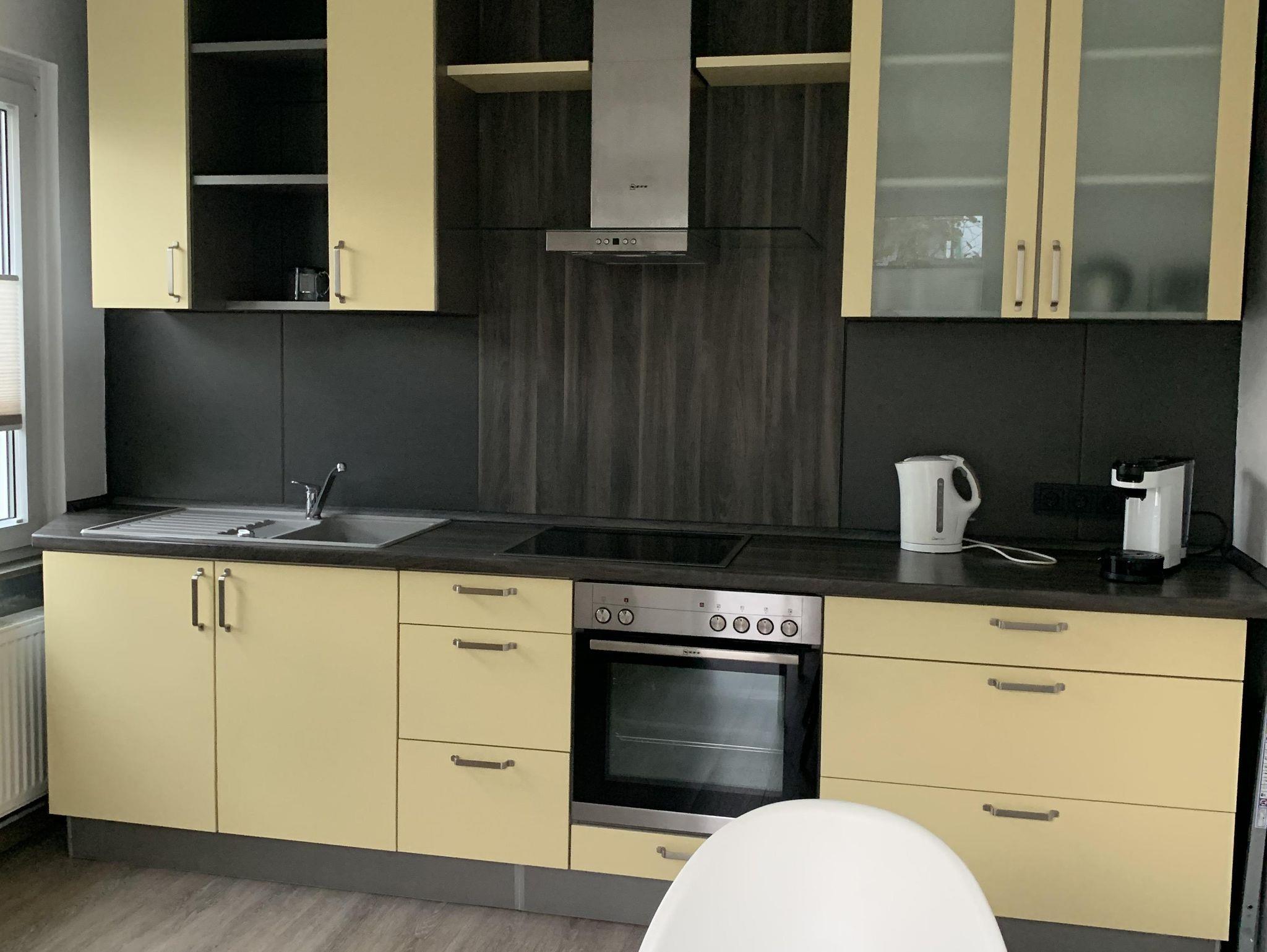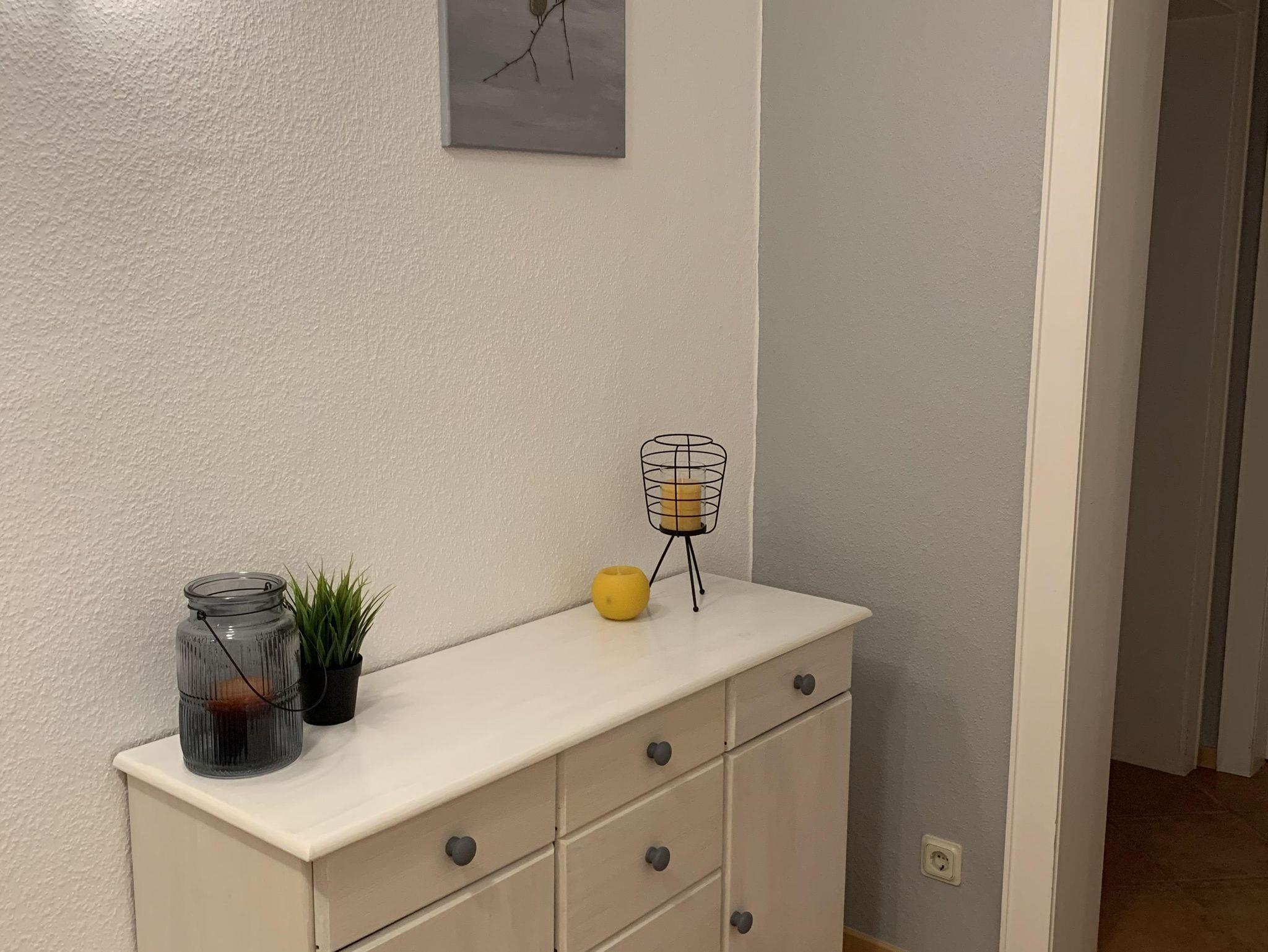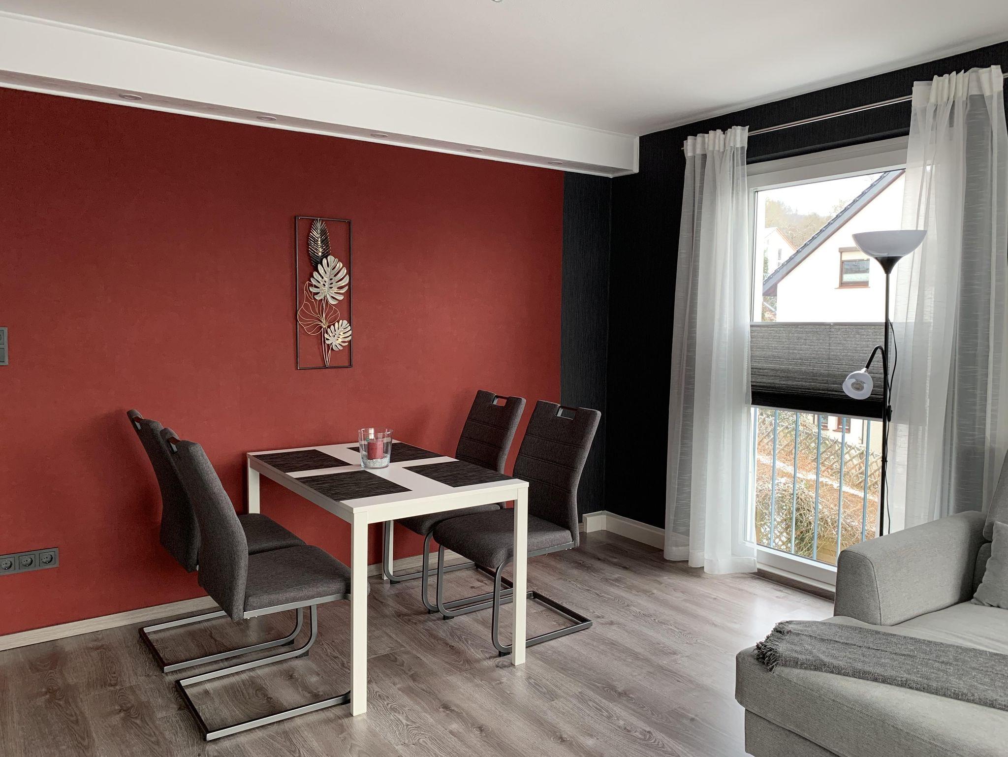 Neu und modern eingerichtete Nichtraucher-Wohnung in der ersten Etage eines Zweifamilienwohnhauses mit Garten. Die Wohnung besteht aus einem hellen Wohnzimmer und angrenzendem Balkon, welcher auch vom Schlafzimmer begehbar ist. Die Küche ist nach Norden ausgerichtet und auch dort befindet sich ein Balkon mit Blick in den Garten. Das Badezimmer ist mit Dusche und Waschplatz. Das WC ist seperat. Das Wohnzimmer ist 24qm groß und ist eingerichtet mit einem Sofa und einem Sessel mit Tisch, sowie Essbereich mit Tisch und vier Stühlen. Allergikerfreundlicher Laminatboden ist vorhanden. Plisses sorgen für gewünschte Lichtverhältnisse. Ein LED-Fernseher mit Satelliten-Empfang ist vorhanden. Die Küche ist ausgestattet mit Herd, Backofen,Toaster, Kaffeemaschine, Kühlschrank mit Gefrierfach und Mikrowelle. Das Schlafzimmer besteht aus einem Boxspringbett mit Nachtkonsolen und einem Kleiderschrank. Eine Unterstellmöglichkeit für Fahrräder ist vorhanden, ggf. können e-Bikes geladen werden.