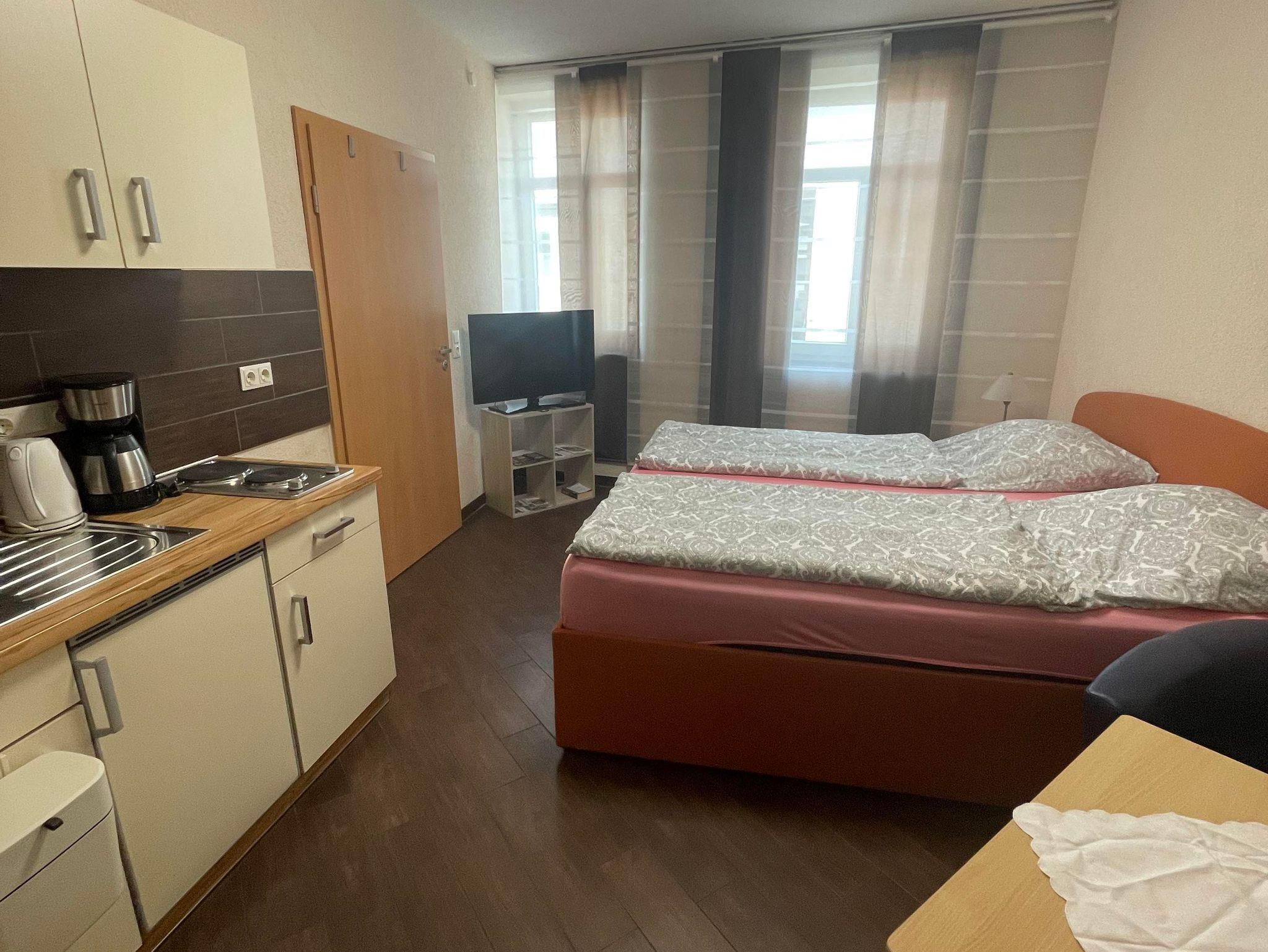 Sie wohnen ruhig in einem neu renovierten 36 qm großen Appartement mitten in der Stadt (200 m bis zur Fußgängerzone). Die Wohnung ist behindertenfreundlich und ist mit Fußbodenheizung ausgestattet. Die Wohnung befindet sich im Erdgeschoss mit Blick auf den Garten. Die Terrasse mit Gartenmöblen und Gartenanschluss lädt zum Verweilen und Entspannen ein. Die Singleüche ist komplett ausgestattet (Wasserkocher, Toaster, Kühlschrank, Gefrierschrank, Geschirr, Besteck und viele weitere Küchenutensilien). Das moderne Badezimmer ist mit Dusche und WC ausgestattet. Sie können kostenfreies WLAN nutzen. Desweiteren steht für beide FeWos ein seperater Raum mit Waschmaschine zur Verfügung. Gerne stellen wir Ihnen auch gegen eine geringfügige Gebühr Fahrräder zur Verfügung. Ein Stellplatz vor dem Haus ist auf Anfrage vorhanden.
