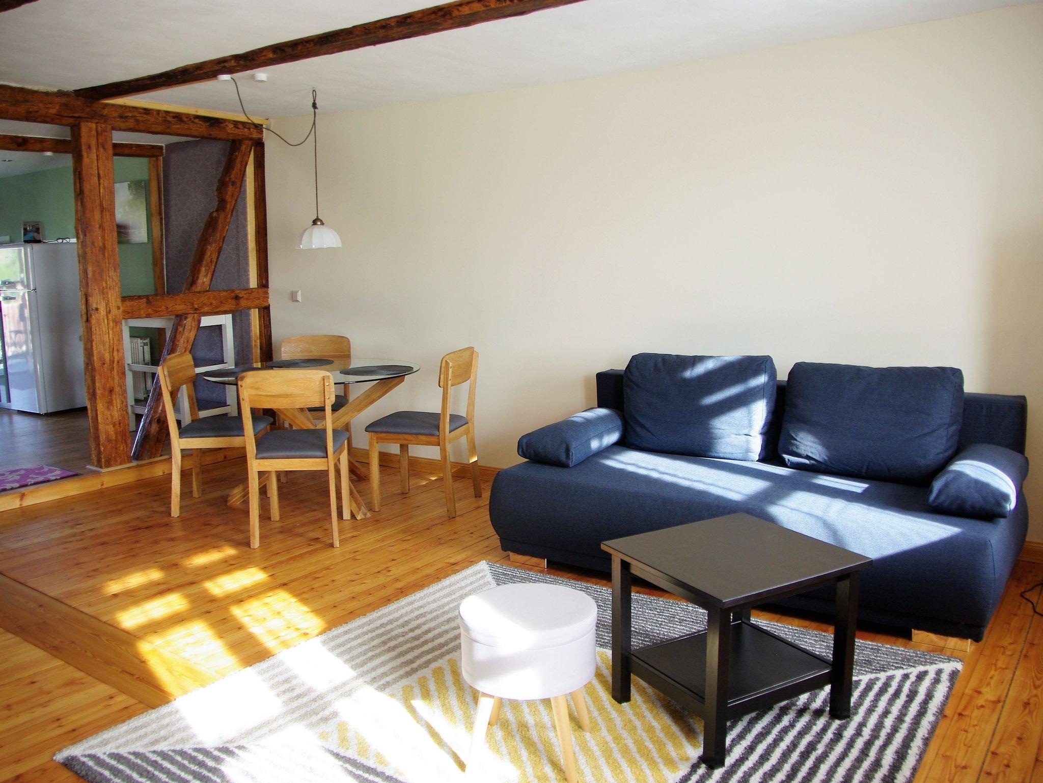 Unser Gästehaus beherbergt in einem historischen Fachwerkhaus in ländlicher Lage zwei neu entstandene Ferienwohnungen:
