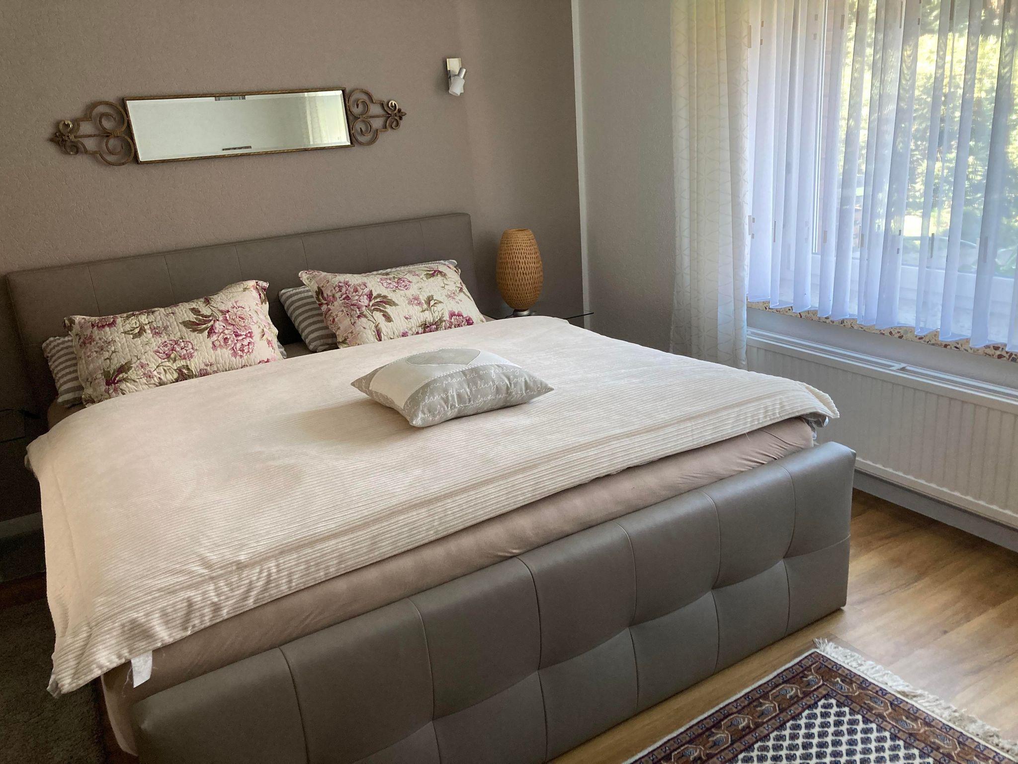Neu renovierte, 80 m2 große, modern eingerichtete, behindertengerechte EG-Wohnung (Nichtraucher), bietet reichlich Platz für 1-4 Personen. Das gemütliche Wohnzimmer mit SAT-TV lädt zum Entspannen ein. Die komplett ausgestattete Küche mit Geschirrspüler, Kühl-Gefrierschrank, Cerankochfeld, Toaster, Eierkocher, Esstisch mit 5 Stühlen, Wasserkocher, Kaffeevollautomat und Microwelle lassen keine Wünsche offen. Das geräumige Badezimmer mit ebenerdiger Dusche, Waschtisch mit großem Spiegelschrank, incl. Kosmetikspiegel und Steckdosen, sowie Handtuchtrockner und Duschhocker runden das Gesamtbild ab. Unsere Gartenanlage mit Teich und Pavillon können sie gerne zum Verweilen nutzen (Haustiere nach Absprache). WLAN, Pkw- und Fahrrad-Abstellplatz kostenfrei vorhanden.