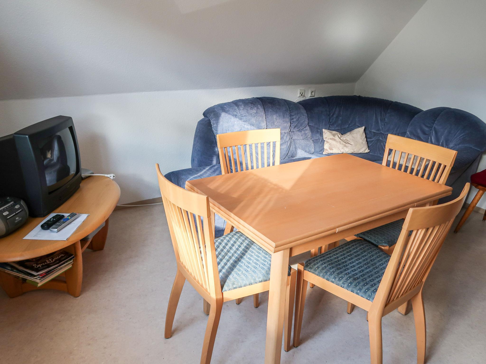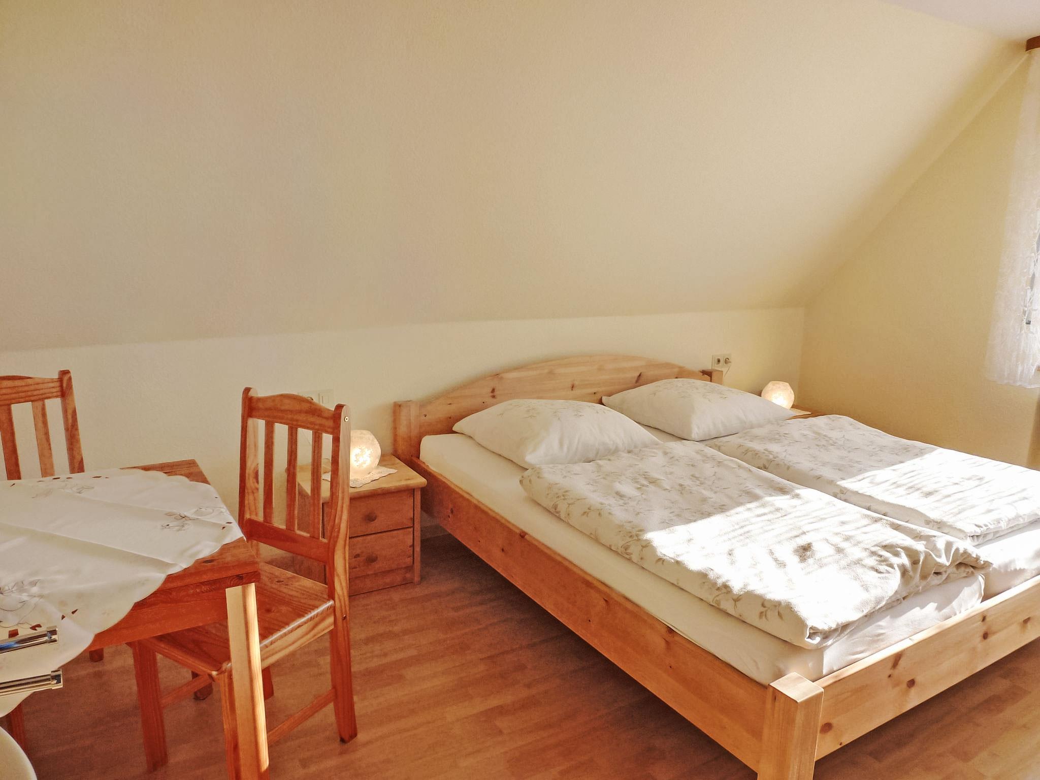 3-room apartment 77 m2 on 1st floor. Cosy furnishings: 1 room with 2 beds (90 cm, length 200 cm). 1 room with sloping ceilings with 1 double bed (2 x 90 cm, length 200 cm), hand-basin. Exit to the balcony. 1 room with 1 double bed (2 x 90 cm, length 200 cm), hand-basin. Kitchen-/living room (oven, dishwasher, 4 ceramic glass hob hotplates, toaster, kettle, electric coffee machine) with dining table and satellite TV. Bath/shower/WC. Heating. Balcony. Balcony furniture. Parking (1 car) at the house. Please note: non-smokers only. Maximum 1 pet/ dog allowed. Smoke alarm. Access to the twin bedroom only via the doubleroom with balcony.