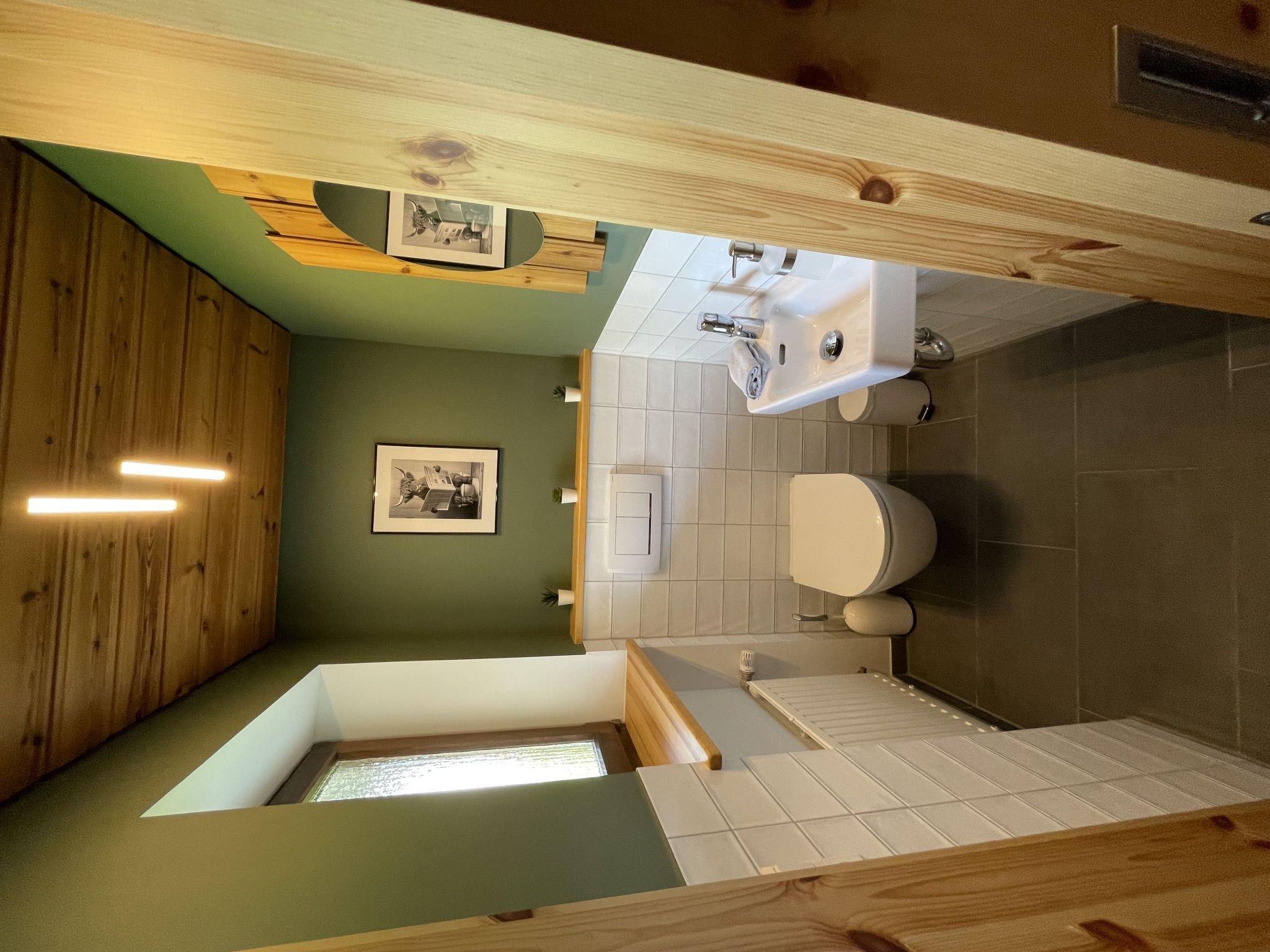 5-room house 120 m2. Spacious, tasteful furnishings: living/dining room with panoramic window. Large kitchen (oven, dishwasher, 4 ceramic glass hob hotplates, microwave, freezer, electric coffee machine) with dining nook. Sep. WC. Upper floor: large living room with sloping ceilings with satellite TV (flat screen). 1 room with 1 double bed (2 x 90 cm, length 200 cm), hand-basin. 1 room with 1 double bed (180 cm, length 200 cm). 1 small room with 1 bed (90 cm, length 200 cm). Shower, sep. WC, double hand-basin. Heating. Patio. Facilities: washing machine. Internet (WiFi, free). Please note: non-smoking house. Smoke alarm, fire extinguisher.