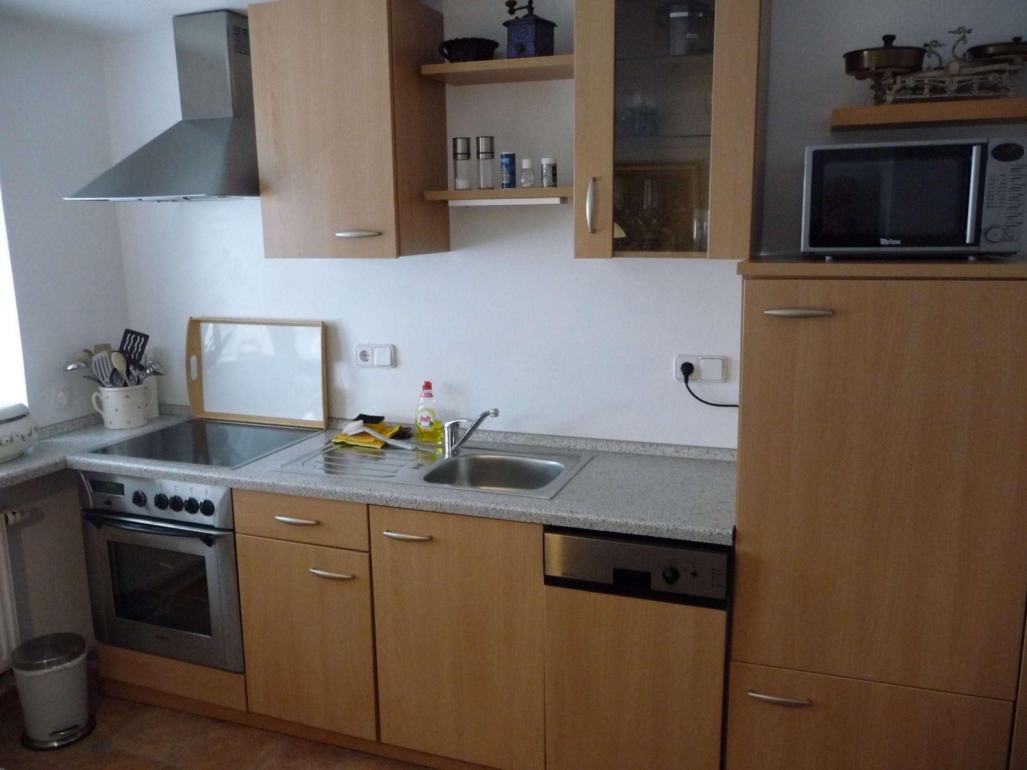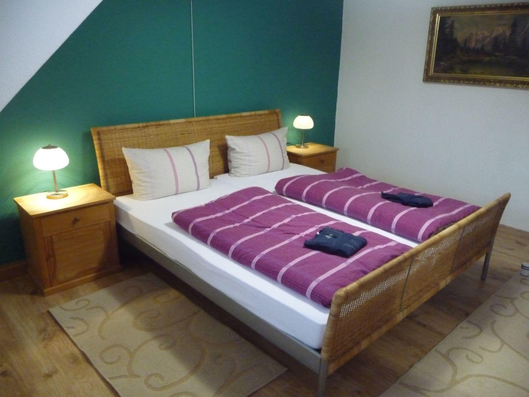 Inside, you will find a lovingly and fully equipped living area, which extends over two floors and covers around 85m². The accommodation offers enough space for up to 4 people, ideal for 2 couples or a small family. The cosy, homely living room with wood-burning stove invites you to linger, while the kitchen with integrated dining area leaves nothing to be desired. A high chair is available for the youngest guests. Two cosy bedrooms, one with a double bed and a cot on request, the other with two single beds, promise restful nights. The bathroom has two washbasins, a barrier-free shower, hand and bath towels and bathrobes. There is also a separate toilet on each floor.