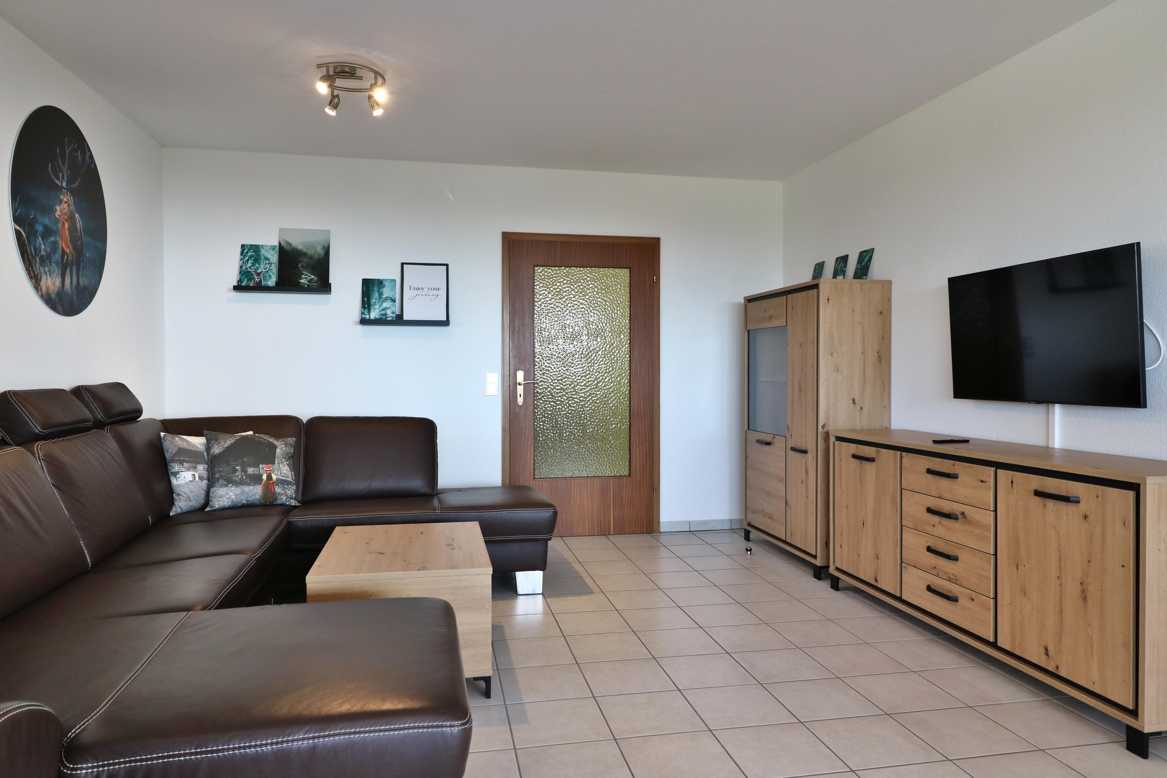 - 1 Wohn-/Schlafzimmer mit TV, Schlafsofa und Essplatz