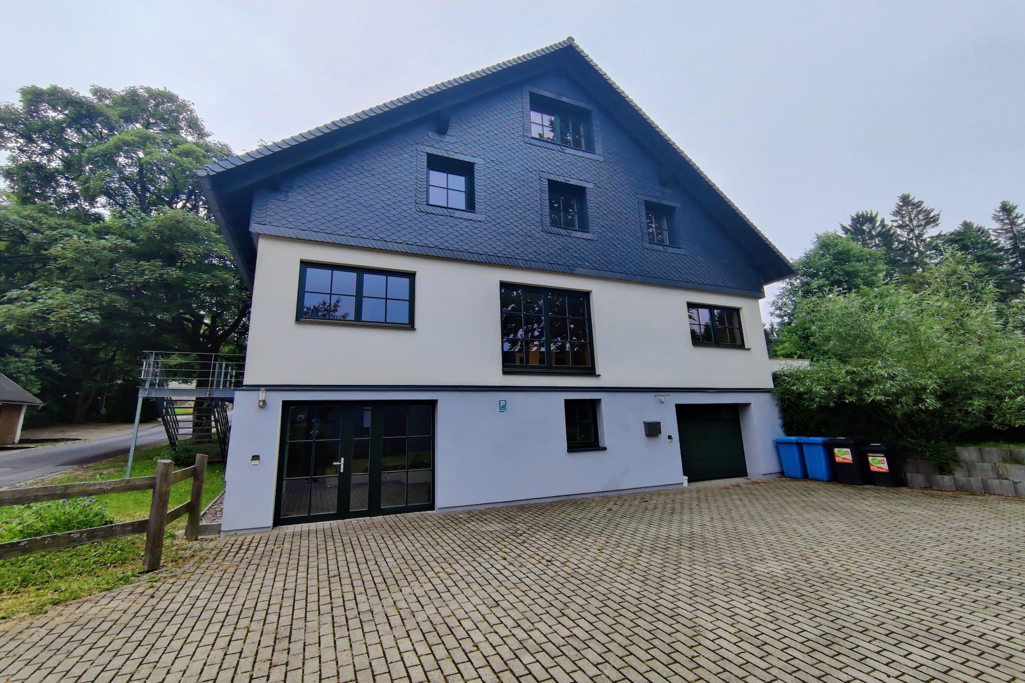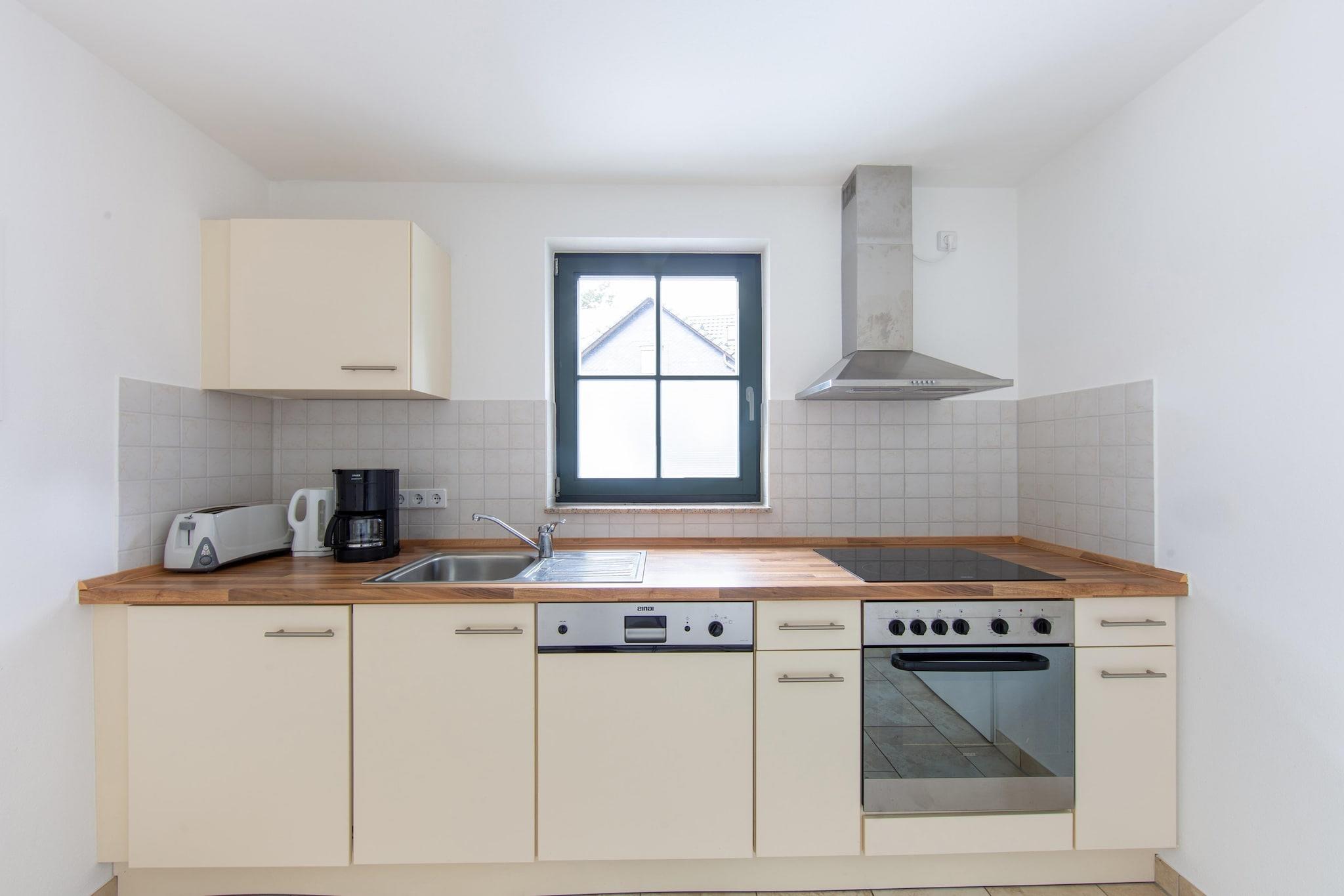 Charmerende familieretreat Slap af i dette luftige feriehus i Eisfeld, ideelt til en lille familie- eller grupperejse. Ejendommen har en grøn have og en rummelig terrasse, hvor du kan nyde landskabet, nyde en grill eller se solnedgangen. Indenfor inviterer et åbent køkken til at tilberede måltider, mens stuen med tv og stereoanlæg giver et hyggeligt sted at slappe af. Komfortable soveværelser og centralvarme sikrer afslappende nætter, og tankevækkende detaljer som en høj stol og bordfodbold gør dette hjem perfekt til familier. Kæledyr er velkomne, så dine lodne venner kan deltage i det sjove. Natur og lokalliv Eisfeld ligger i et fredeligt område og byder på frisk luft, naturskønne vandreture og cykelruter gennem frodige landskaber. Gå en tur gennem byen for at udforske historiske bygninger eller slap af på lokale caféer og restauranter, der serverer traditionelle Thüringer-retter. Nærliggende stier og grønne områder gør det nemt at tage dit kæledyr med på en gåtur, mens familier kan udforske attraktioner som Eisfeld Slot eller vove sig videre til Veste Coburg og Masserberg på dagsture. Bekvemmelighed og komfort Dette hjem på første sal kommer med sikker cykelopbevaring, en privat parkeringsplads til seks biler og rigelig plads til dine ejendele. Nyd de fælles havemøbler, terrasse og hyggelige siddepladser til morgenkaffe eller aftenchat. Uanset om du planlægger en weekendophold eller et længere ophold, kombinerer dette feriehus komfort, natur og bekvemmelighed og tilbyder et mindeværdigt tilflugtssted i hjertet af Thüringer Wald.