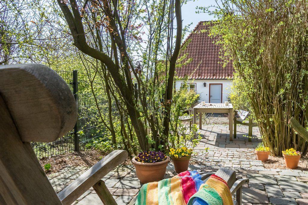 Im ca. 400m² großen Garten sind 2 wunderschöne Terrassen mit Esstisch, 4 Stühlen und 2 Teak-Liegen. Fahrräder können im Carport abgestellt werden.