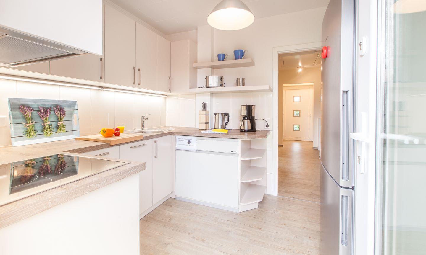 Weiter geht`s, für besondere Kocherlebnisse, in eine voll ausgestattete Küche mit Zugang zur Terrasse. Das Highlight dieses Hauses ist das großzügige Wohn-/ Esszimmer mit gemütlichem Sofa, großem TV und einer Essecke. Das Hauptschlafzimmer bietet ein Doppelbett und einen großen Kleiderschrank für die ganze Familie. Zusätzlich gibt es 2 Schlafzimmer mit einem Einzelbett und einer Kommode. Die Schlafzimmer sind mit Fliegengittern ausgestattet. Das Badezimmer verfügt über eine ebenerdige Dusche mit einer Rainshower Regendusche, Handtuchtrockner und Fenster. Der ca. 400 m² große Garten mit geschützter Terrasse bietet eine Sitzgruppe mit Sonnenschirm, 1 Holzkohlegrill und 2 Sonnenliegen. Fahrräder können sicher im abgeschlossenen Abstellschuppen abgestellt werden.