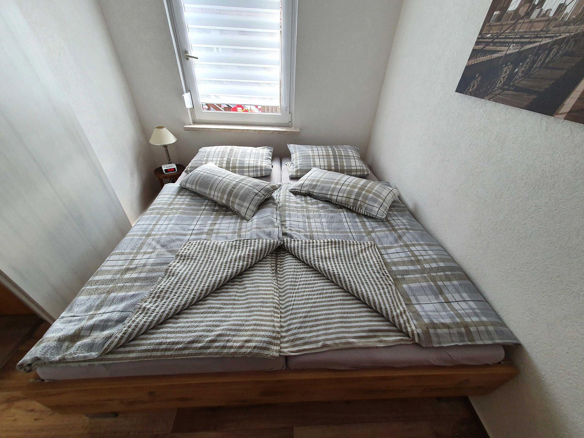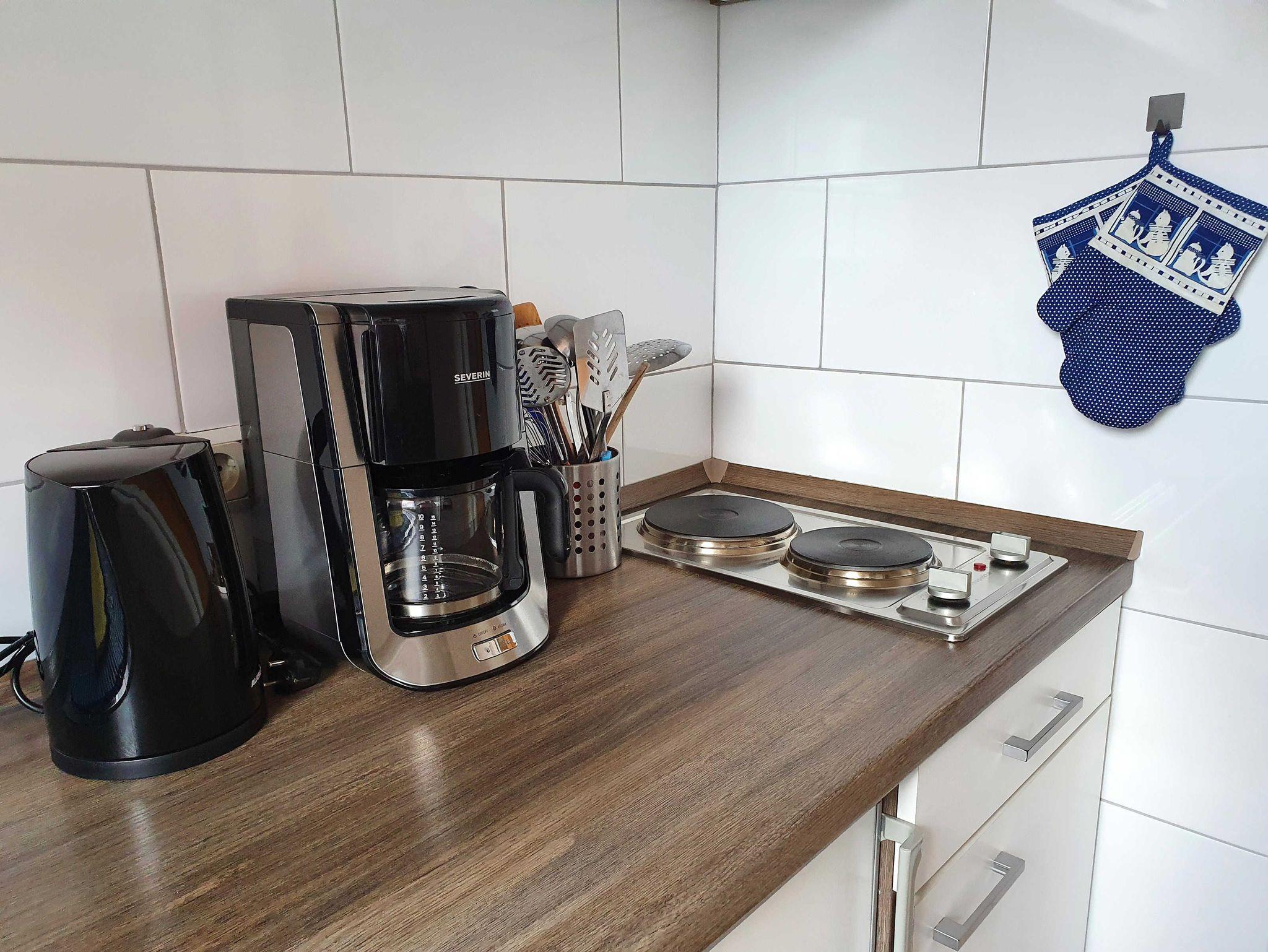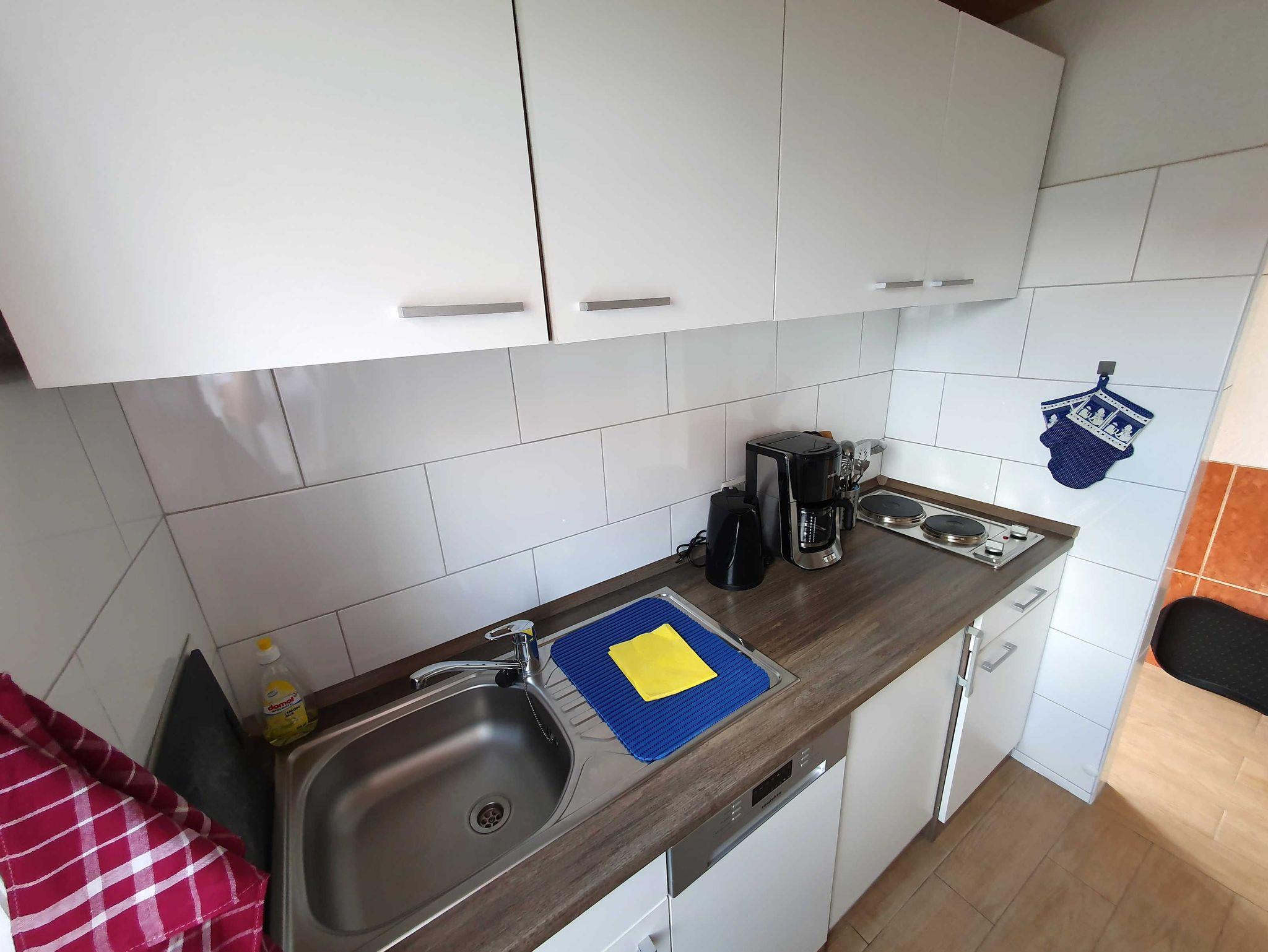 Wir bieten Ihnen ein gemütliches, helles Wohn- und Esszimmer mit Flat-TV und Radio. Es ist weiterhin mit einer Couch und einer Essecke ausgestattet. Unser Schlafzimmer ist mit einem bequemen Doppelbett 180x200 cm und einem praktischen Kleiderschrank ausgestattet. Unser zweites Schlafzimmer ist mit einer neuen bequemen Polsterliege (90x200 cm) eingerichtet. Die Küche ist ausgestattet mit Geschirrspüler, Kühlschrank mit Gefrierfach und zwei Kochplatten! Weiterhin steht auch eine Mikrowelle, Kaffemaschine und ein Toaster zur Verfügung!. Das Badezimmer ist komplett neu saniert und mit einer ebenerdigen Regendusche und einer Fußbodenheizung ausgestattet. Bettwäsche und Handtücher sind vorhanden.
