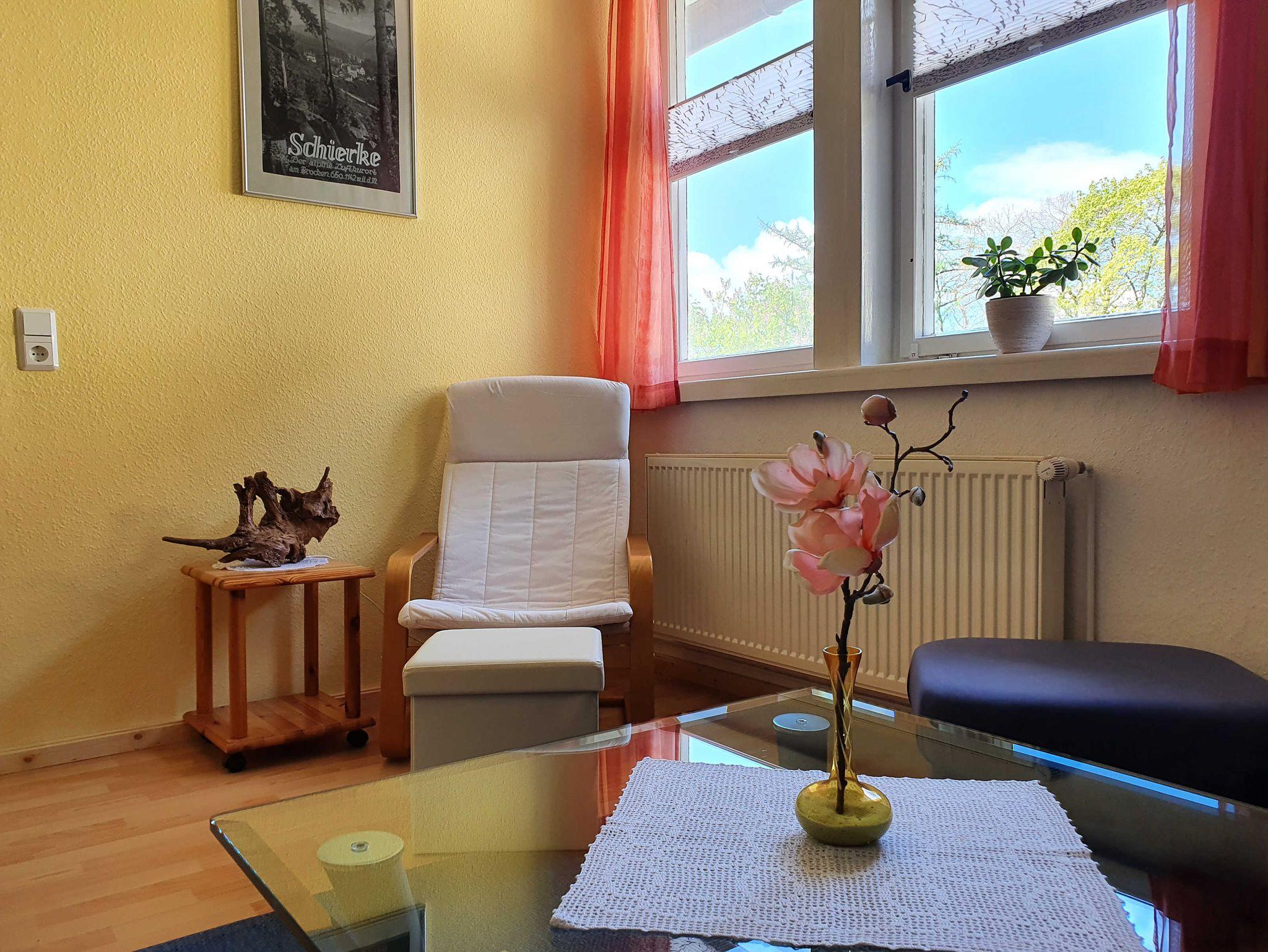 In einem waldnahen Fachwerkhaus am Südhang im Harzort Elend, unmittelbar an der Harzquerbahn gelegen, bieten wir eine separat abgeschlossene sonnige Ferienwohung mit eigenem Eingang. Eine gemütliche Atmosphäre für 2-3 Personen lädt zum Erholen ein. Zur Ferienwohnung zählt ein Wohnzimmer, ein Schlafzimmer mit Doppelbett und Einzelbett, eine Küche mit Küchenzeile und Esstisch und ein Bad mit Dusche. Auf einer kleinen Terrasse mit Sitzmöglichkeiten und einem Grill können Sie die Sommerabende genießen. Für Ihren PKW stellen wir Ihnen einen Stellplatz zur Verfügung.