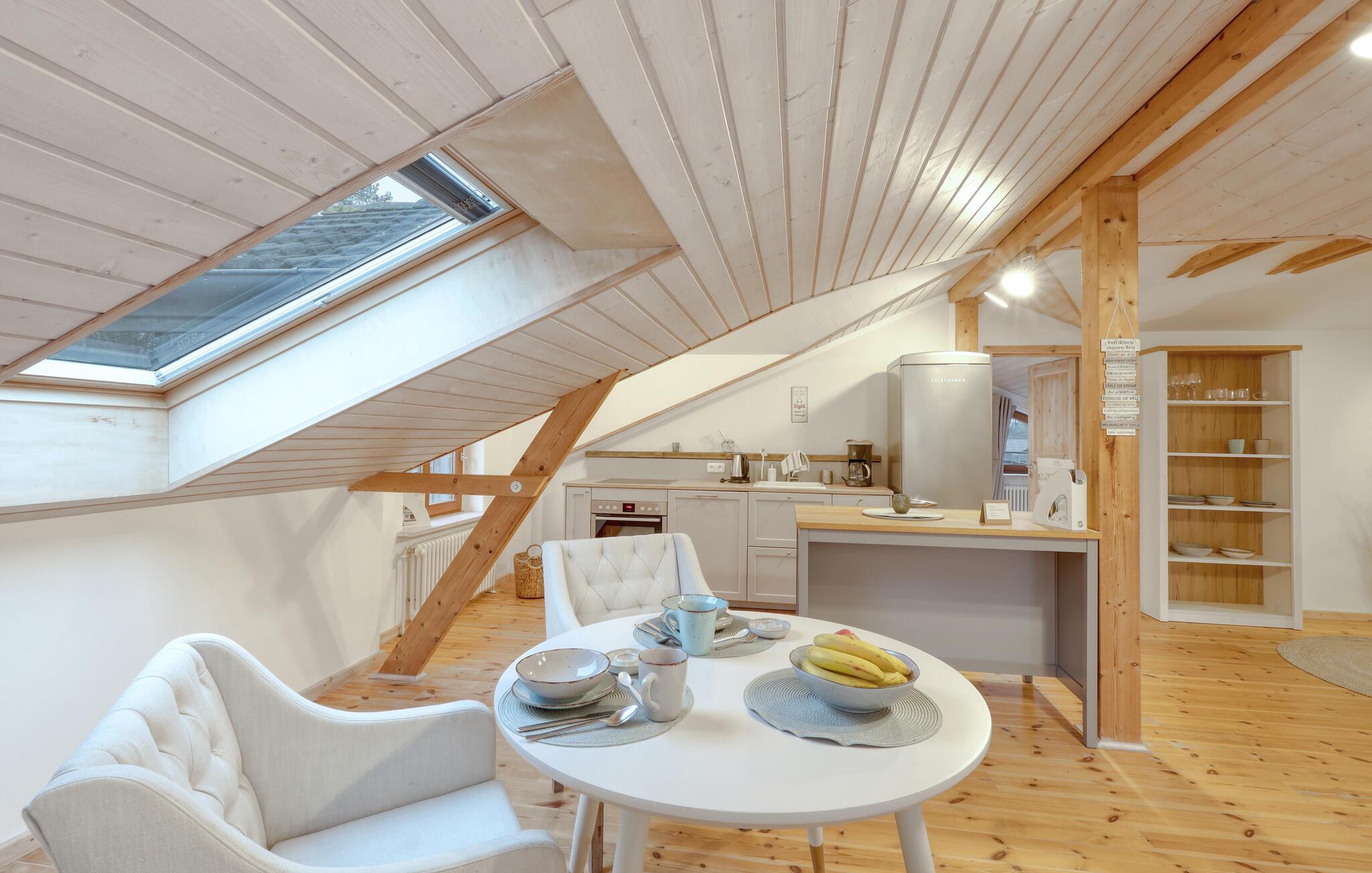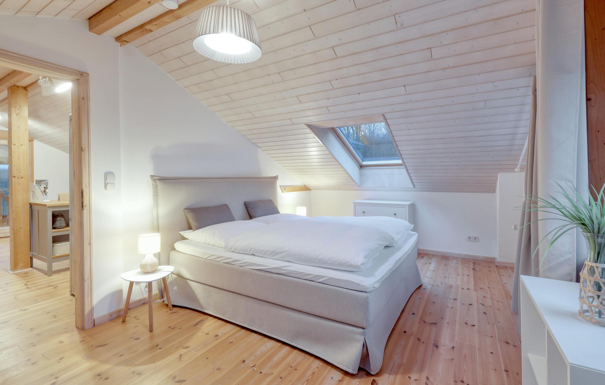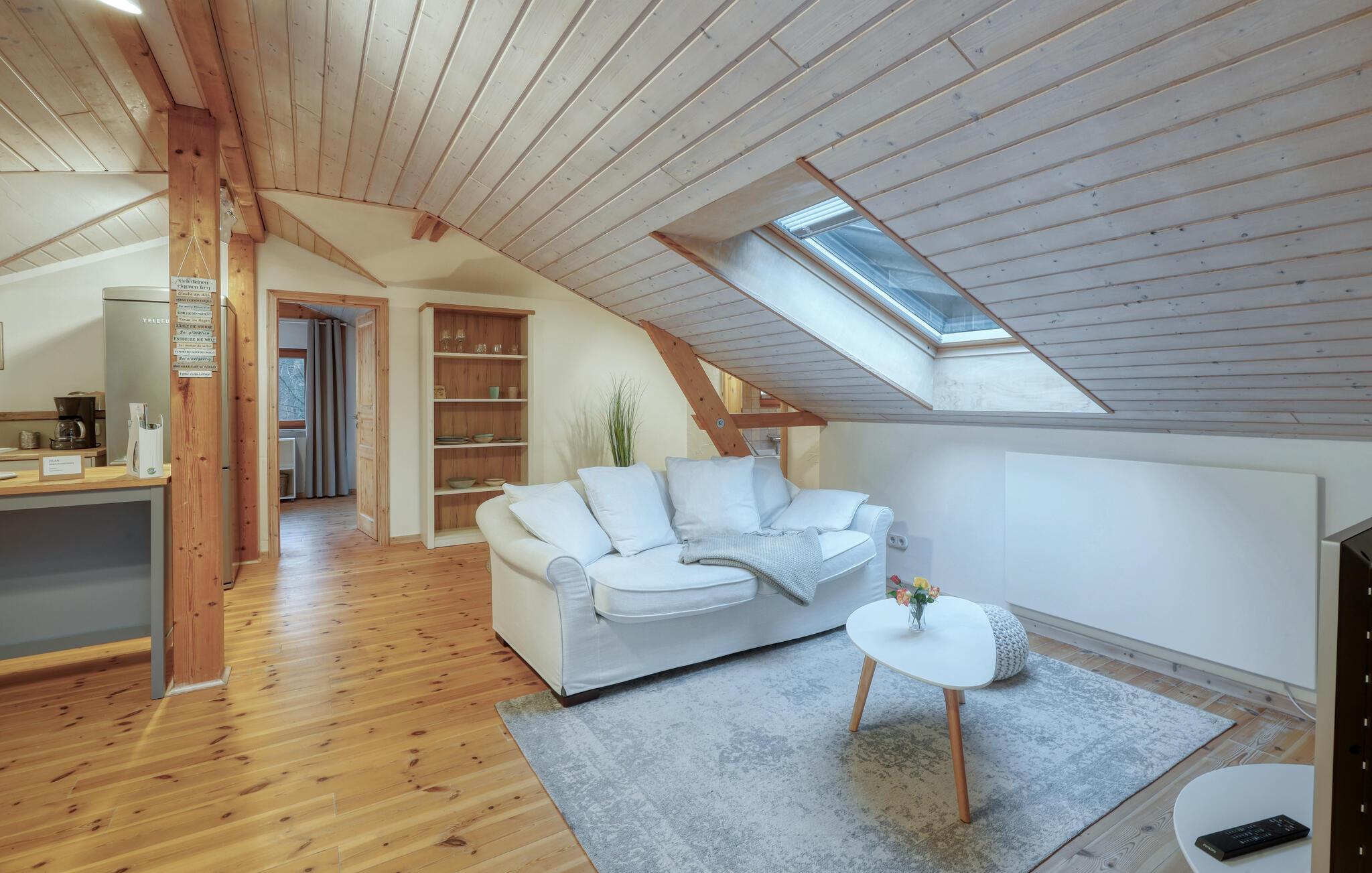 Tag en velfortjent pause og rejs som par eller med den lille familie til udkanten af Glücksburg, hvor I finder denne charmerende lejlighed i skønne, rolige omgivelser. Boligen er nydeligt indrettet med lyse træpaneler, gode møbler og et veludstyret køkken, hvor I kan tilberede jeres livretter efter en aktiv feriedag. Senere kan I rykke over i sofaen eller lænestolen med snacks og hver jeres bog, mens I lægger planer for de kommende dage.