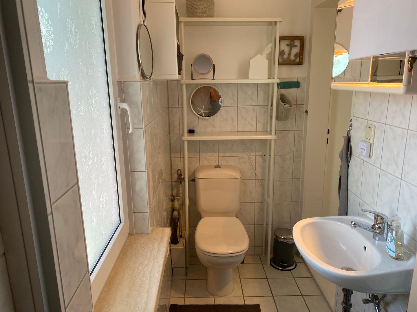 Die kompakte Küche ist mit einer Küchenzeile, zwei Induktionskochplatten und allem notwendigen Zubehör ausgestattet – ideal, um sich während Ihres Aufenthalts selbst zu versorgen. Das Schlafzimmer mit Doppelbett sorgt für erholsame Nächte, während das Badezimmer mit Dusche, WC und Waschbecken sowie ein zusätzliches Gäste-WC für zusätzlichen Komfort sorgen.