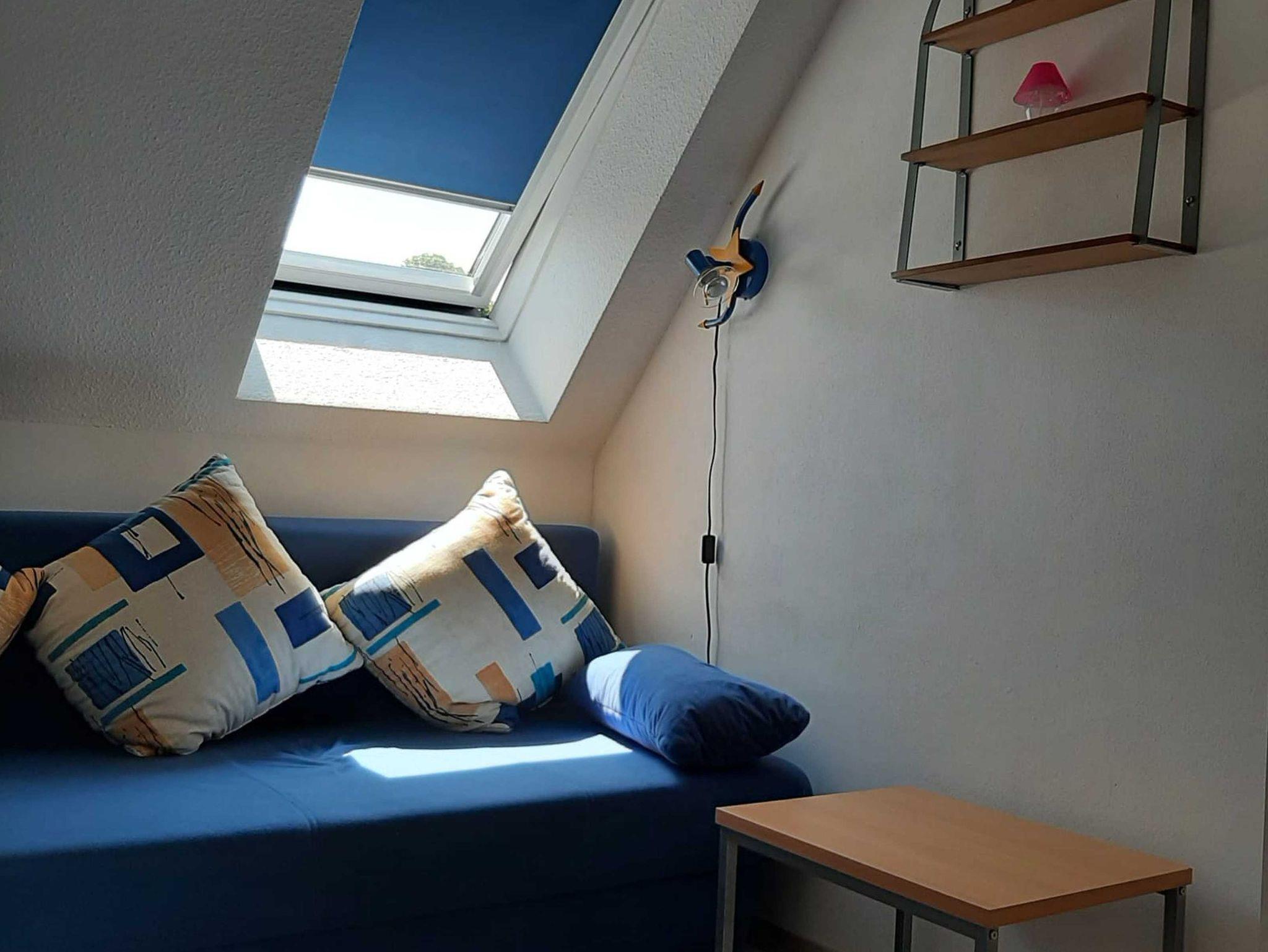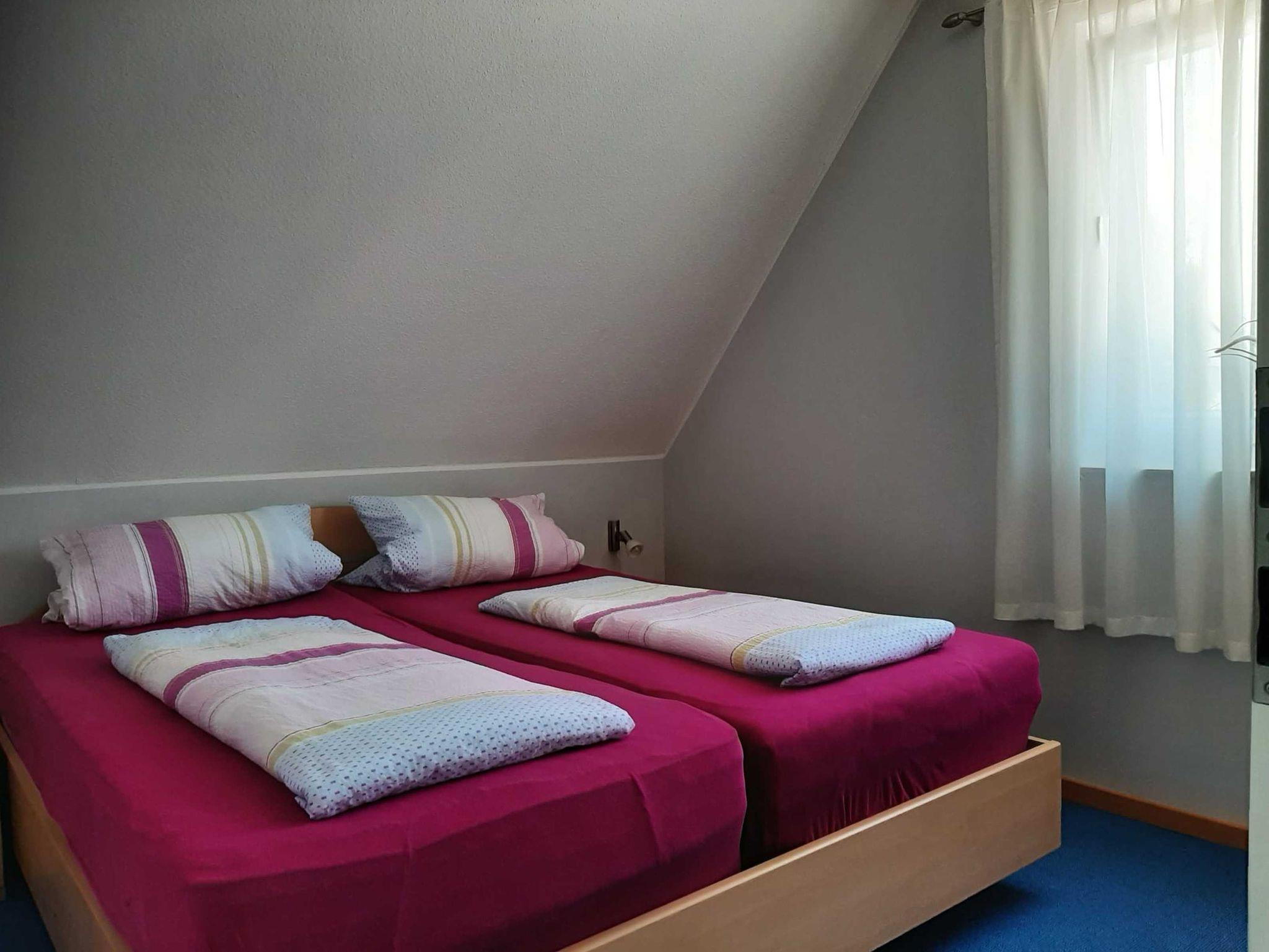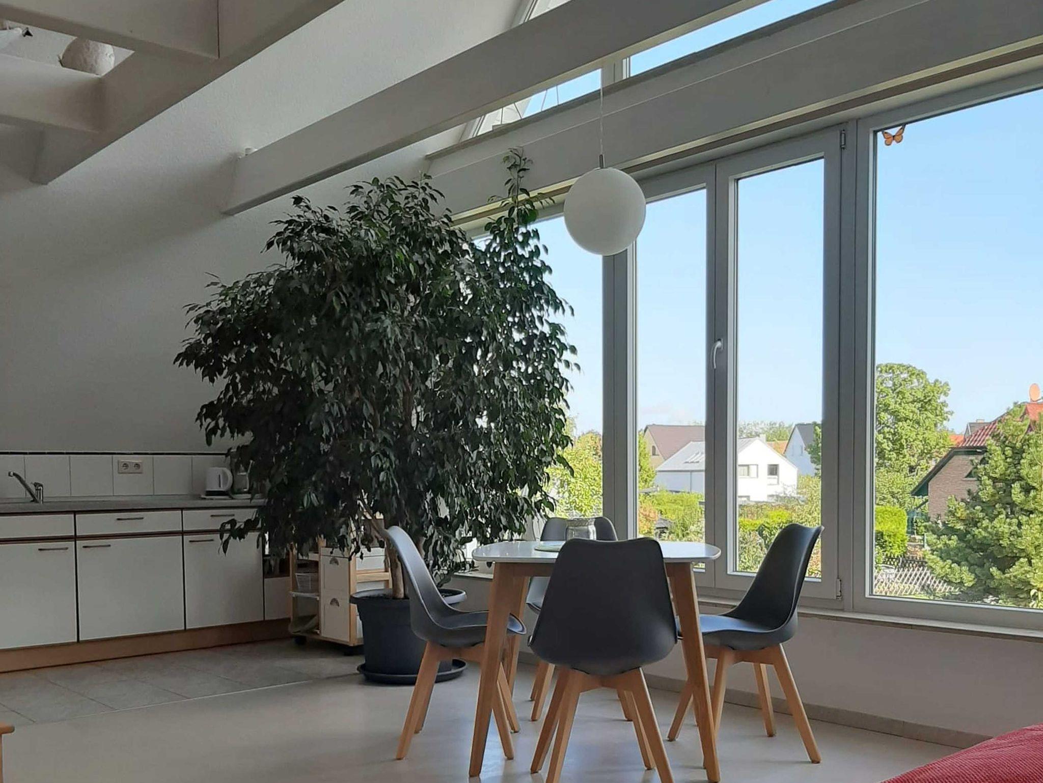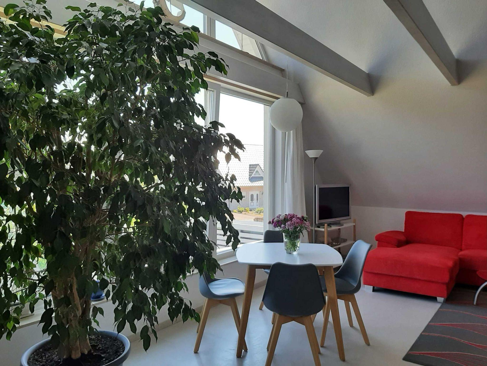 Die Ferienwohnung verfügt über zwei Schlafräume, einen ausgebauten Spitzboden, eine offene Küche zum Wohnraum sowie ein Bad mit Badewanne und separater Dusche.