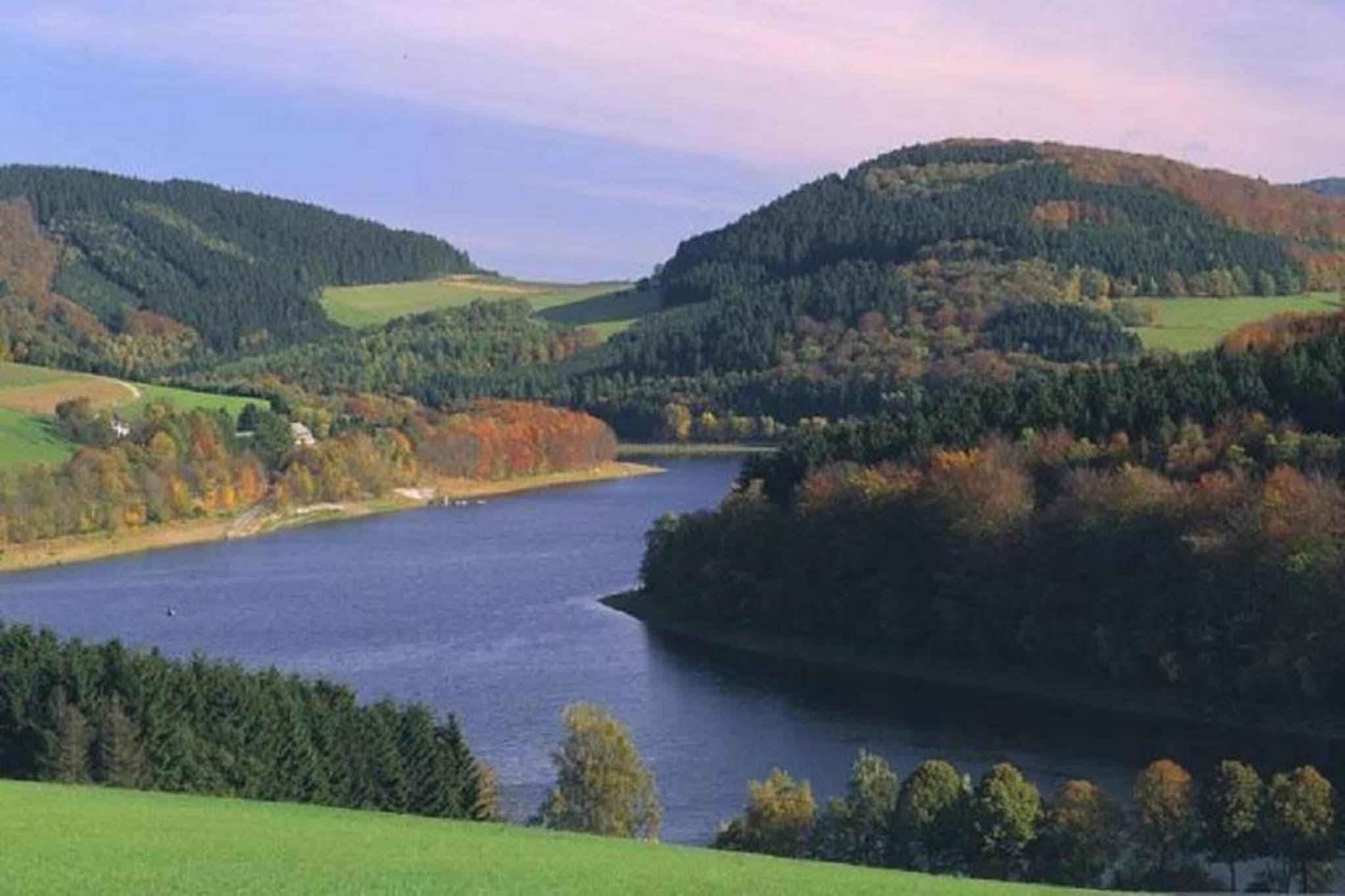 Slap af i dette stilfulde, moderne feriehus beliggende i Rothaar-bjergene i Sauerland. Det er ideelt for naturelskere og aktive rejsende og tilbyder direkte adgang til den naturskønne Rothaarsteig-vandresti, kendt for sin skønhed året rundt. Terrassen og haven giver fredelige steder at nyde den friske bjergluft og slappe af efter en dag med eventyr. Udforsk nærliggende Willingen og Winterberg, begge kendt for skiløb, skøjteløb og sommerkælkning. Familier vil elske FortFun-forlystelsesparken, mens Hennesee-søen inviterer dig til at svømme, sejle eller nyde en bådtur. Golfbaner, charmerende byer som Bödefeld og panoramaudsigter bidrager til regionens tiltrækningskraft. Uanset om du jagter sne eller solskin, tilbyder dette hjem en perfekt blanding af komfort, beliggenhed og udendørs sjov.