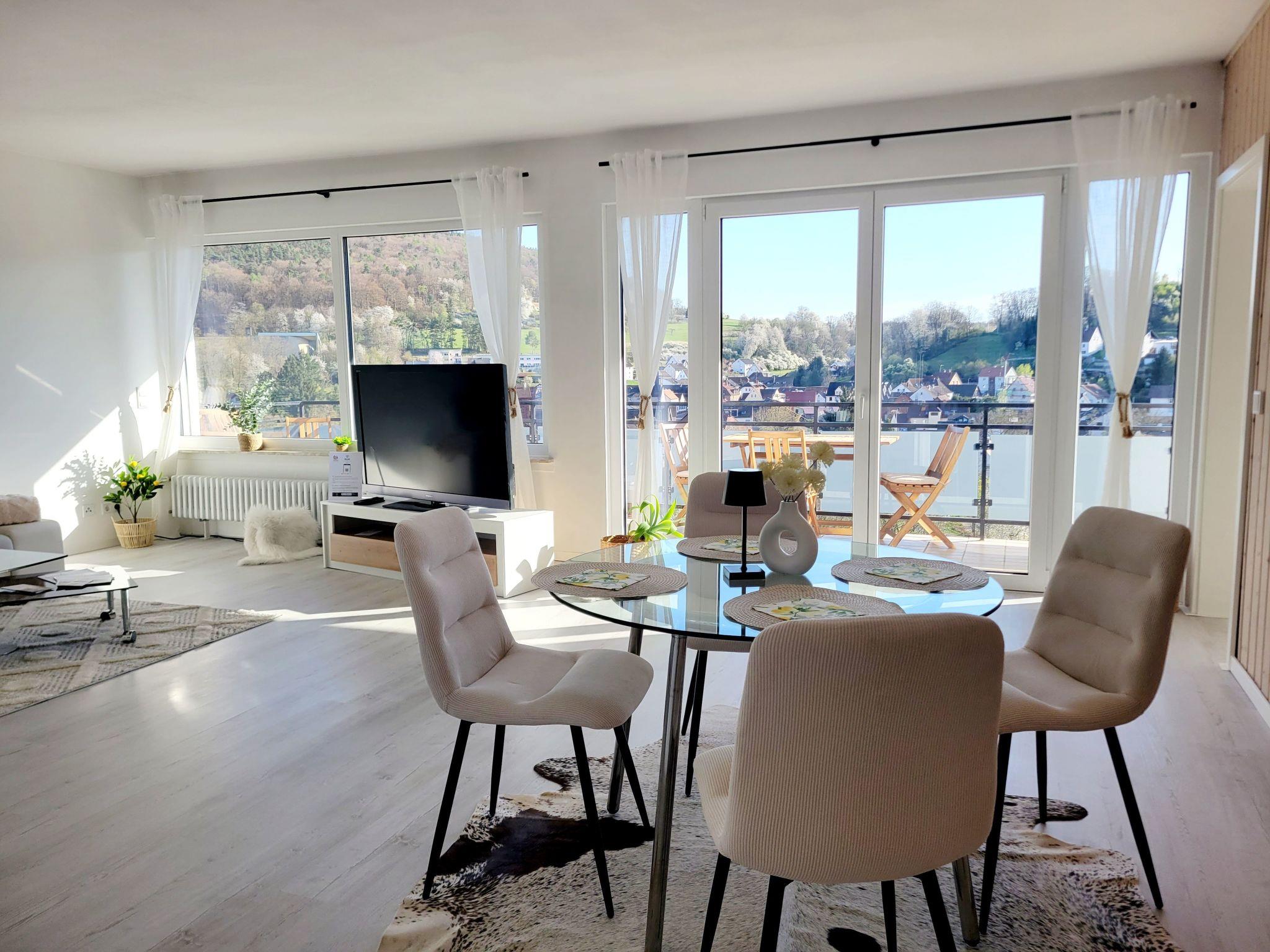 Our holiday flat in Elsenfeld-Rück spoils you with a magnificent south-facing balcony and a breathtaking panoramic view.