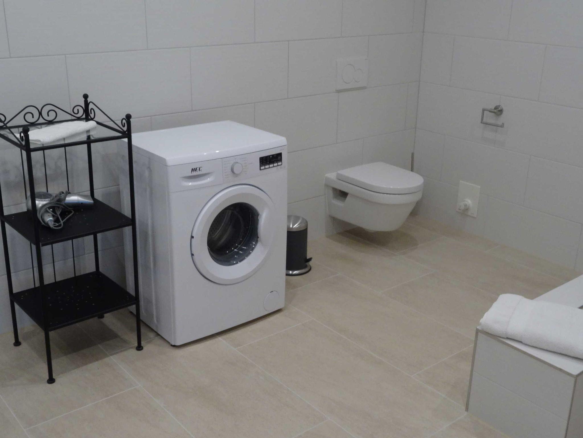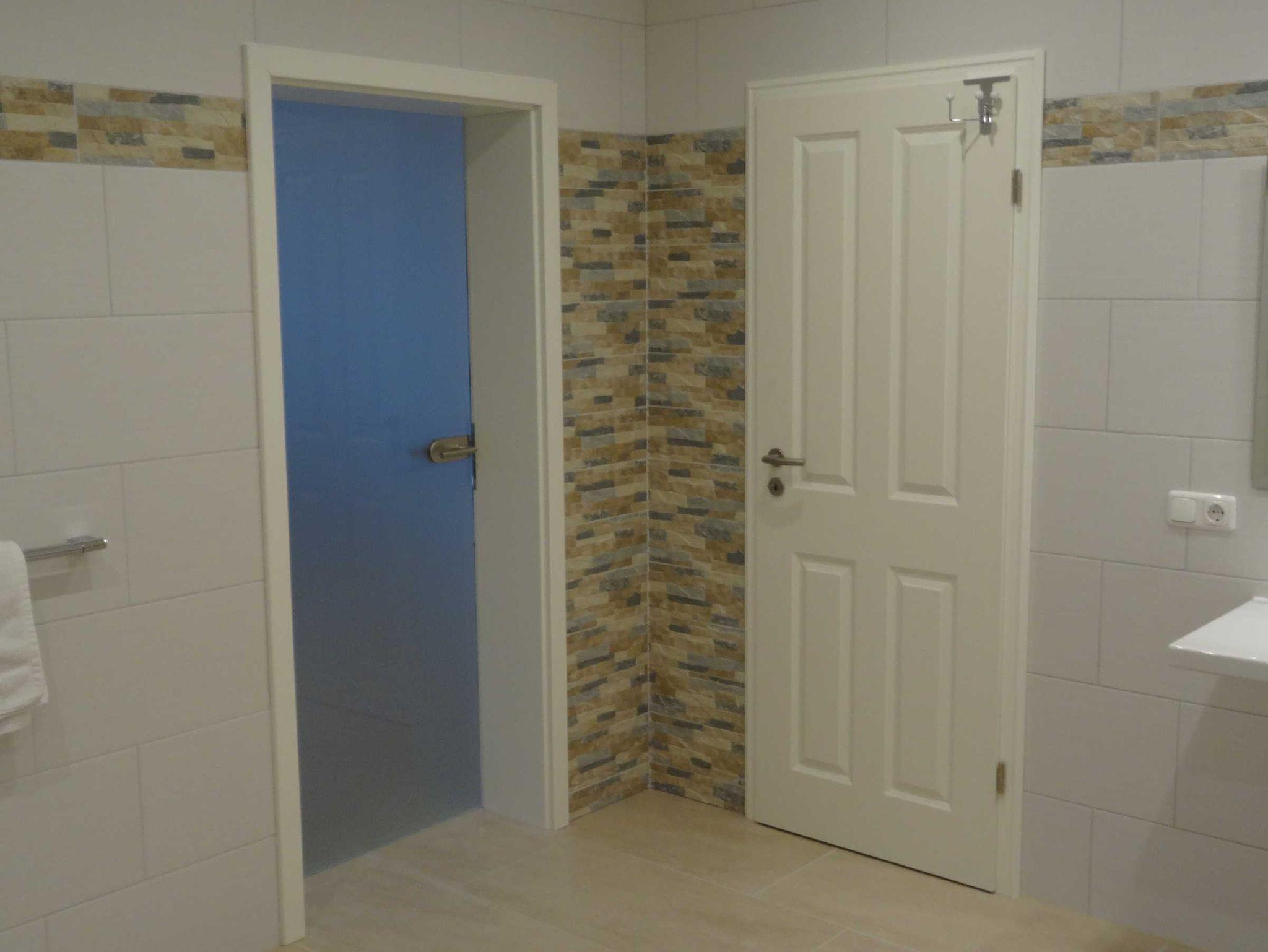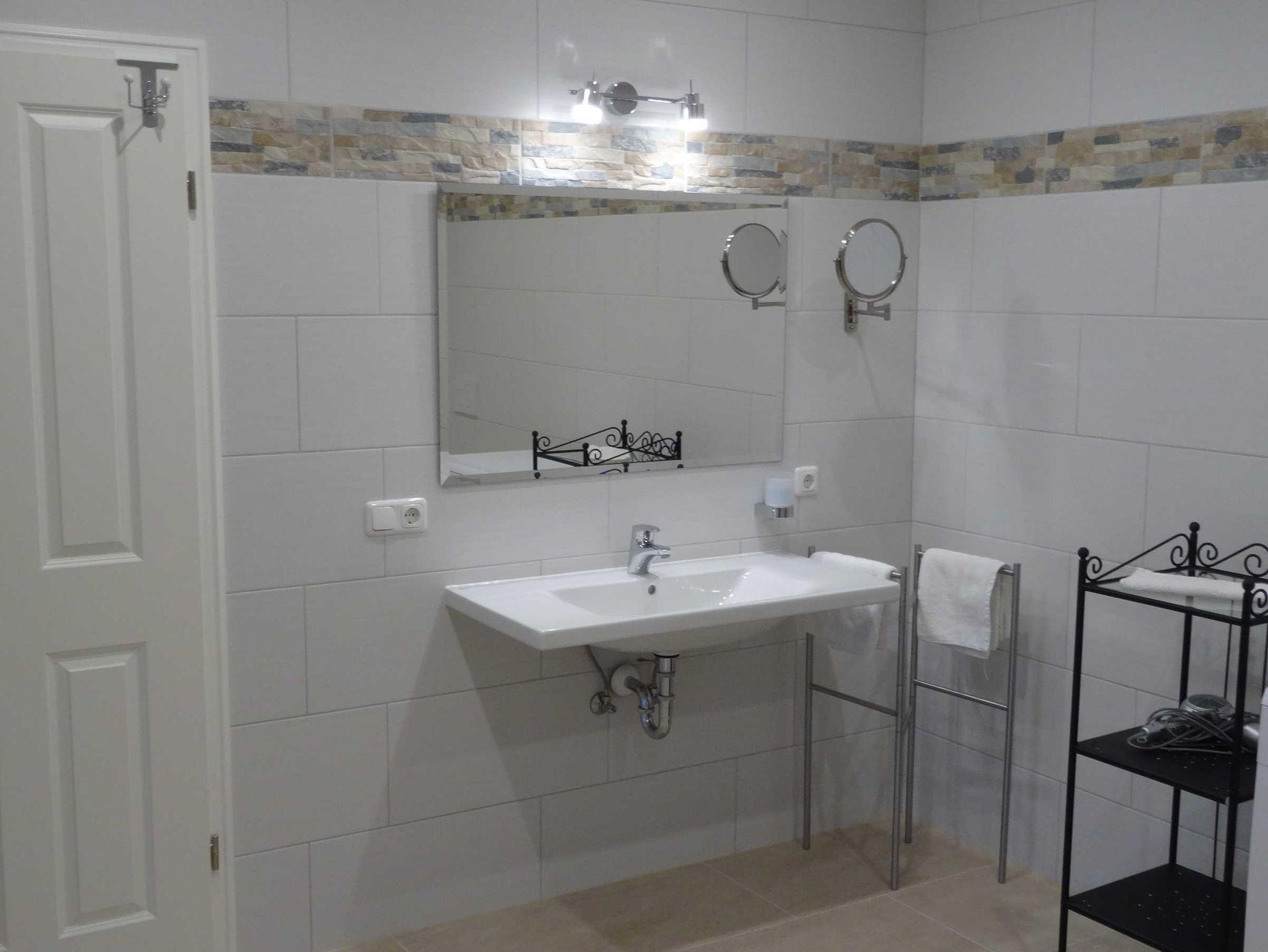 Das Bad ist mit einer ebenerdigen Dusche ausgestattet.