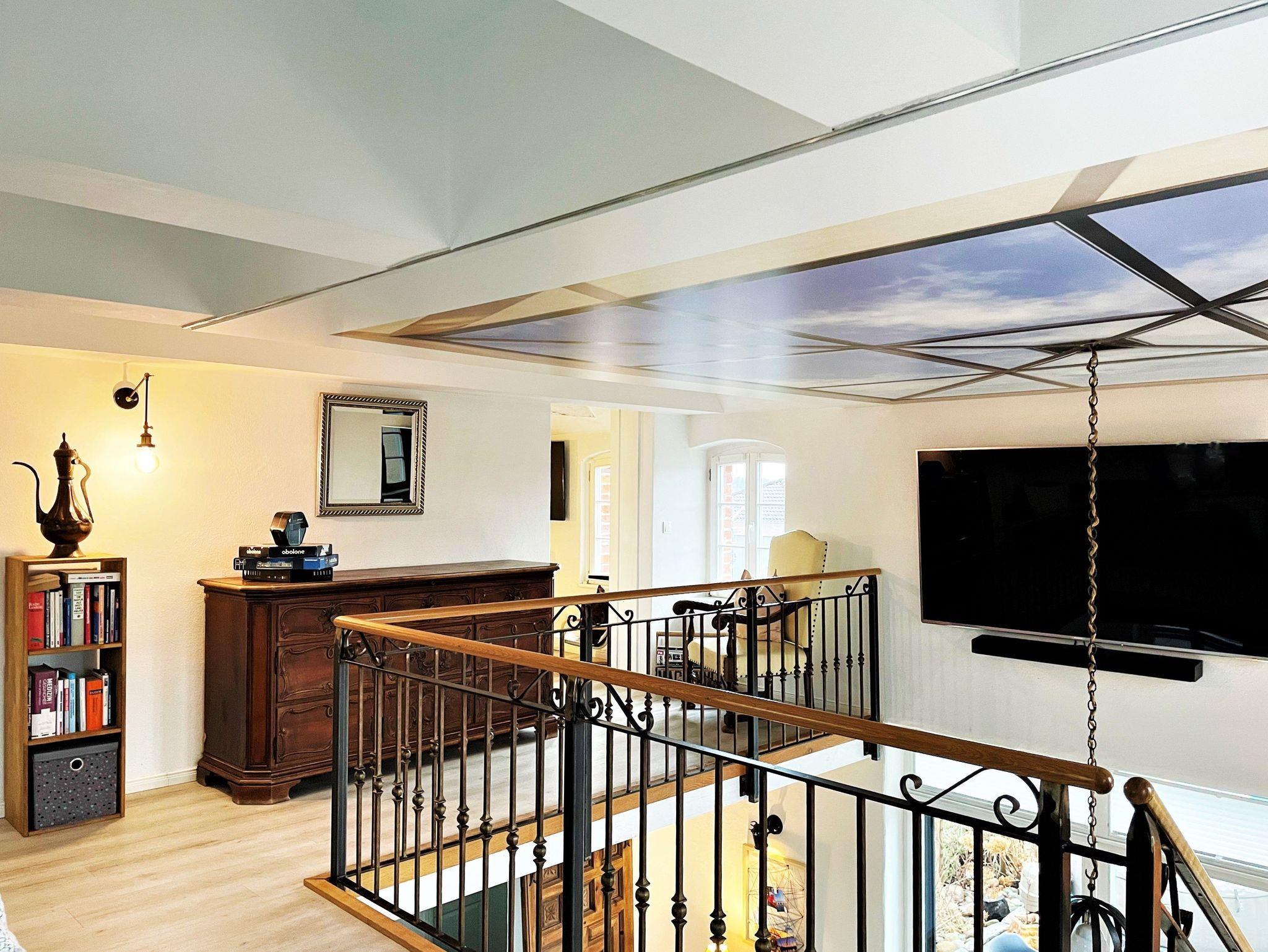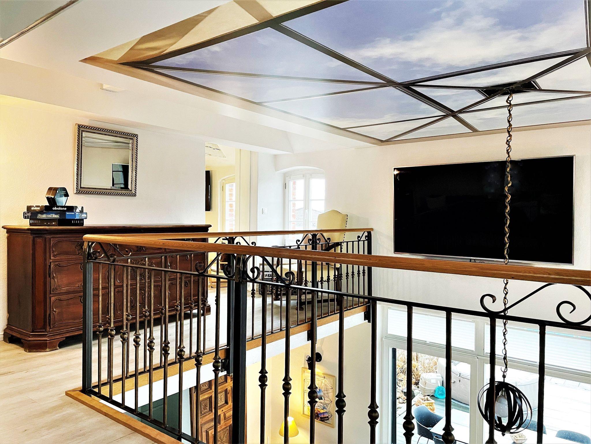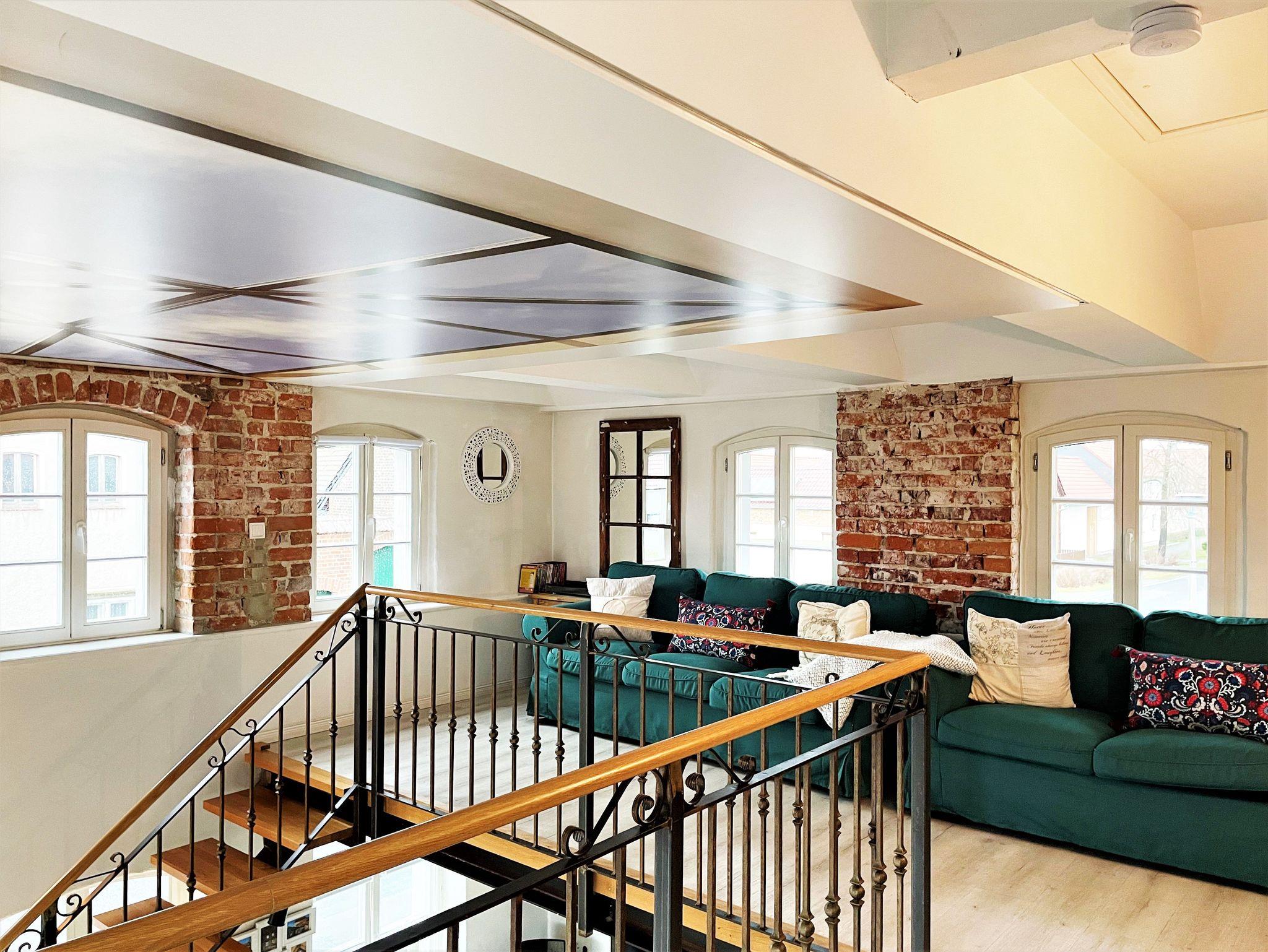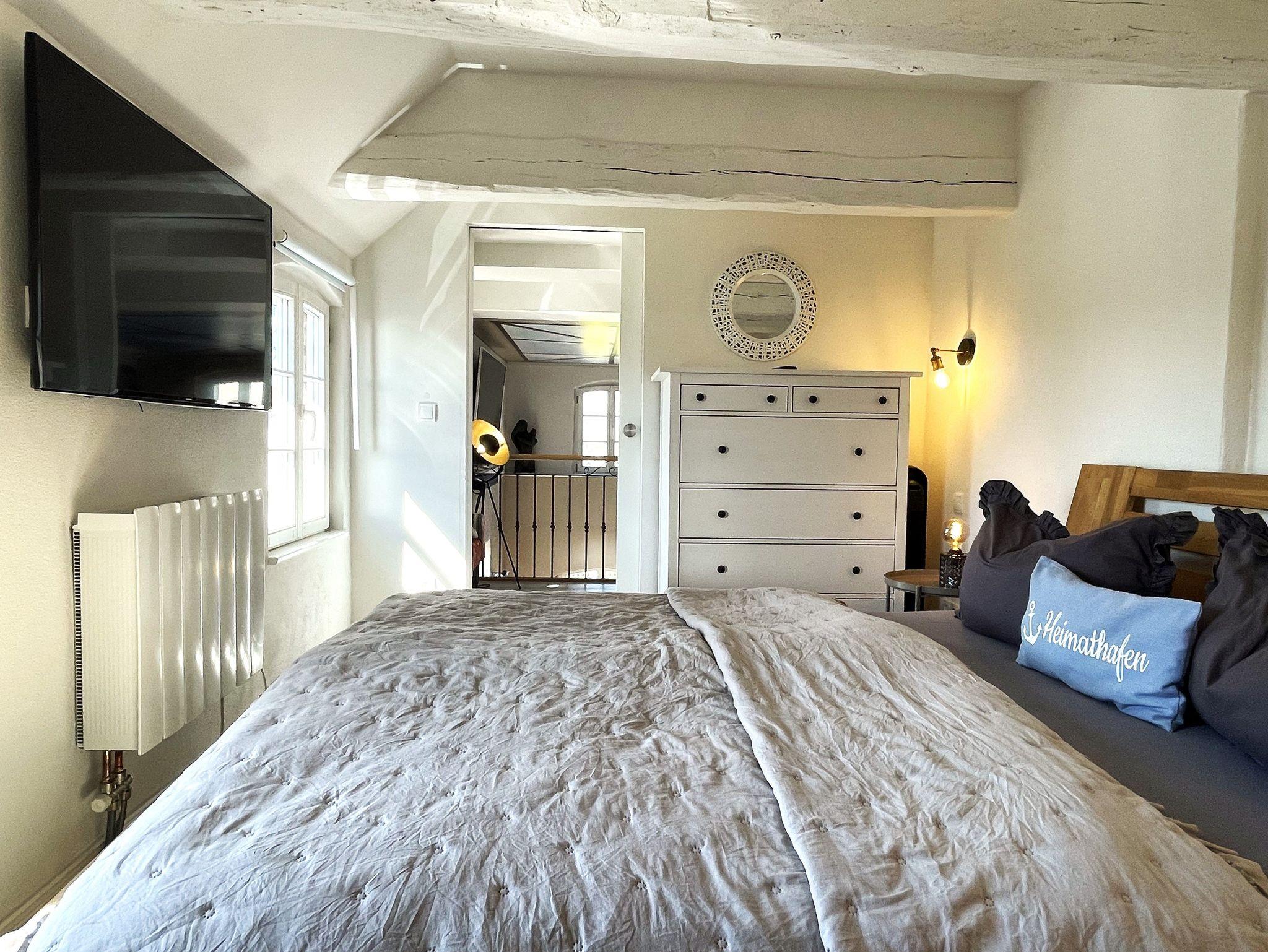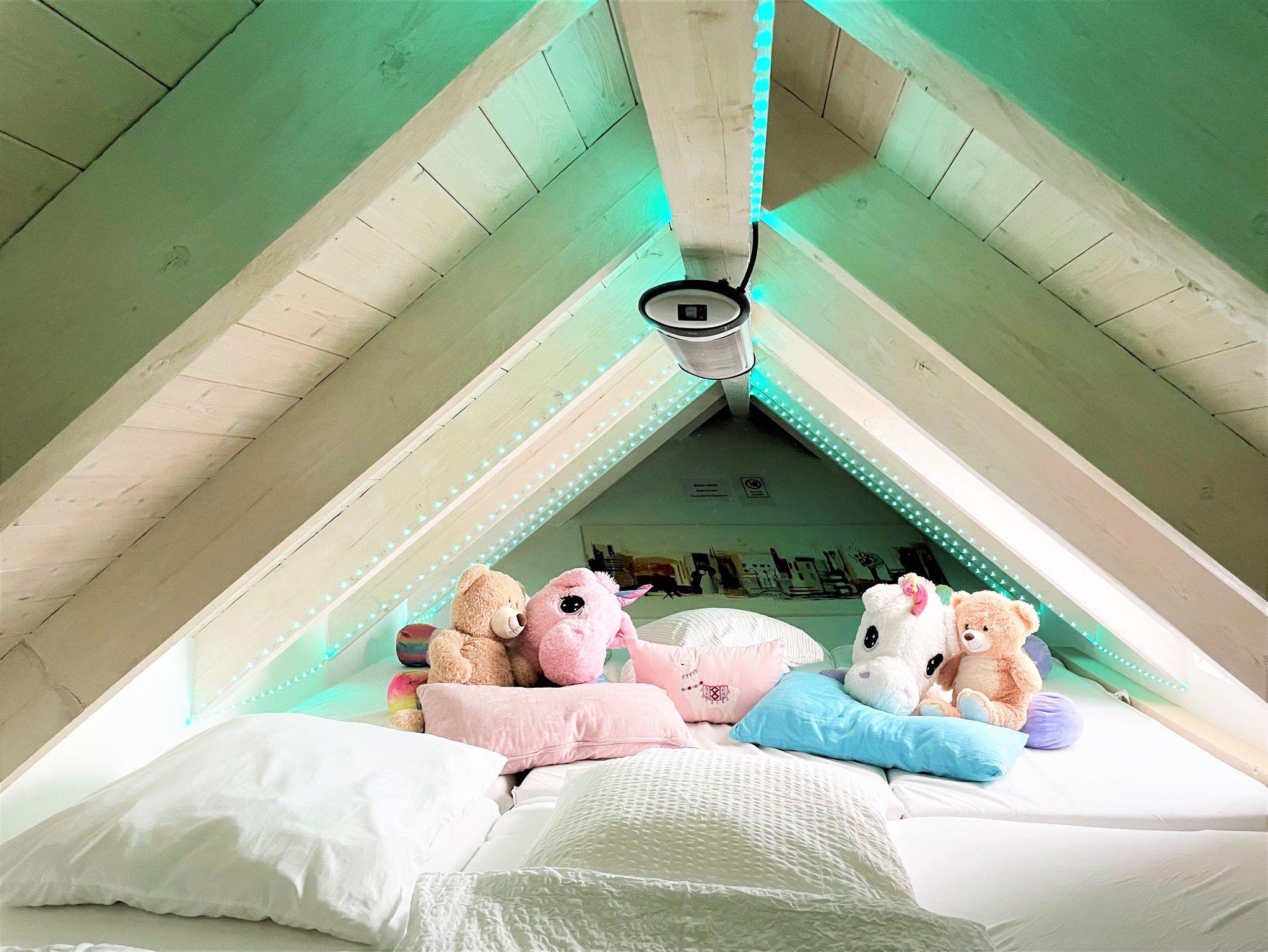 Der Wohnbereich auf der Galerie verfügt über einen großen Sitzbereich mit Blick auf den an der Wand angebrachten Smart-TV. Weiterhin befinden sich in der oberen Etage 2 Schlafzimmer mit je einem Doppelbett. Ein ausgebauter Schlafboden ist durch eines der Schlafzimmer erreichbar und für 2 Gäste (Kinder / Jugendliche) gedacht. Handtücher und Bettwäsche werden bereitgestellt und sind im Preis enthalten.