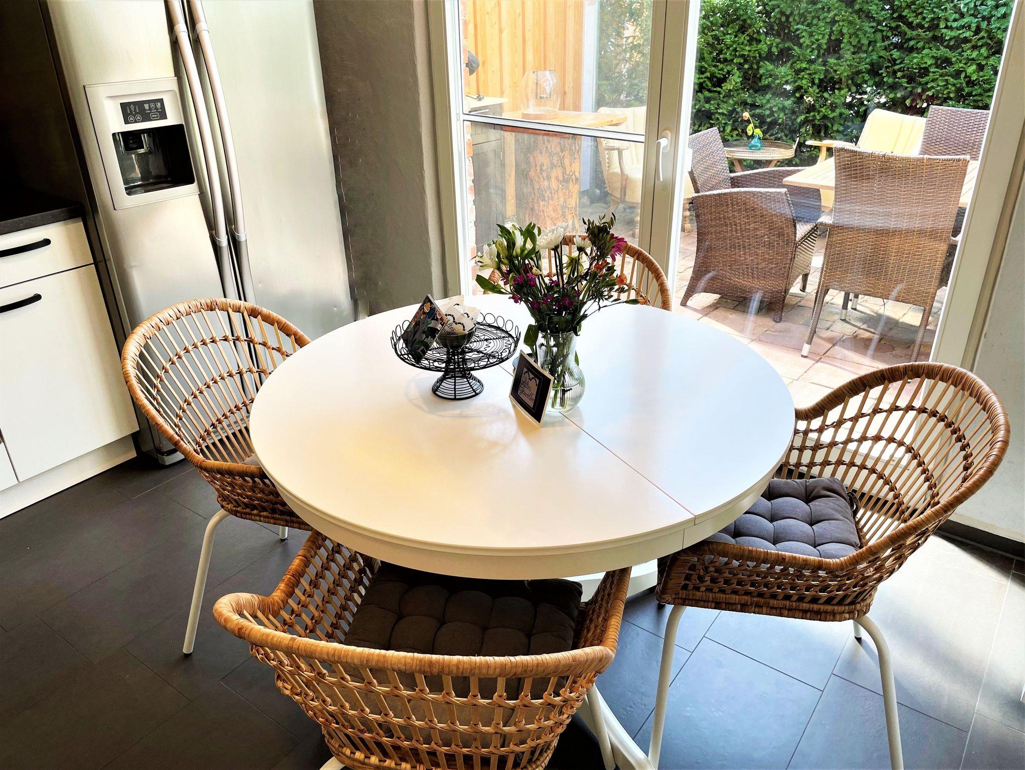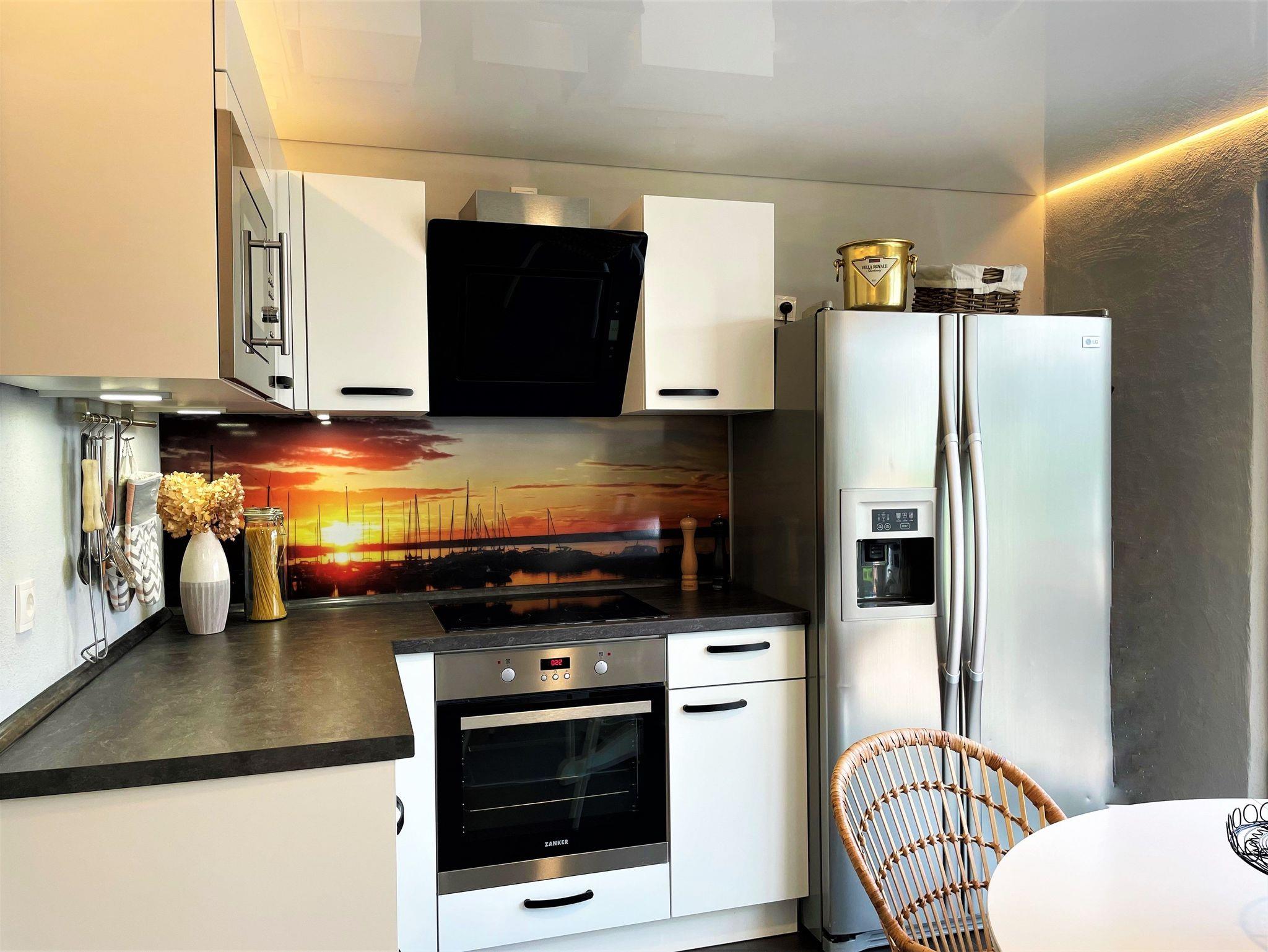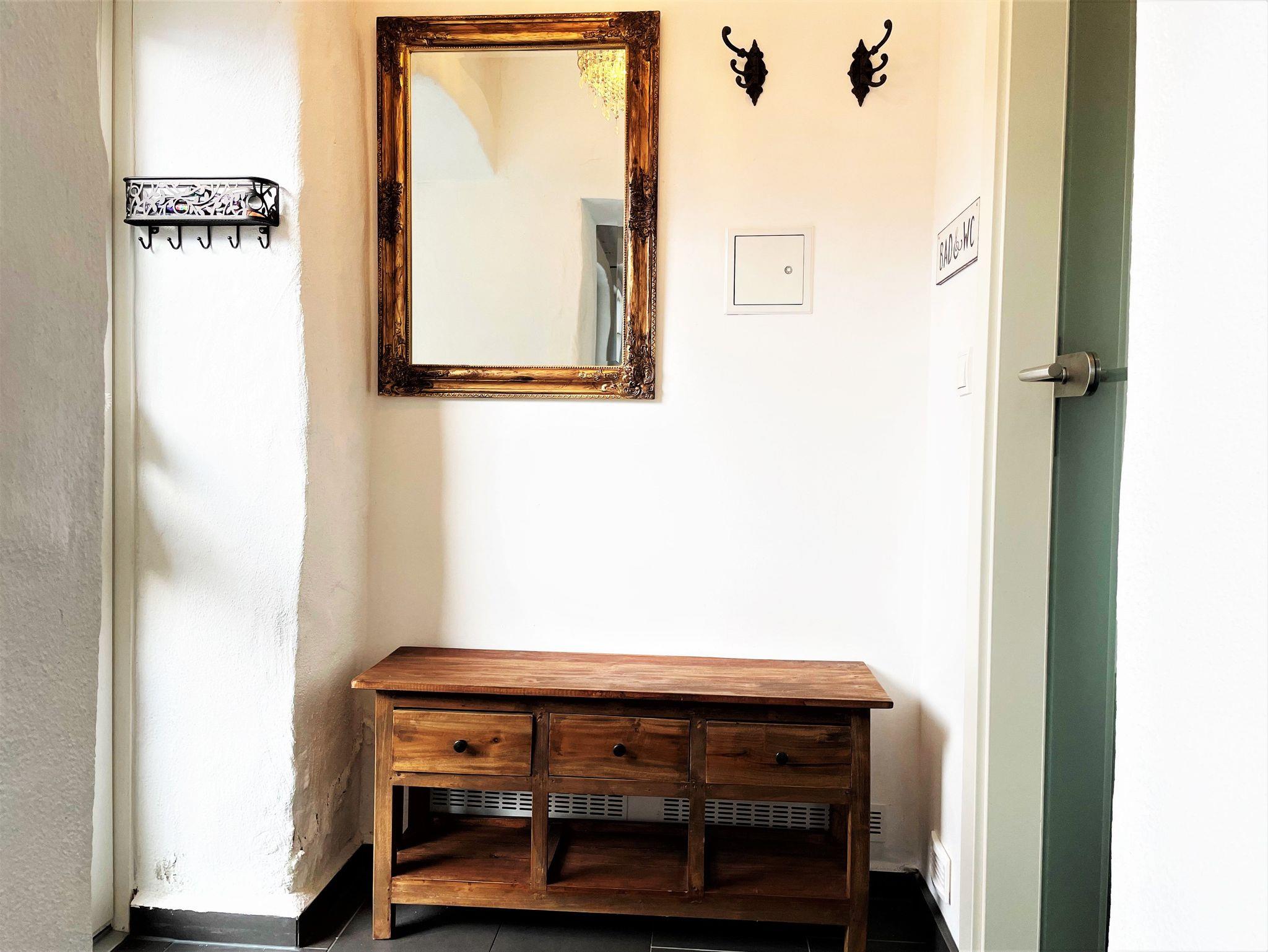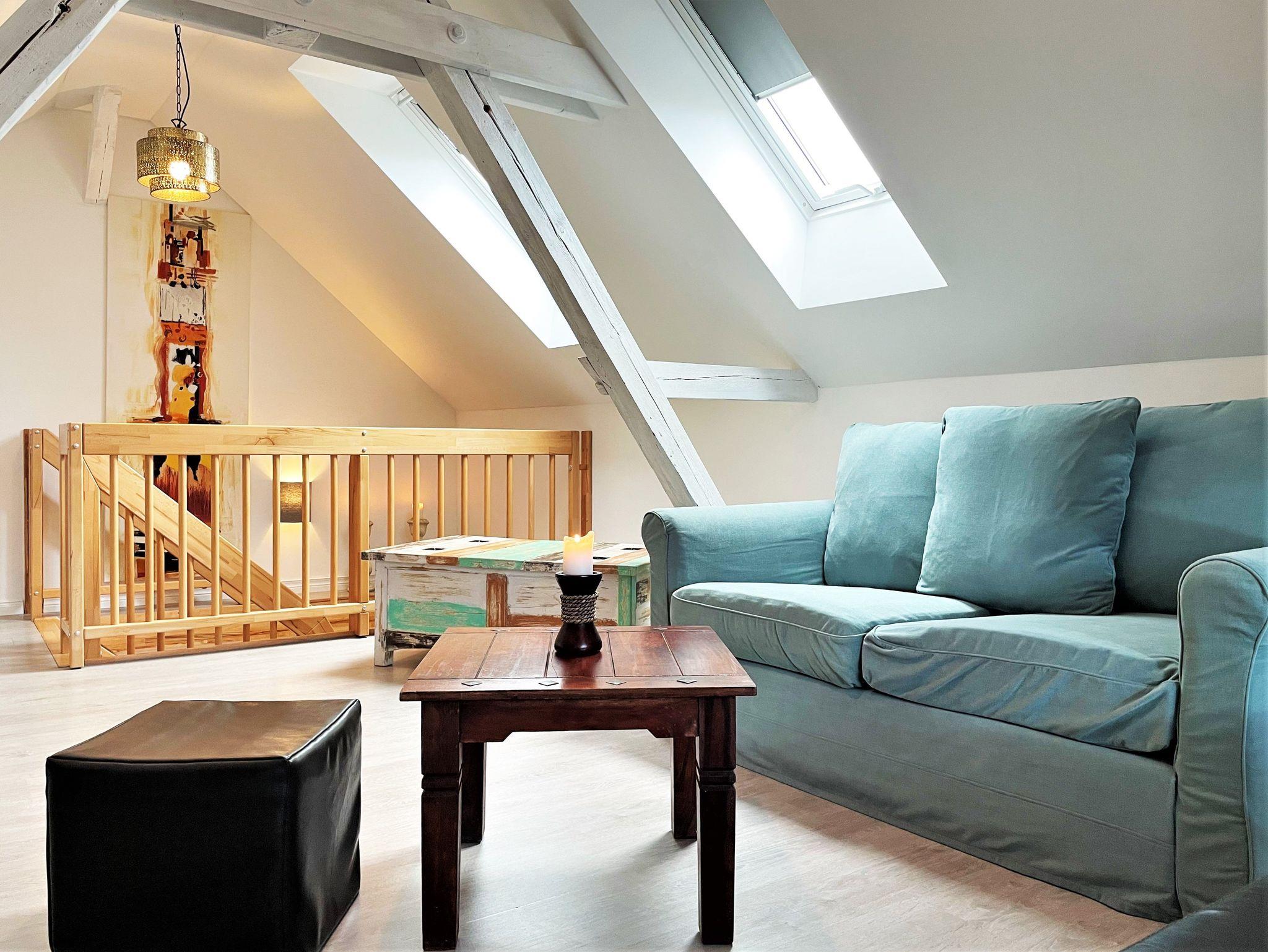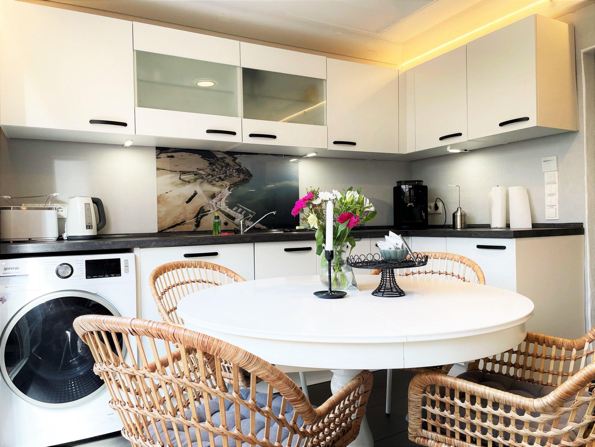 Das 60 m² große Ferienhaus „Altes Gewölbe“ erstreckt sich über 2 Etagen und eignet sich ideal für 3 Personen. Auf Anfrage findet ein Kleinkind (bis 3 Jahre) in einem Babybettchen einen Schlafplatz. In der unteren Ebene befindet sich ein gemütliches Wohnzimmer mit einem Sofa, Sessel sowie einem großen Smart-TV der für Unterhaltung sorgt. Ein elektrischer Kamin hingegen verbreitet angenehme Wärme und Wohlbehagen. Die modern eingerichtete Küche verfügt über einen großen Kühlschrank mit Gefriermöglichkeit, einem Backofen, Mikrowelle, Geschirrspüler. Weiterhin gehört ein Kaffeevollautomat, Toaster und Wasserkocher zur Ausstattung. Eine Waschmaschine mit Trockner runden das Angebot ab. An warmen Tagen kann man seine Mahlzeiten auf der möblierten Terrasse einnehmen und man hat die Möglichkeit zu grillen. Diese ist direkt von der Küche aus begehbar.