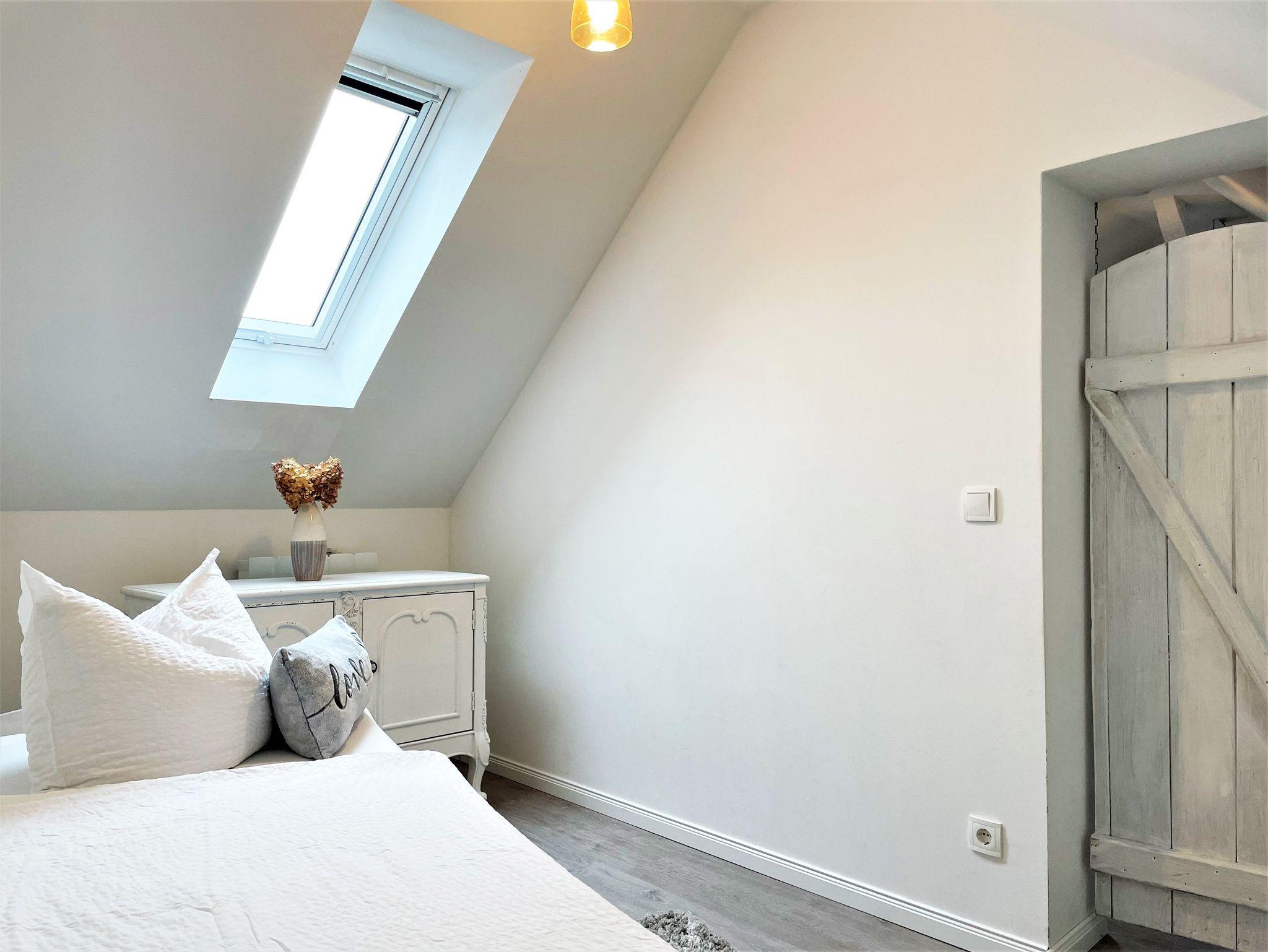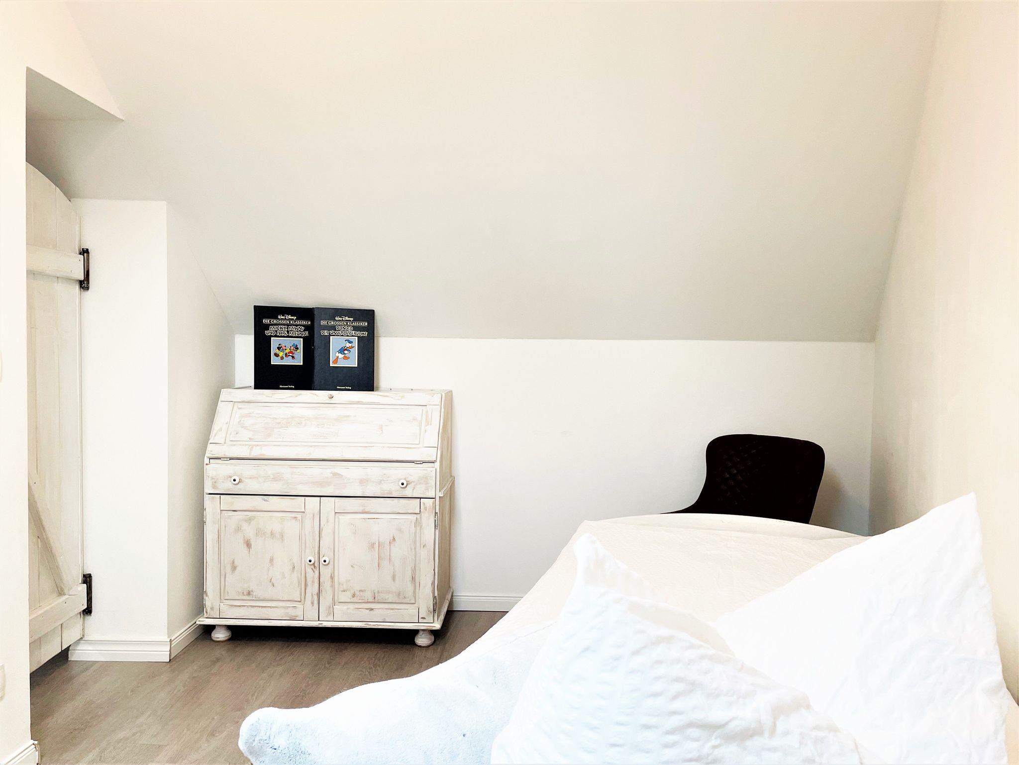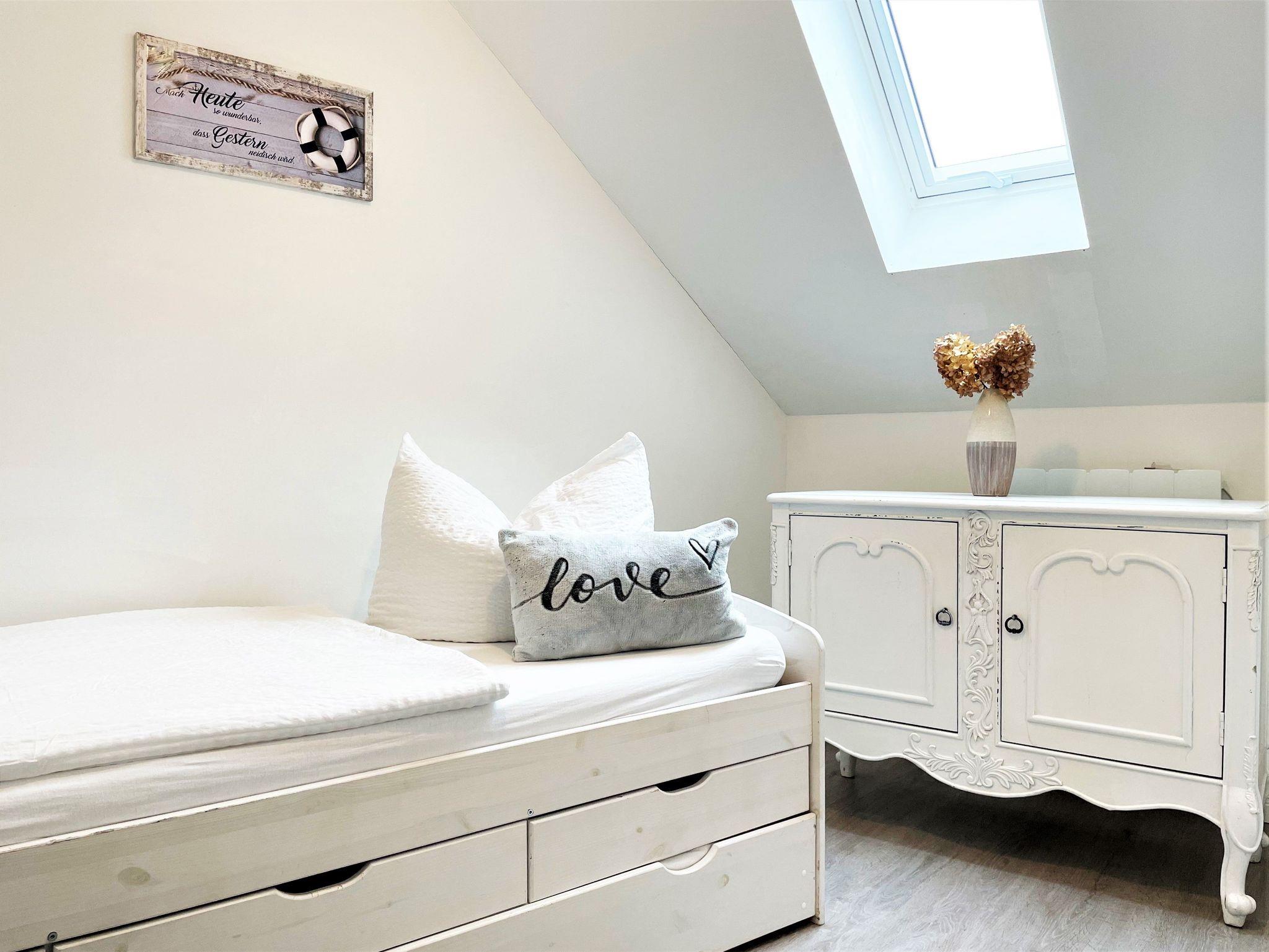 Ein 2. Schlafzimmer für 1 Person, ausgestattet mit einem Einzelbett (80 x 200 wandelbar 160 x 220), Kommode und einem Sekretär befindet sich ebenfalls in der Etage.
