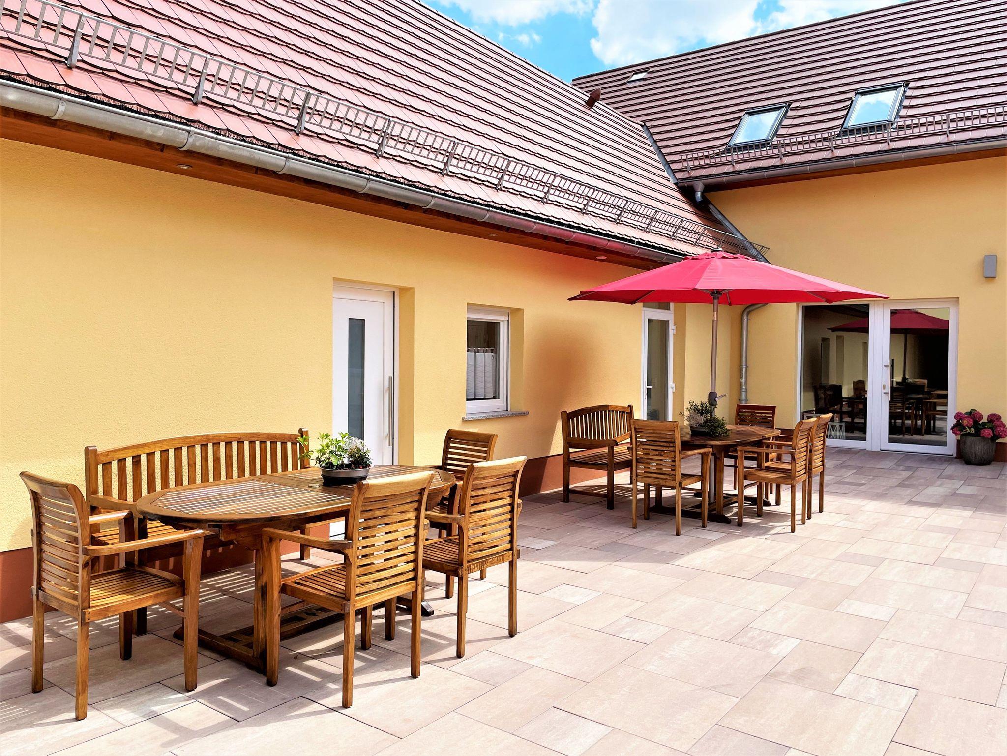 Der möblierte Innenhof sowie der Grillplatz im Garten stehen unseren Gästen zur Verfügung.