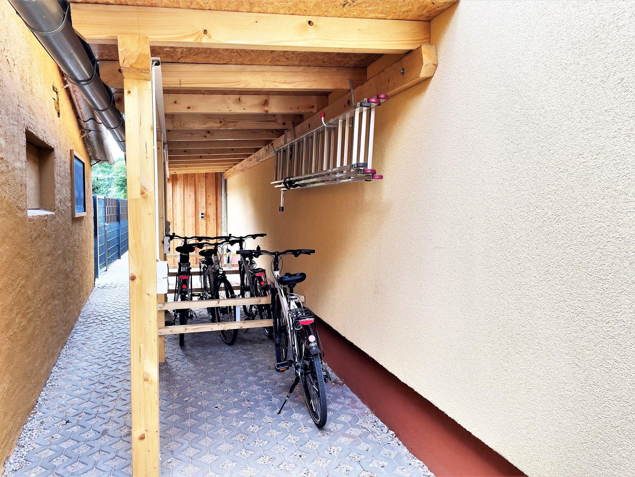 Auf dem umzäunten Grundstück befindet sich ein Fahrrad-Carport mit Ladestation, welches unsere Gäste zum Unterstellen Ihrer Fahrräder nutzen können.
