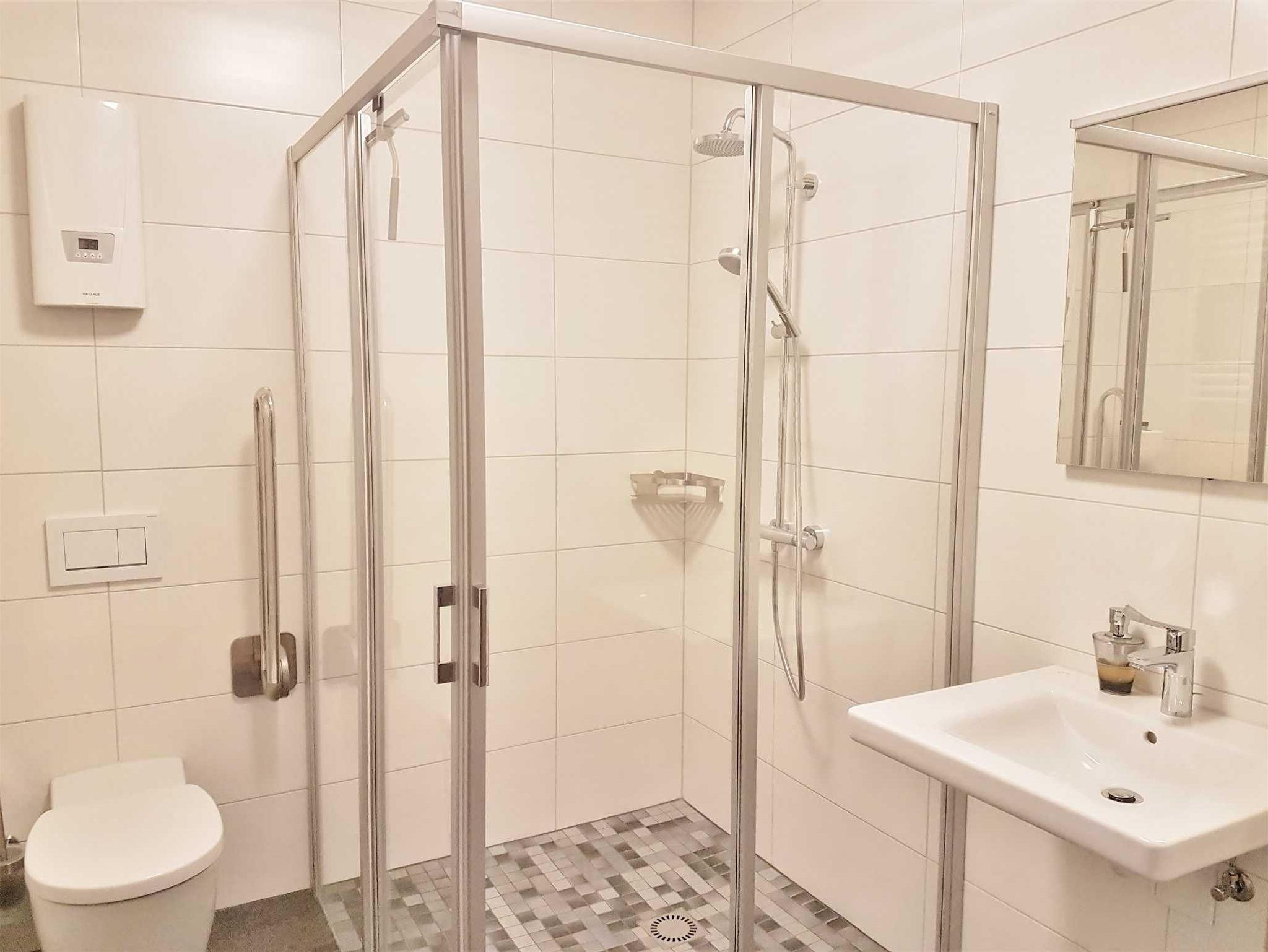 ein. Das kleine Badezimmer ist mit Dusche, WC und Föhn ausgestattet. Ein