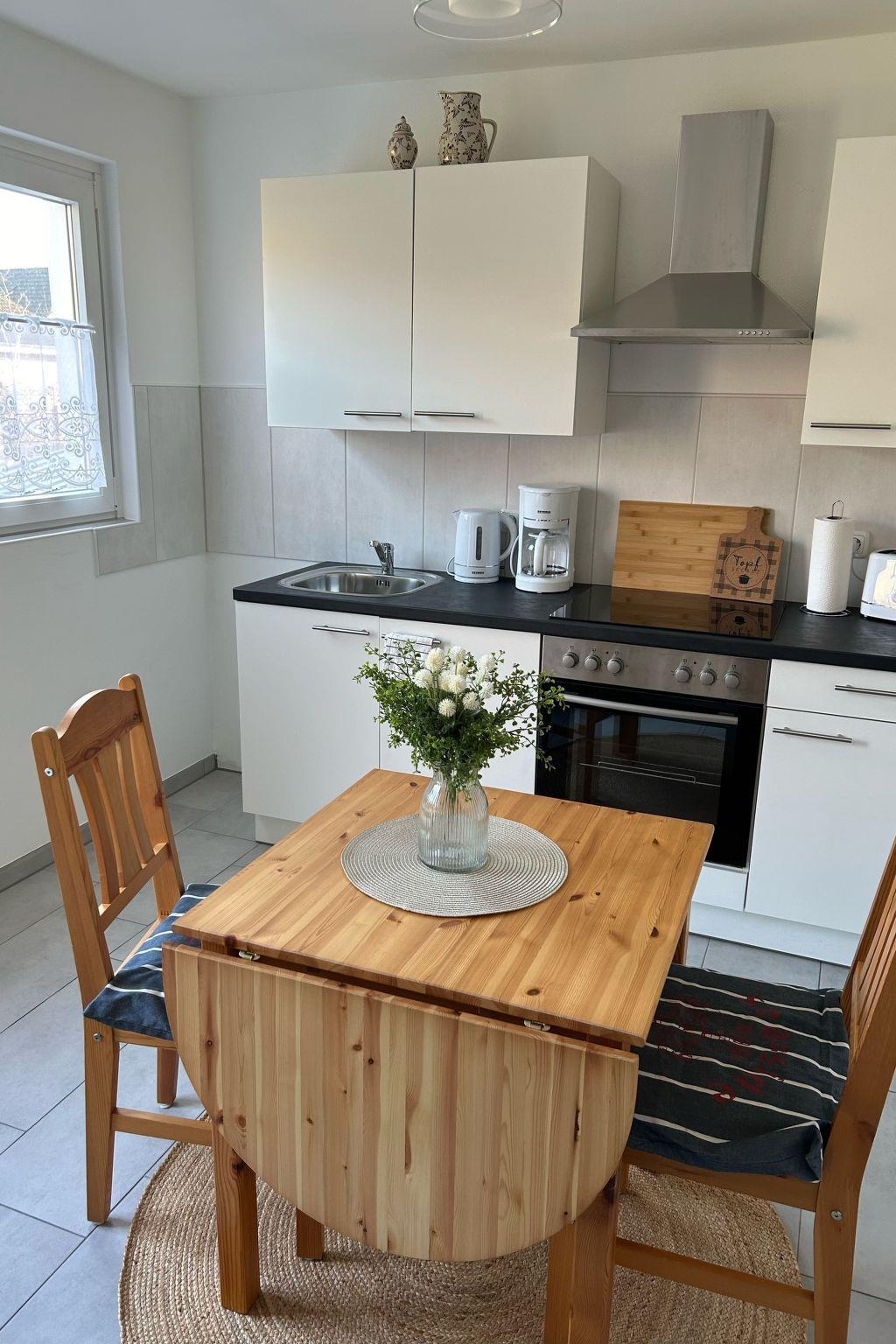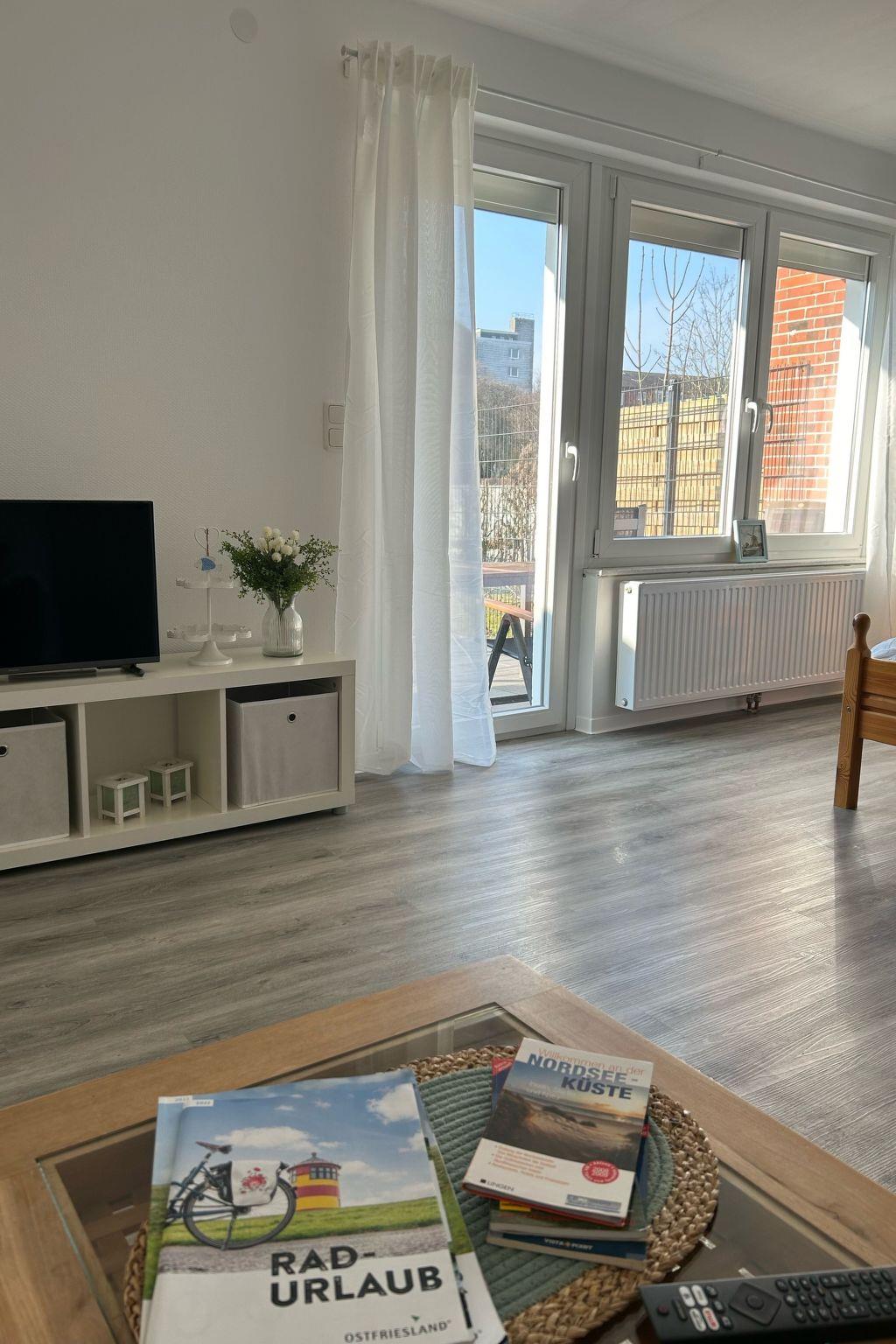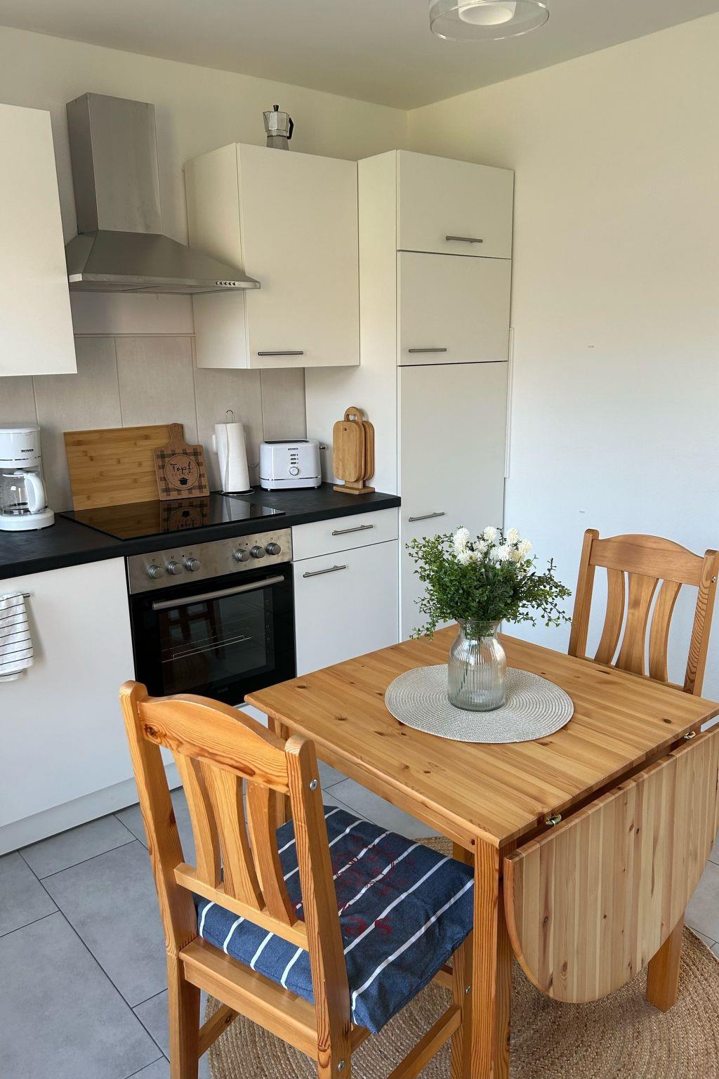 Within the four walls of this charming holiday flat you will find attractive furnishings to make your stay as pleasant as possible. There is a well-equipped kitchen with induction hob, filter coffee machine and kettle - ideal for starting the day with a home-made breakfast. The living area invites you to linger and the large windows ensure that the room is always flooded with light and inviting.