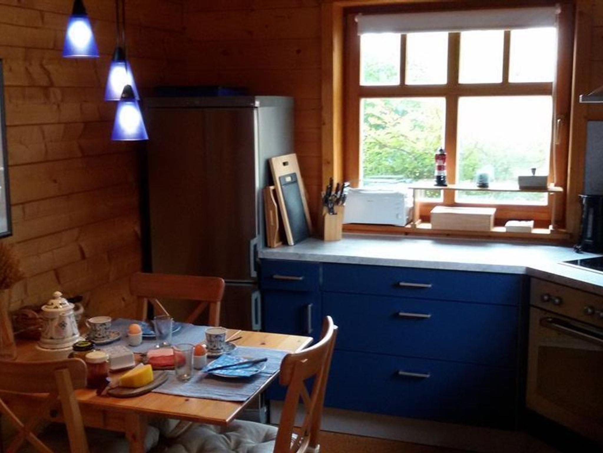 Die Ferienwohnung ist gemütlich und mit umfangreichem Inventar ausgestattet. Sie verfügt über ein Schlafzimmer mit Doppelbett (1,80m x 2,00m) und ein Wohnzimmer mit komfortabler Sofagarnitur und Ottomane mit Schlaffunktion (mit Topper, für bis zu 2 Personen). Über ein Gäste-WLAN und den Glasfaseranschluß besteht ein schneller Internetzugang. Zusammen mit separater Küche (mit Einbauküche) und Esstischgarnitur, Flur, und Badezimmer (Fußbodenerwärmung und Handtuchheizkörper) mit Dusche/WC hat die Ferienwohnung eine Wohnfläche von ca. 49qm. Dazu gehört eine Terrasse (mit Gartenmöbeln) in der Größe von 3mtr x 3,60mtr. Auf der Terrasse steht ein Ceran-Grill und ein Infrarot-Heizstrahler zur Verfügung. Flur und Wohnzimmer haben Laminatboden. Die Küche hat Korkboden. Im Schlafzimmer liegt Klick-Vinylboden. Aufgrund der verwendeten Bau- und Einrichtungsmaterialien ist die Ferienwohnung Allergiker geeignet. Aus diesem Grund können leider keine Haustiere mitgenommen werden. Auf Wunsch können ein Kinderbett und ein Hochstuhl zur Verfügung gestellt werden, aber aufgrund eines vorhandenen Gartenteiches ist die Ferienwohnung für Kleinkinder eher nicht geeignet. Die Wohnung ist eine Nichtraucherwohnung. Auf der Terrasse kann aber gerne geraucht werden.