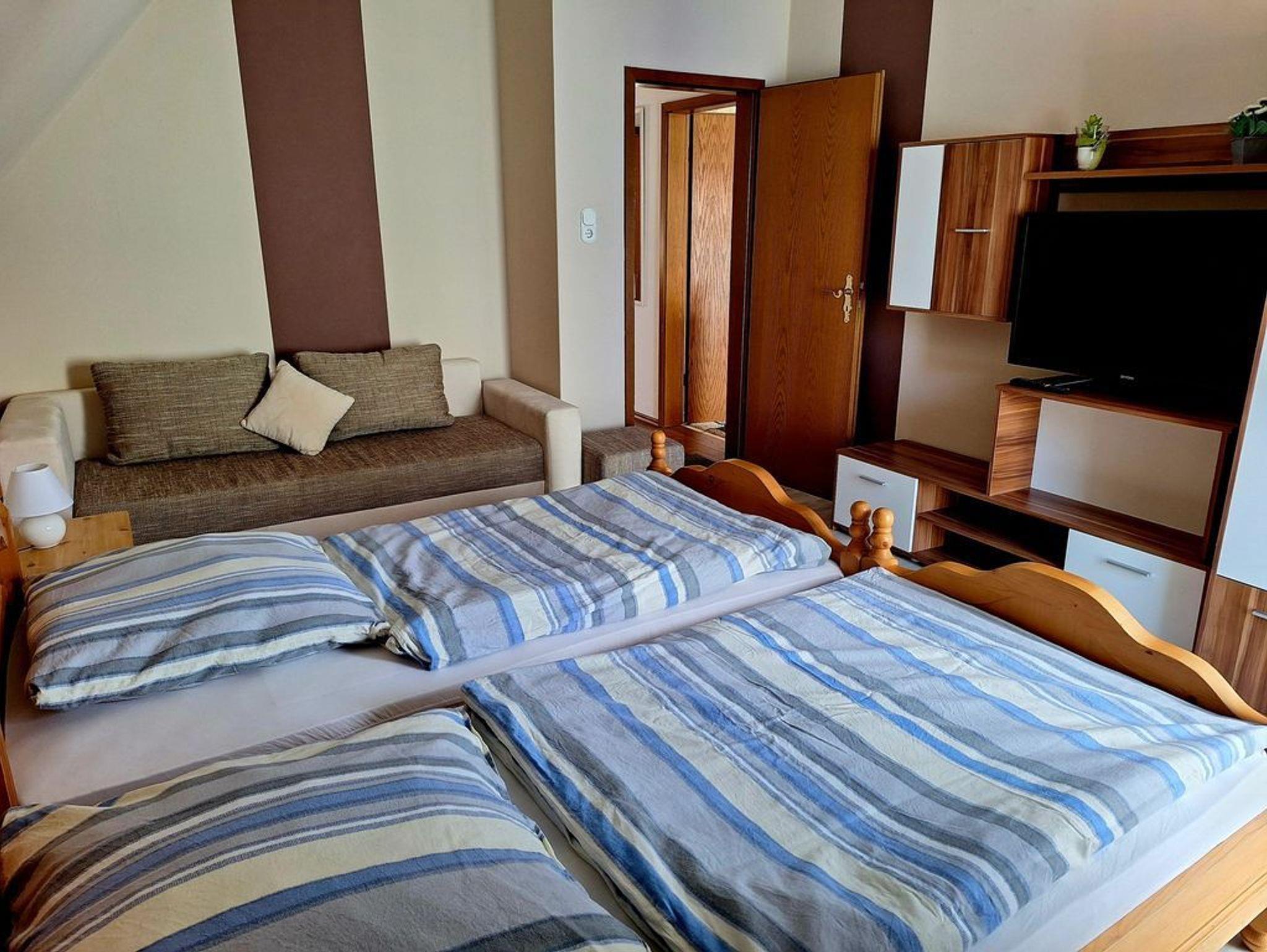 Die ca. 60 qm große Wohnung befindet sich in der 1. Etage. 2 Zimmer (Wohn- und Schlafzimmer), Küche, Bad mit Dusche, Balkon. in der Küche gibt es zusätzlich eine Kaffeemaschine, einen Wasserkocher, einen Toaster, eine Mikrowelle und Fernseher in Wohn-/Schlafzimmer. Falls noch eine 3. Person dabei ist, gibt es die Möglichkeit das Sofa in ein Schlafsofa umzuklappen. Bettwäsche und Handtücher sind vorhanden.