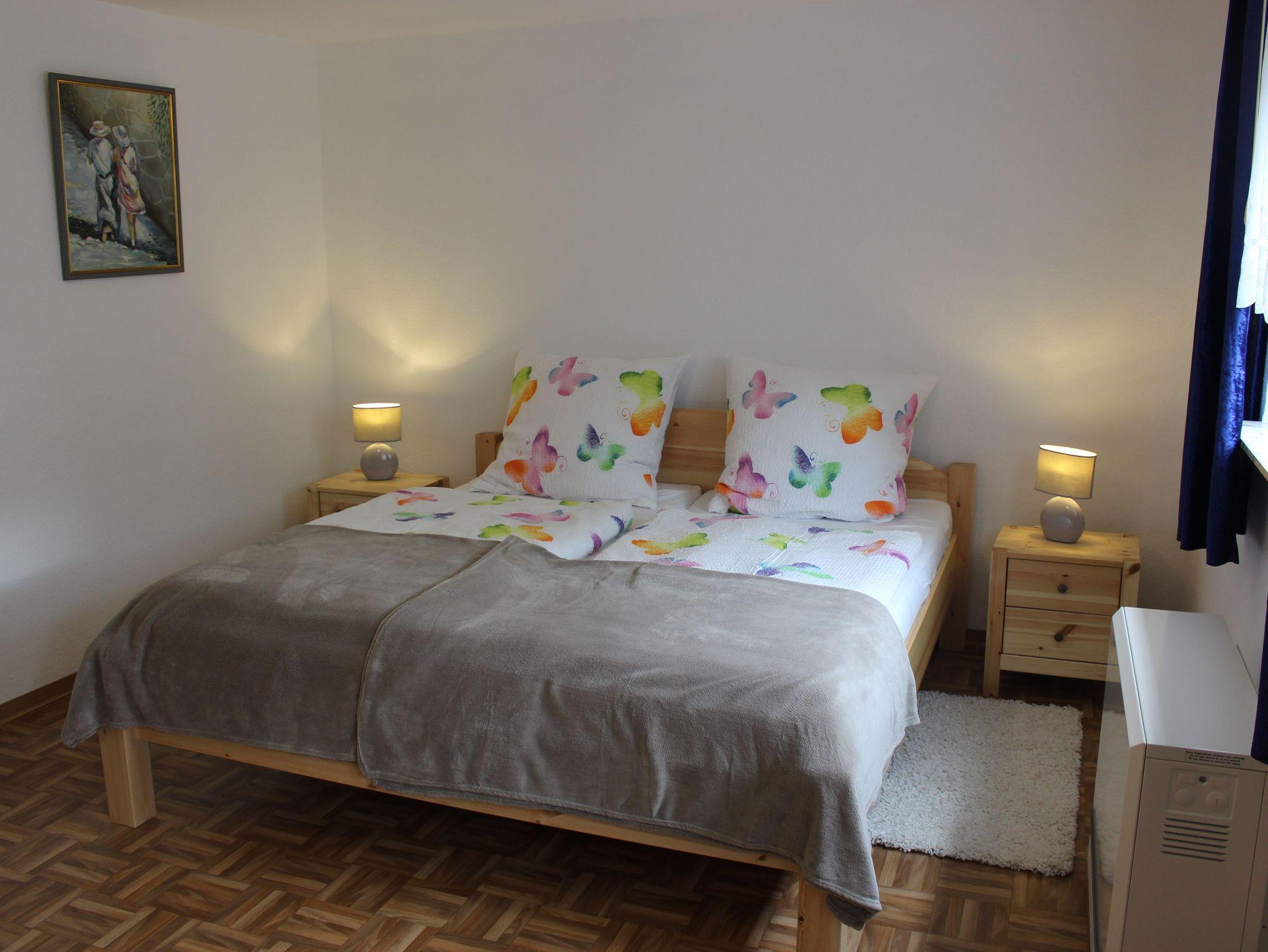 Das Ferienhaus verfügt über ein großes Schlafzimmer mit einem Doppelbett, sowie ein kleines Schlafzimmer mit einem Einzelbett die sich im 1. OG befinden. Bei Ihrer Ankunft sind die Betten bezogen. Ein Wohnzimmer mit Schlafsofa und TV. Eine Küche mit komplett ausgestatter Küchenzeile, Mikrowelle, Kaffemaschine, Wasserkocher usw. Geschirrhandtücher sind im Erdgeschoss vorhanden. Ein Tageslichtbad mit Badewanne und Duschvorrichtung. Fön und pro Person 1 Duschtuch und ein Handtuch sind vorhanden. Als zusätzliche Leistung kann ein Handtuchpaket dazugebucht werden. Separates WC. Eine überdachte Terrasse im Aussenbereich mit Grillmöglichkeit. Ein Grill ist vorhanden. Parken ist in unmittelbarer Nähe möglich. Das Ferienhaus eignet sich für max. 3 Personen und hat 70 qm Wohnfläche.