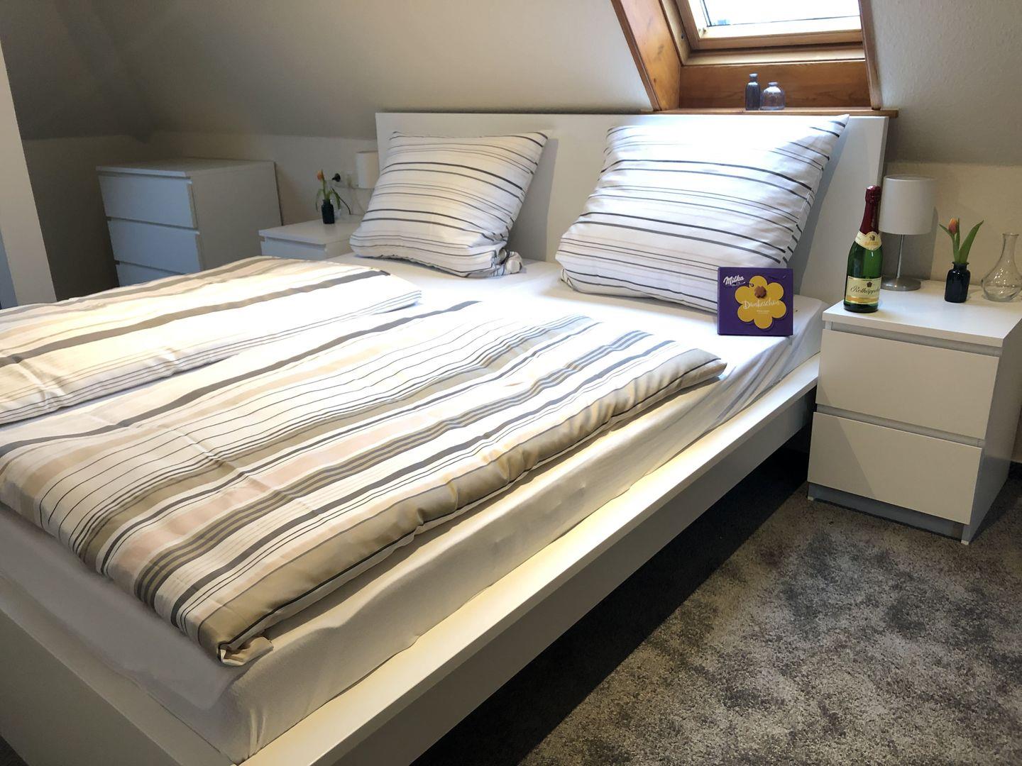 Renovierte, hochwertige 3-Raum-Ferienwohnung für bis zu vier Personen. 102m² Wohnfläche, zentrale Lage, zwei Schlafzimmer, helle/moderne Einrichtung