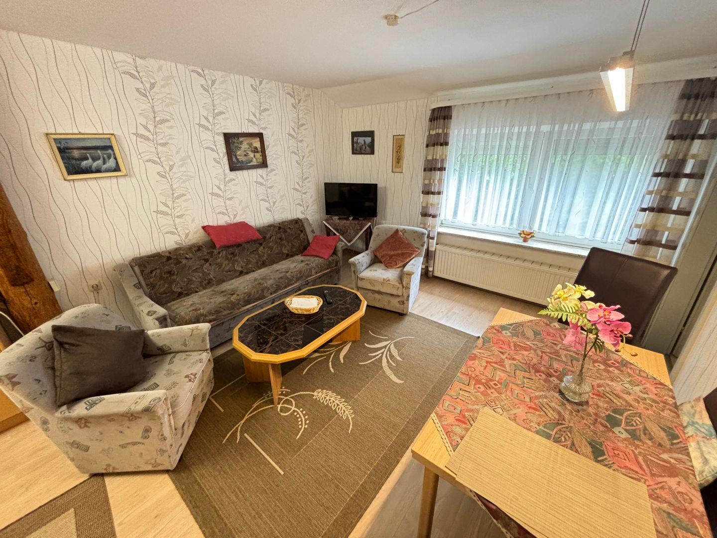 Die Wohnung hat eine Größe von 40m² und ist unterteilt in Wohnzimmer, Schlafzimmer, Kochecke sowie einem Badezimmer. Sie ist für max. 2 Personen ausgestattet. Die Betten im Schlafzimmer verfügen über 90x200cm Liegefläche. In der Küchenecke stehen Elektrogeräte wie z. B. Kaffeemaschine, Wasserkocher, Mikrowelle, Toaster sowie eine Kochgelegenheit (mit 2 Herdplatten) zur Verfügung. Selbstverständlich ist auch ein TV und ein Radio vorhanden. Es handelt sich hierbei um eine Nichtraucher-Unterkunft und Haustiere sind leider nicht erlaubt.