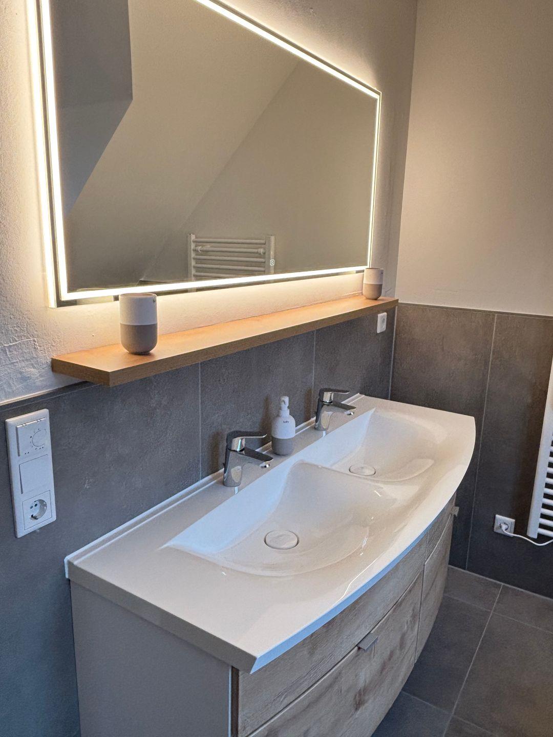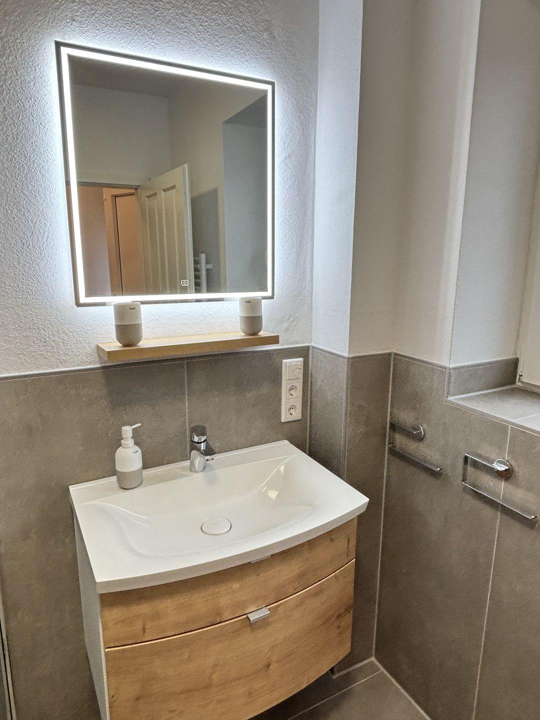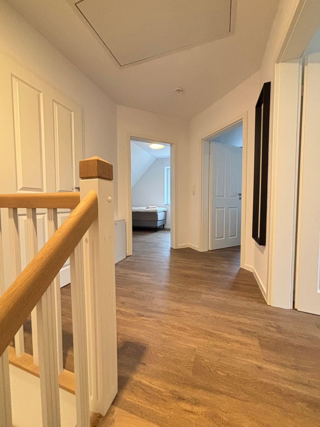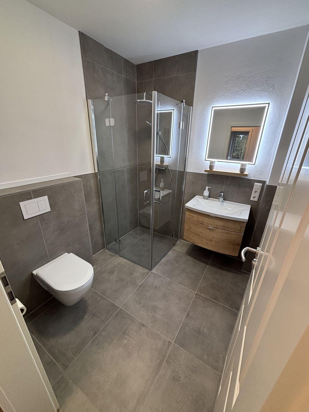 Zwei komfortabel ausgestattete Badezimmer bieten eine hochwertige Sanitärausstattung – darunter ein bodengleiches Duschbad und eine Badewanne im oberen Badezimmer. Haartrockner, Spiegel, Fenster und warmes Wasser runden das Angebot ab. Selbstverständlich stehen kostenfreie Bettwäsche, Handtücher und eine Erstausstattung in Küche und Bad bereit.