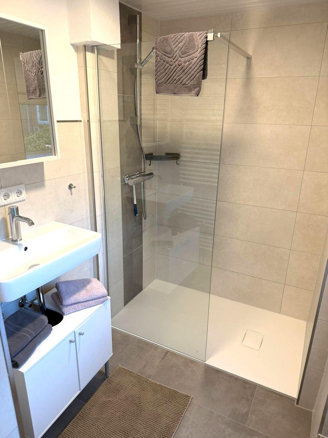 Das Badezimmer verfügt über eine Dusche mit Wanne, WC, Waschbecken, Spiegel, Fenster, warmes Wasser und einen Haartrockner. Eine Waschmaschine zur Eigennutzung steht Ihnen ebenfalls zur Verfügung und ist besonders praktisch bei längeren Aufenthalten.